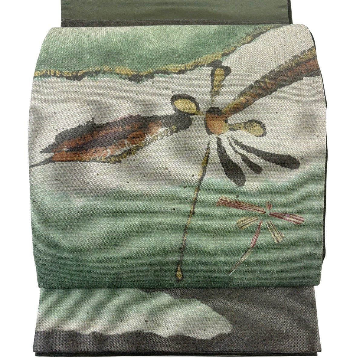 【美品】 袋帯 秀品 トンボ 花 箔 彩 緑 お太鼓柄 正絹