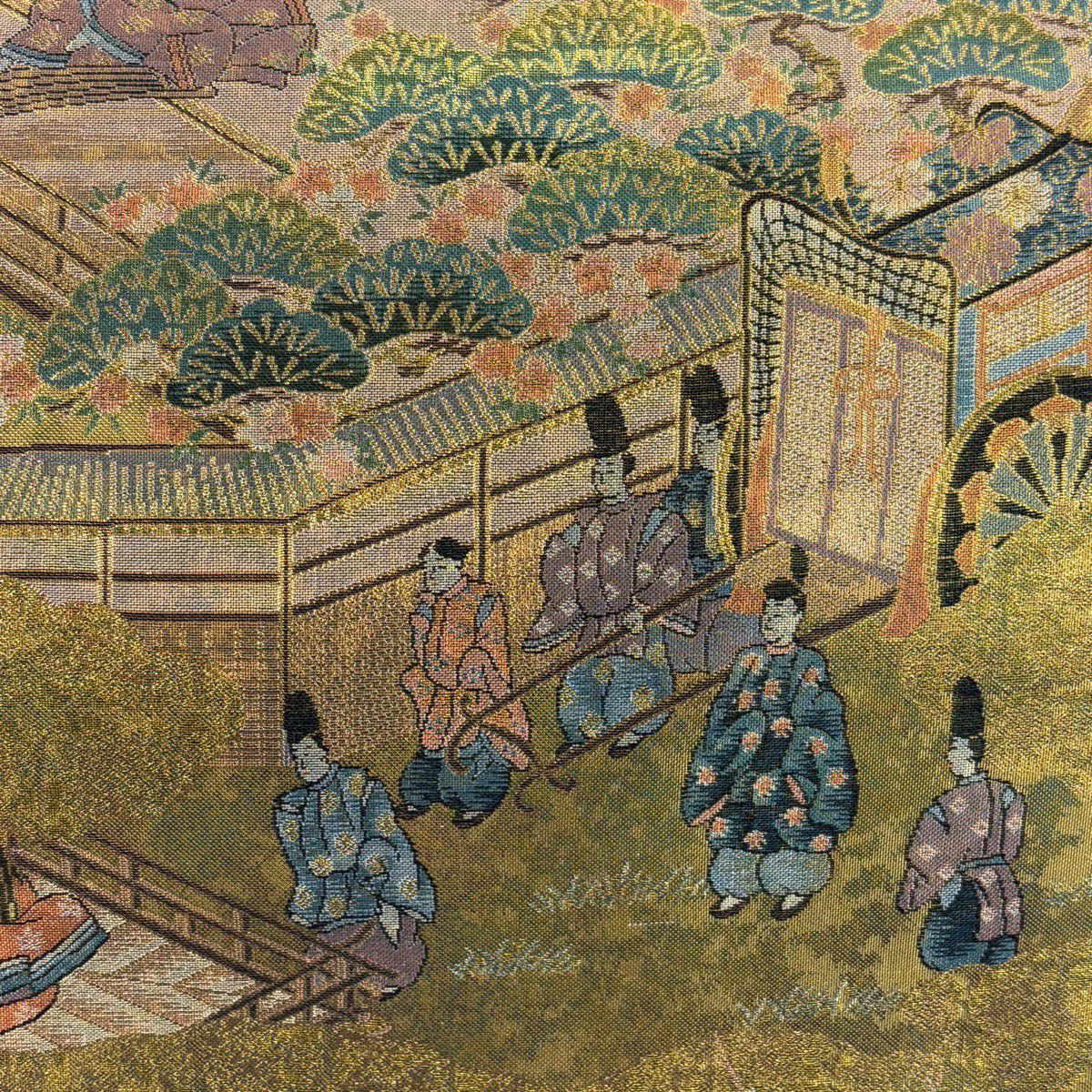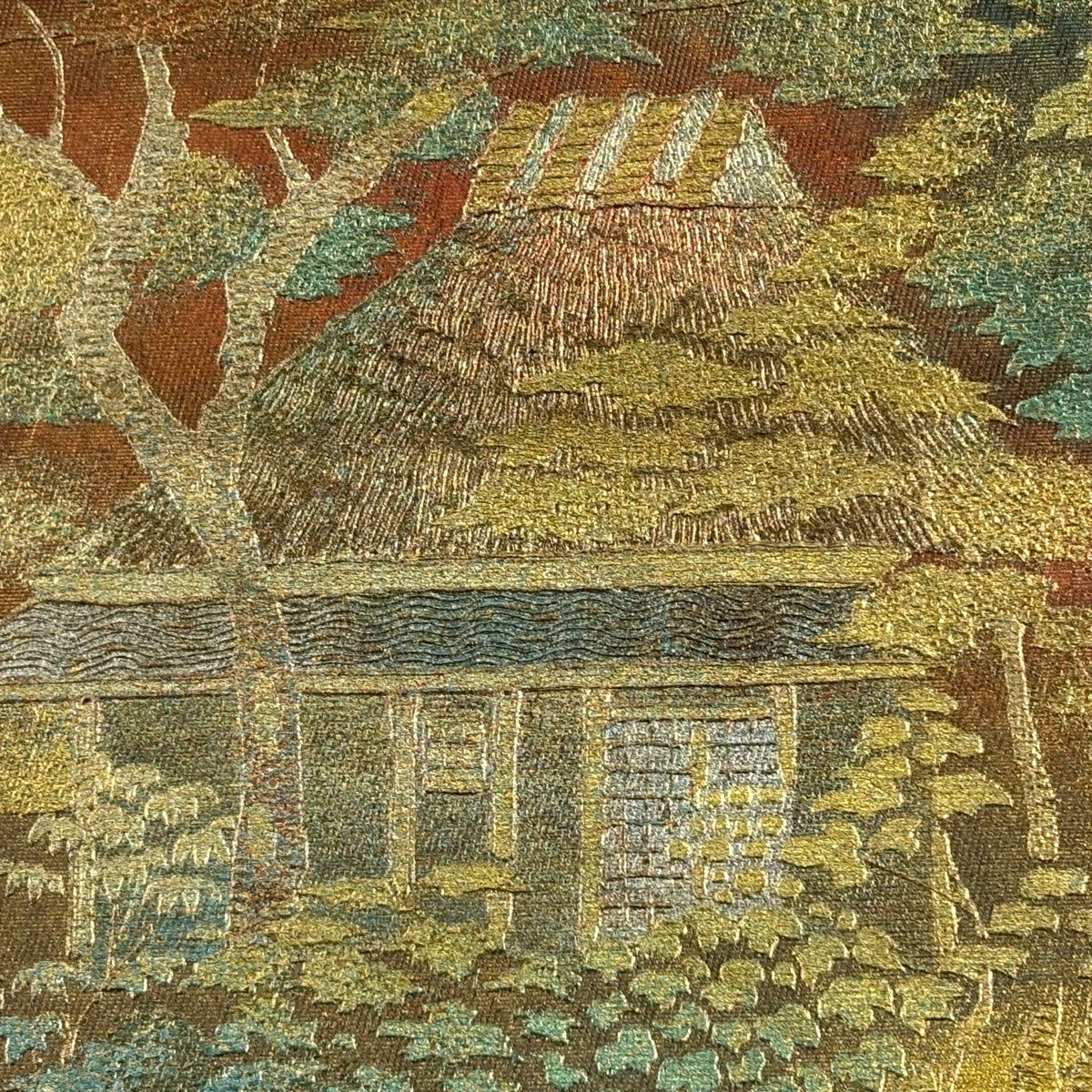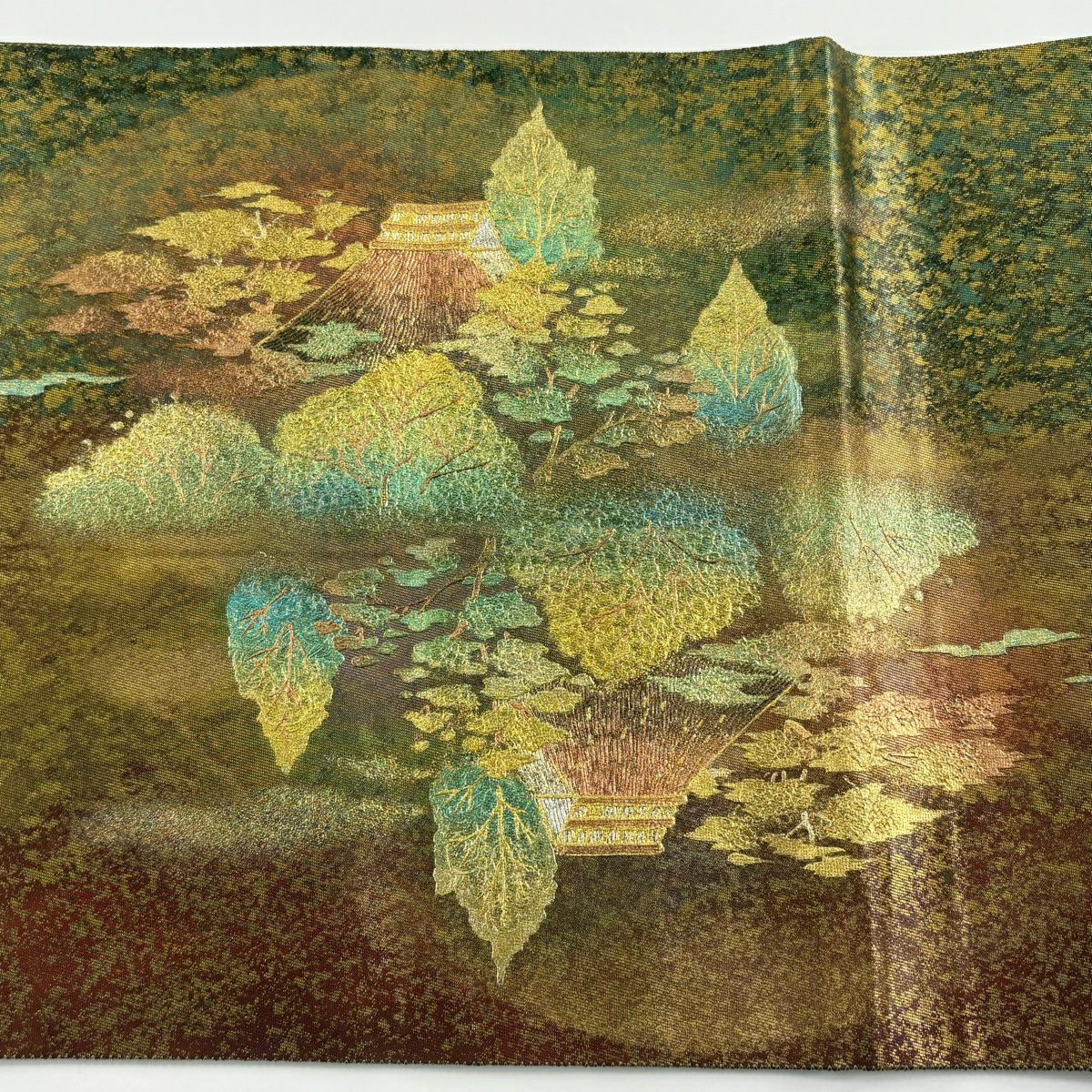 【美品】 袋帯 秀品 御所風景 人物 箔 金色 お太鼓柄 正絹