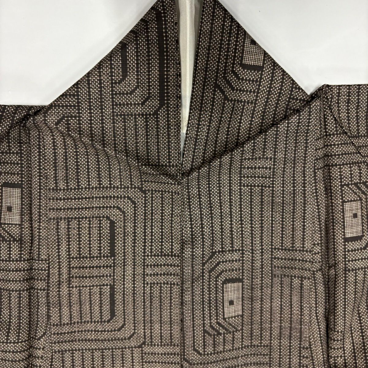 【美品】 袋帯 秀品 縞 幾何学模様 金通し 灰茶 六通 正絹