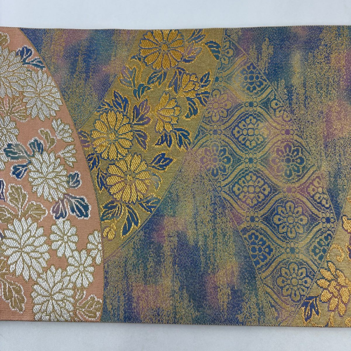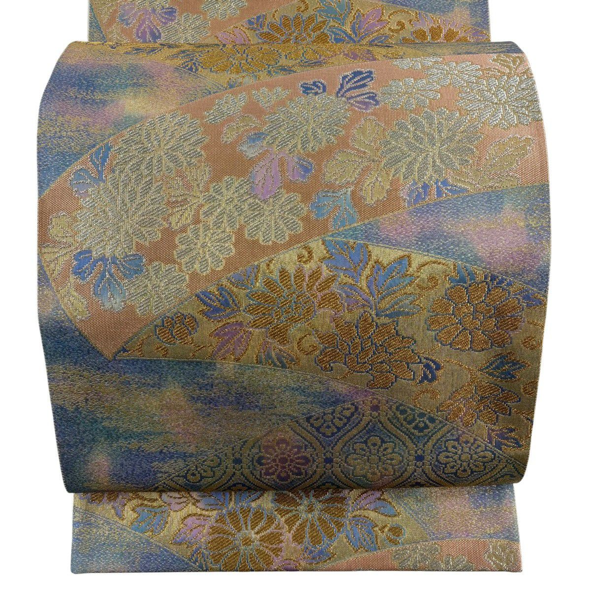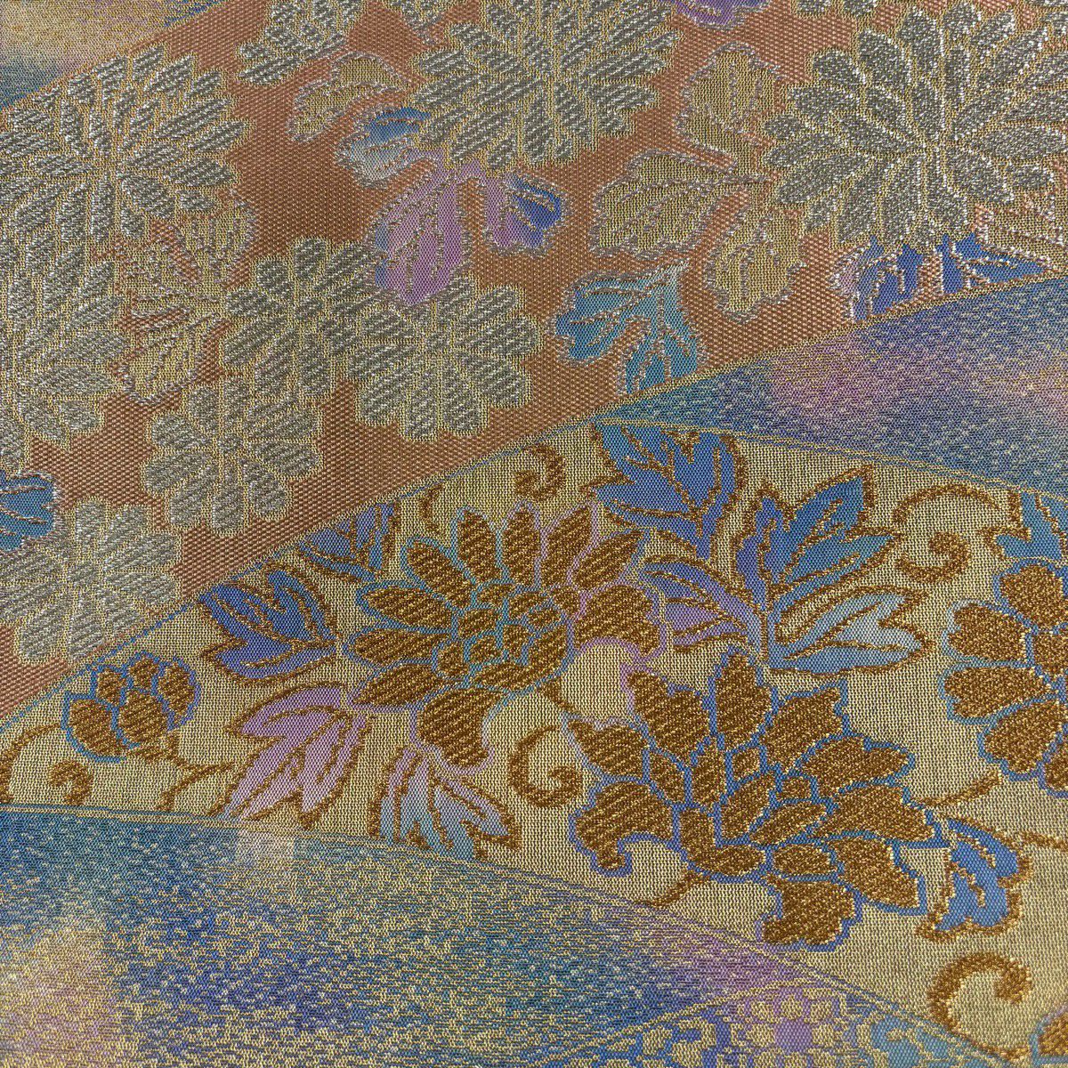 【美品】 袋帯 秀品 草花 霞 金銀糸 ぼかし 青紫 六通 正絹