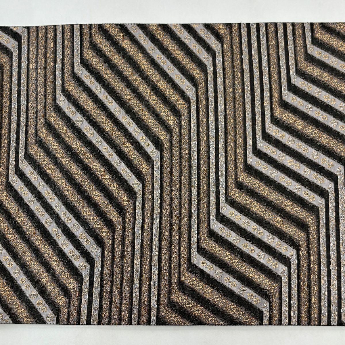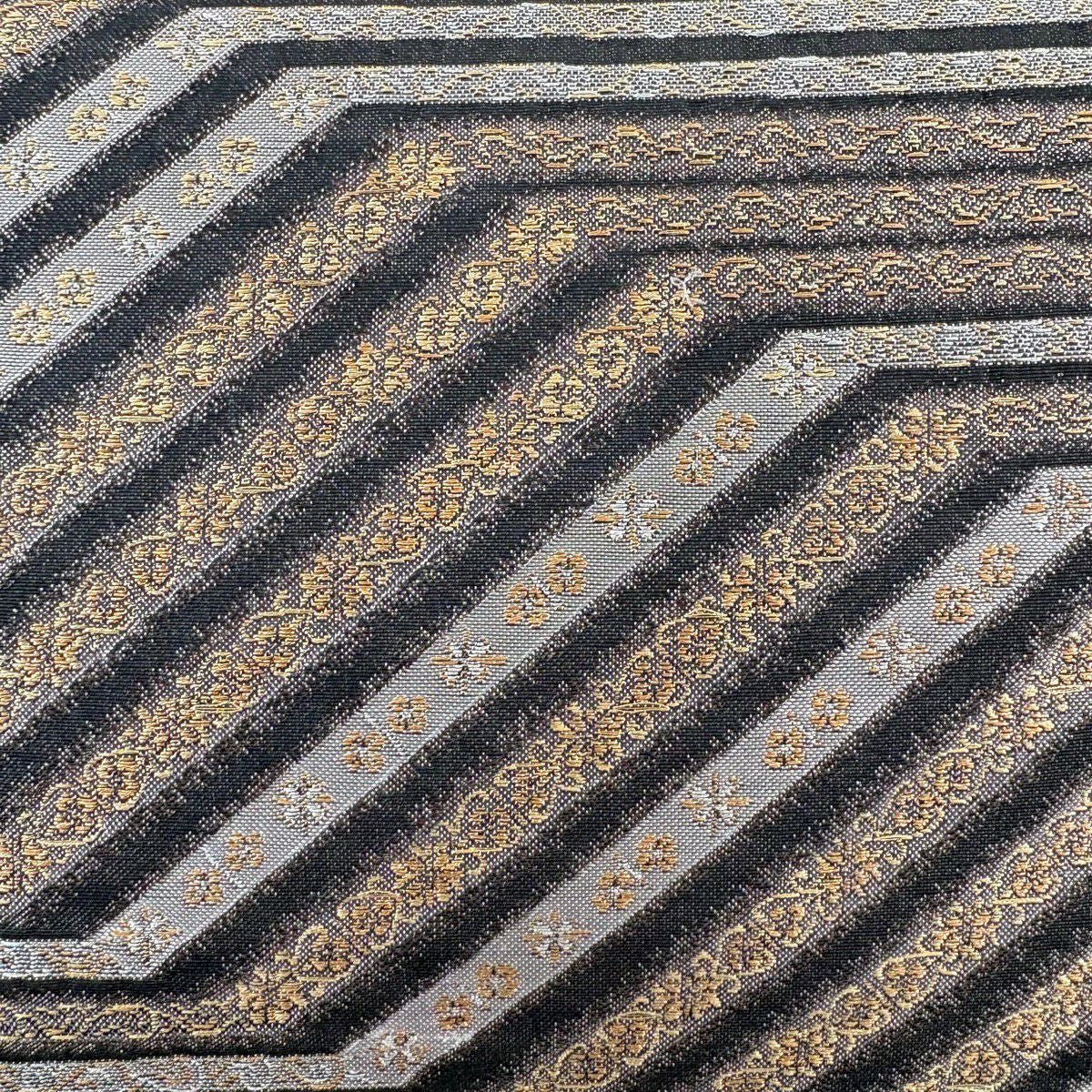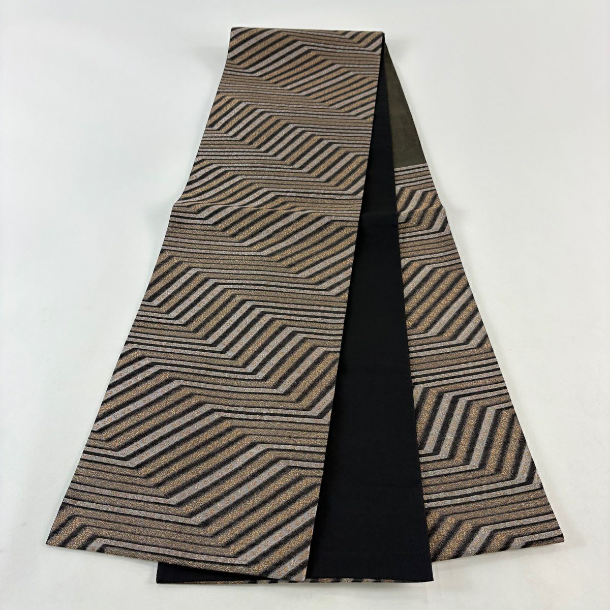 【美品】 袋帯 秀品 やまと 菱 縞 金糸 灰茶 お太鼓柄 正絹