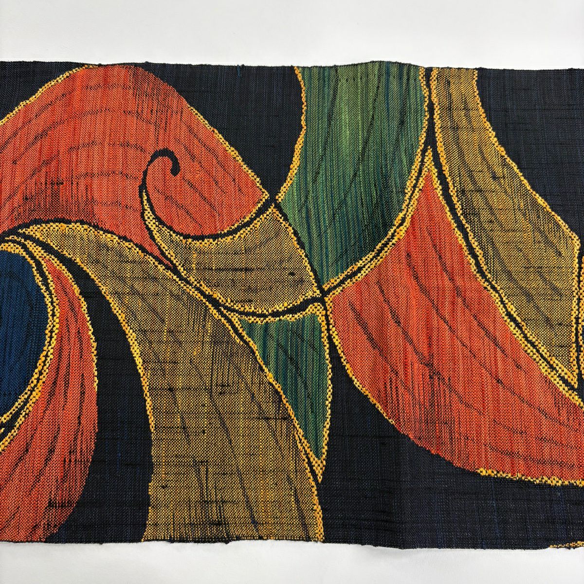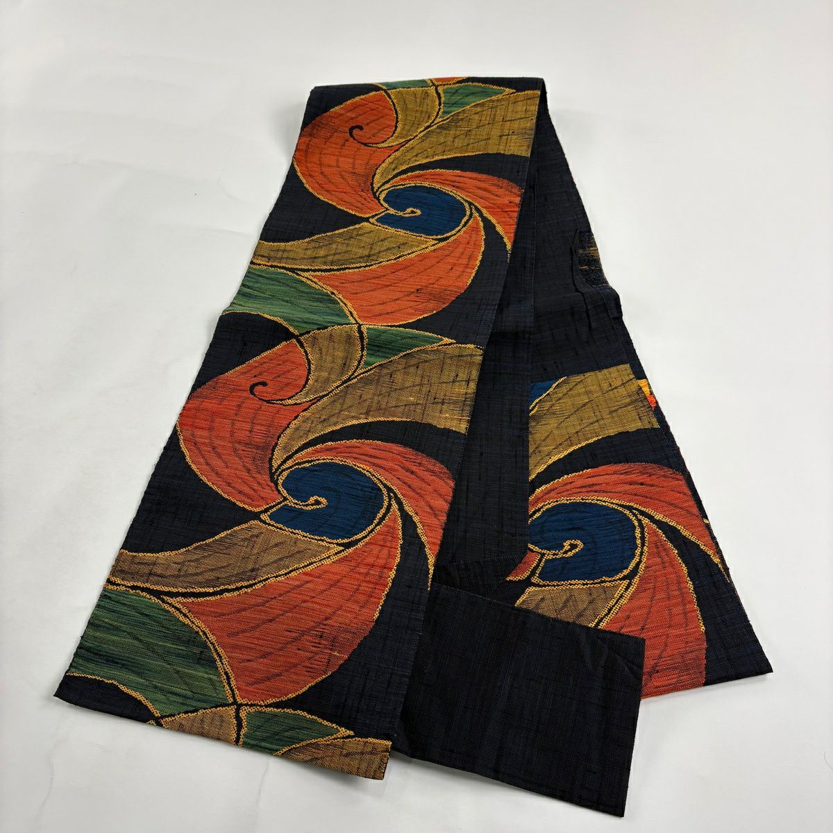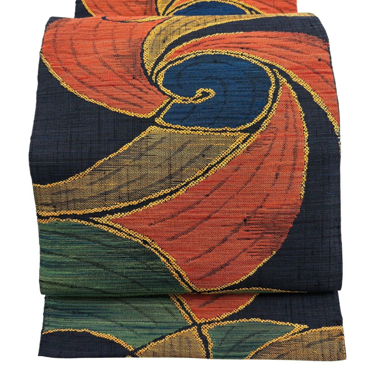 【美品】 袋帯 秀品 草花 幾何学 金銀糸 箔 墨色 六通 正絹