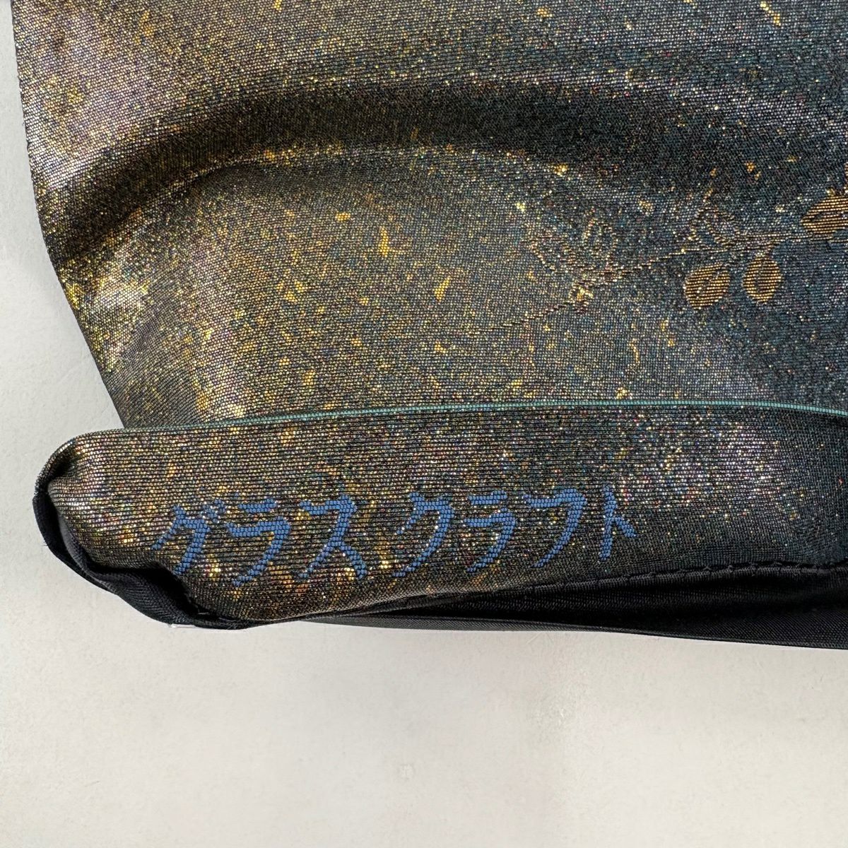 袋帯 秀品 グラスクラフト 幾何学 草花 箔 深緑 六通 正絹