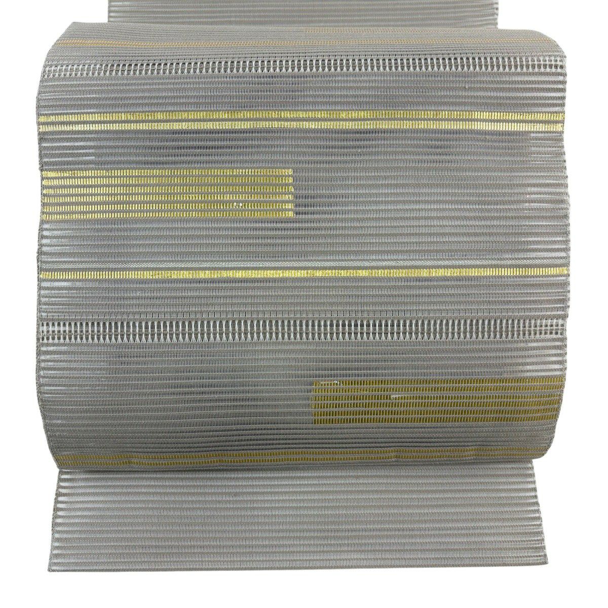 名古屋帯 秀品 夏帯 絽 八寸名古屋帯 松葉仕立て 縞 箔 灰茶 正絹