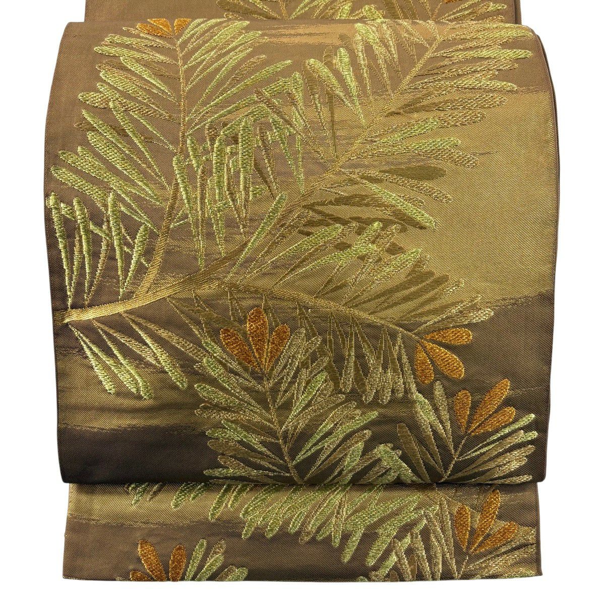 袋帯 秀品 川島織物 落款あり 若松 金糸 箔 茶色 六通 正絹
