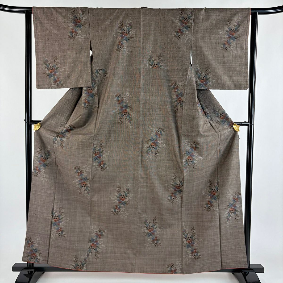 小紋 身丈164.5cm 裄丈65cm M 袷 菊 灰茶 正絹 秀品