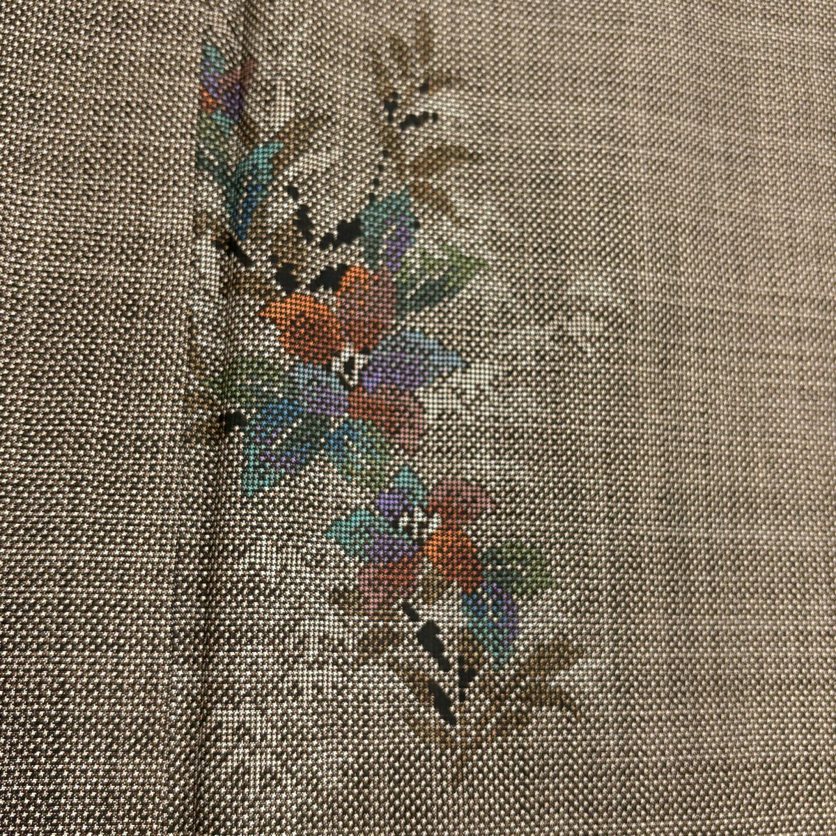 袋帯 秀品 草花 格子 箔 ぼかし ベージュ お太鼓柄 正絹