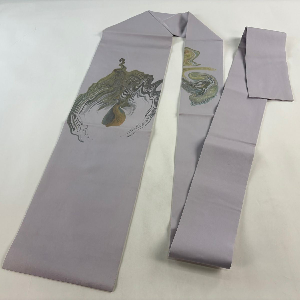 【美品】 名古屋帯 秀品 ますいわ屋 墨流し ぼかし 薄紫 正絹