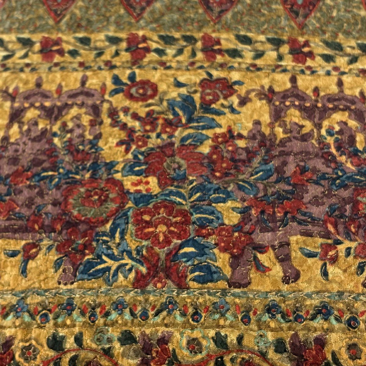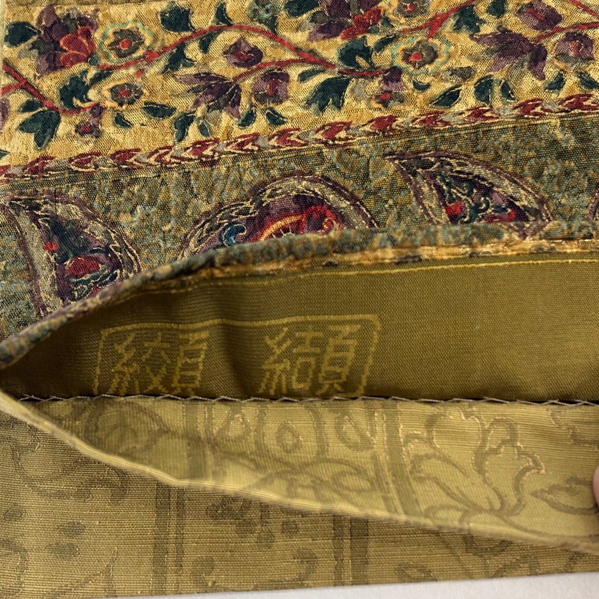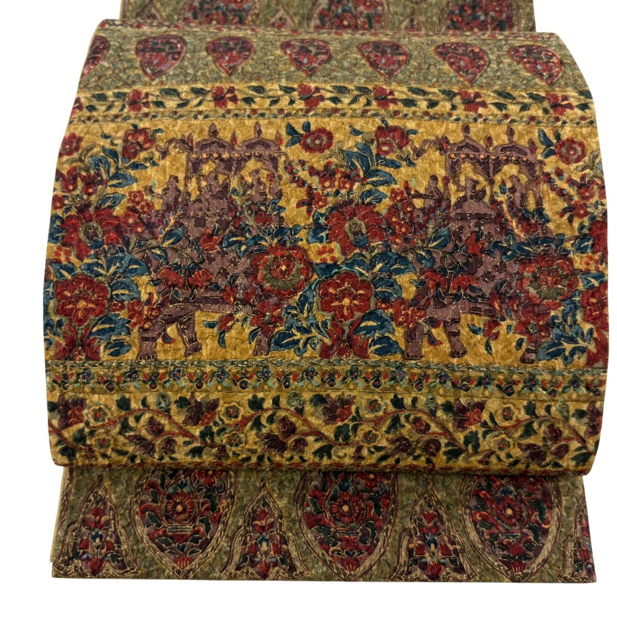【美品】 袋帯 秀品 草花 雲文 唐織 箔 山吹茶色 六通 正絹