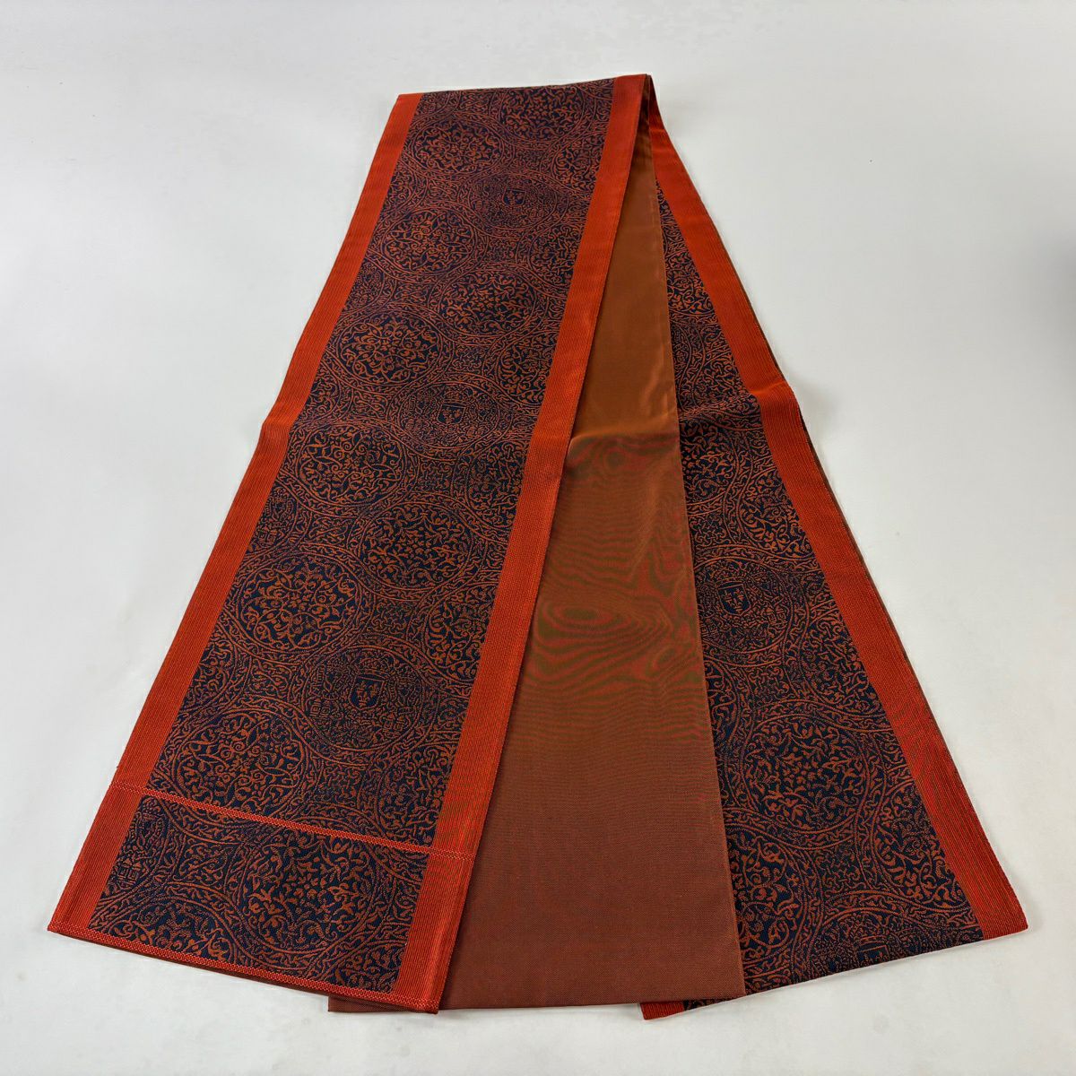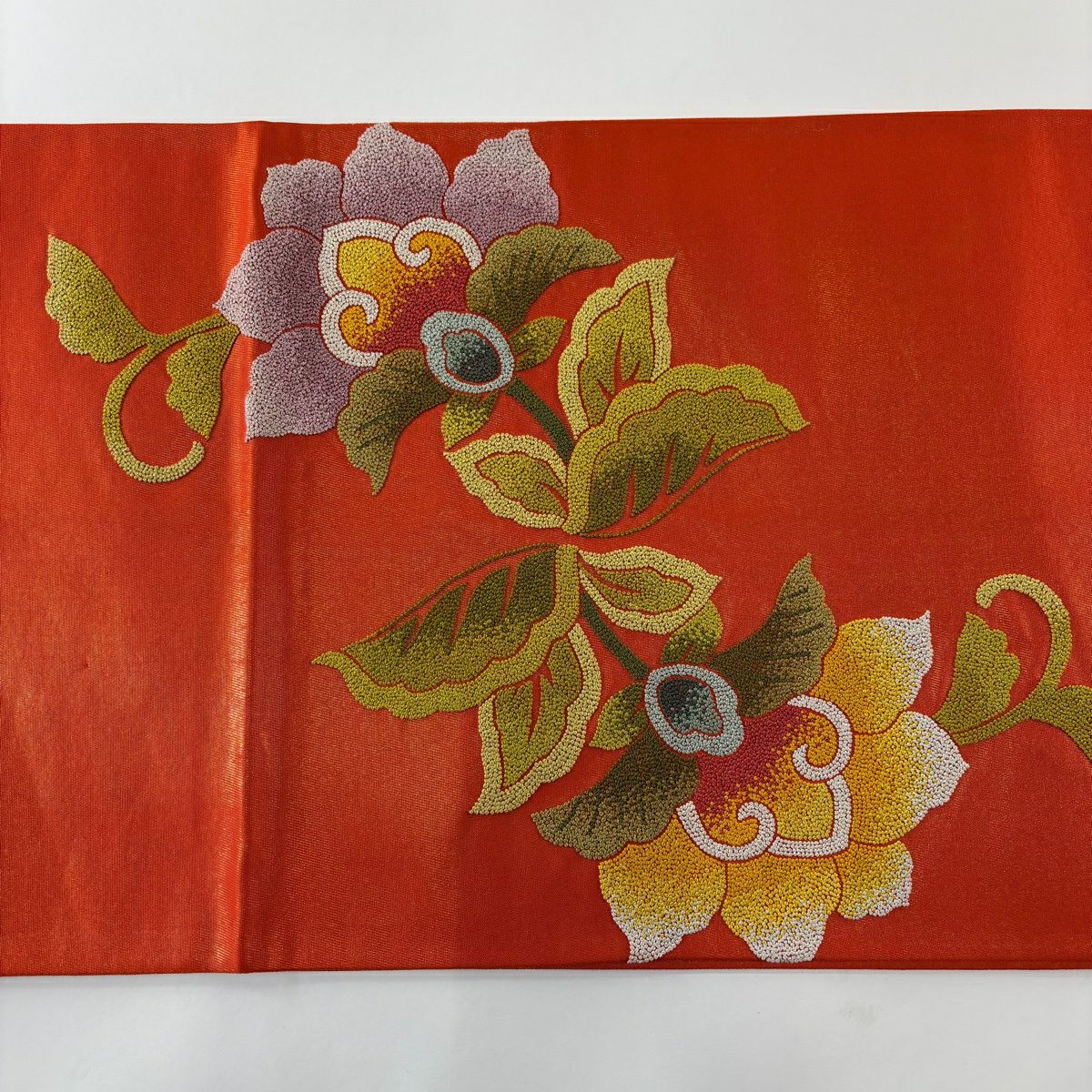 袋帯 秀品 花唐草 相良刺繍 金通し オレンジ お太鼓柄 正絹