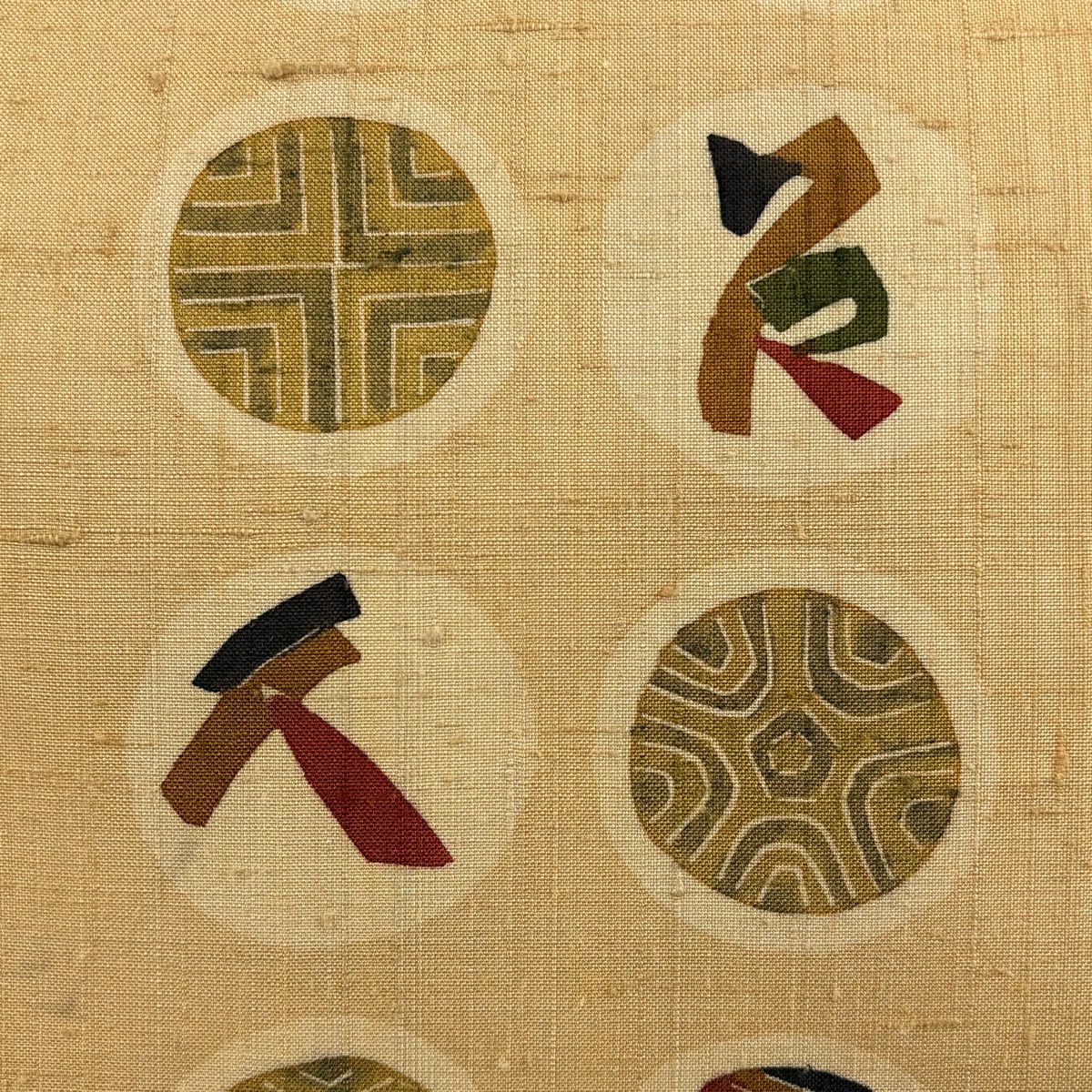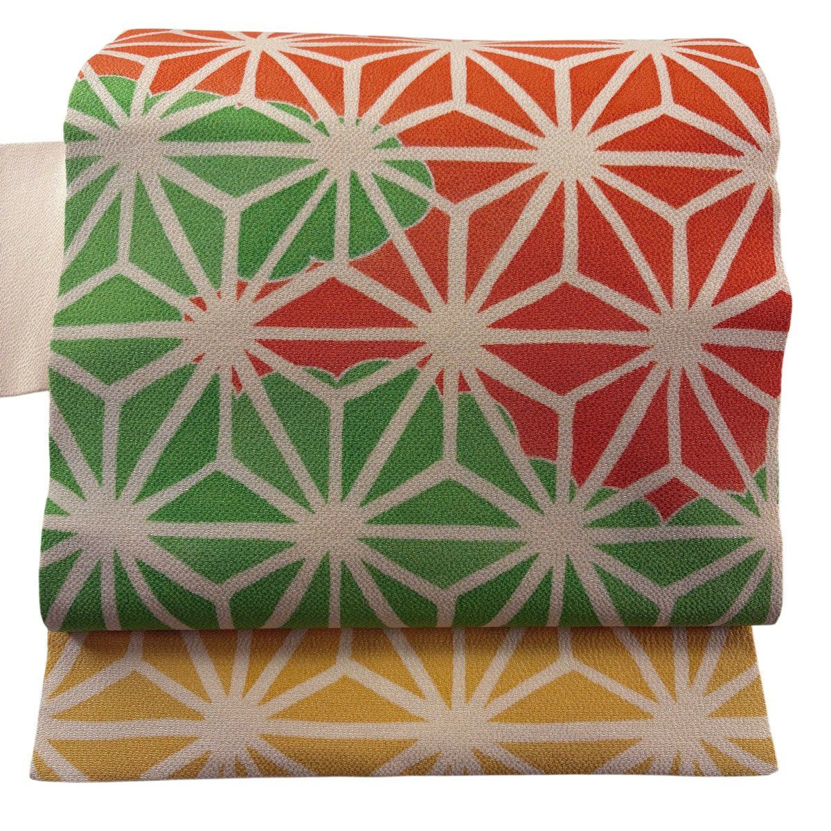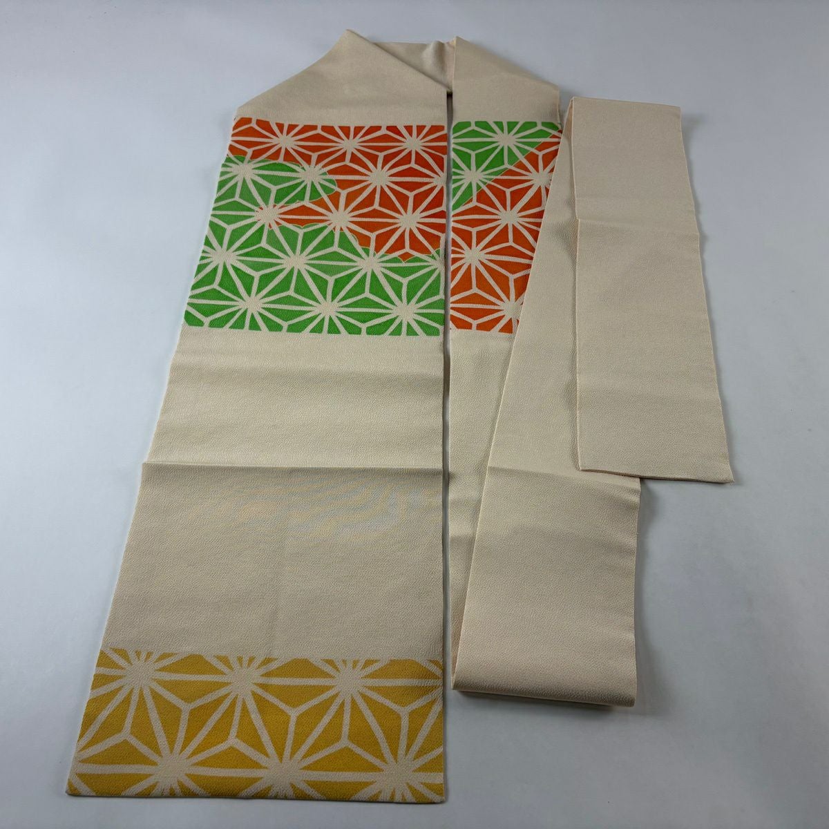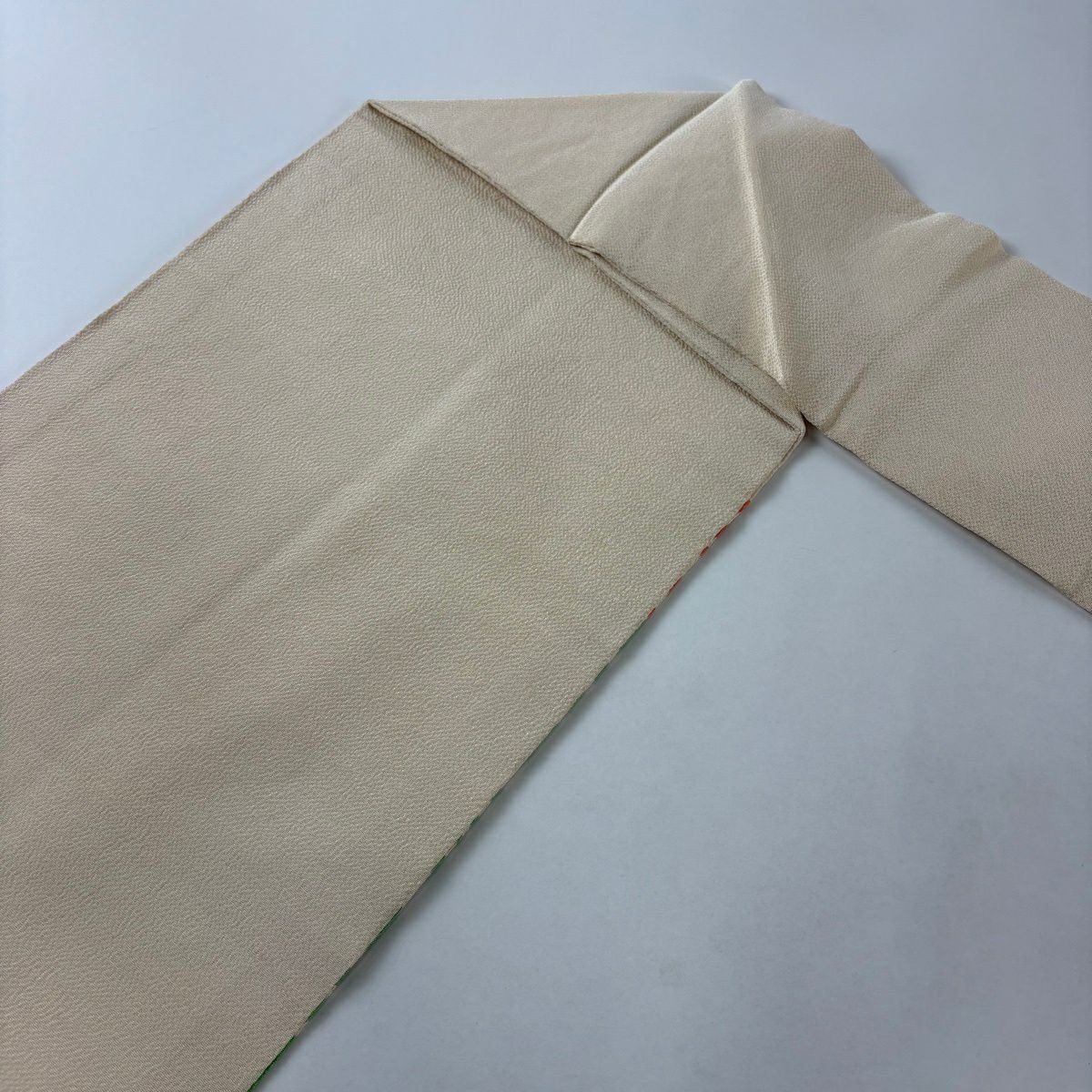 【美品】 名古屋帯 秀品 麻の葉 雲文 縮緬 ベージュ 正絹