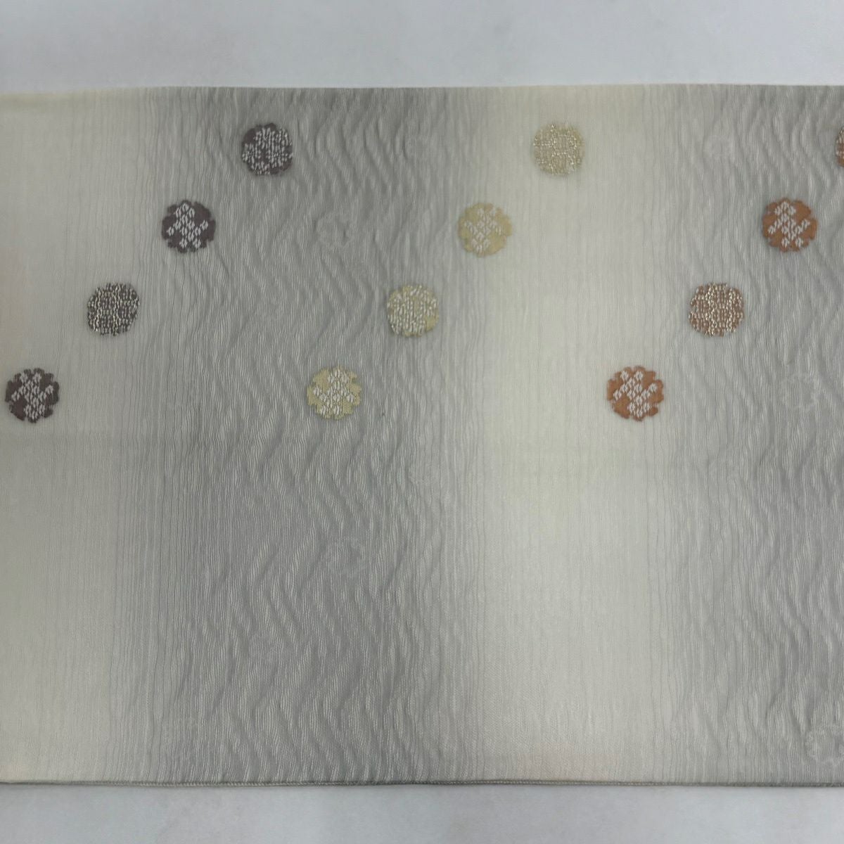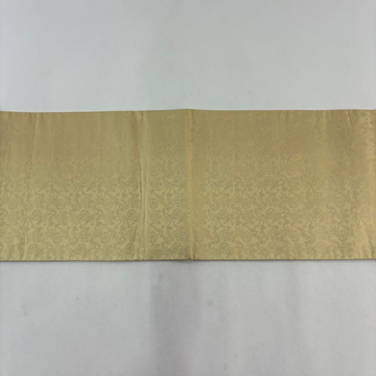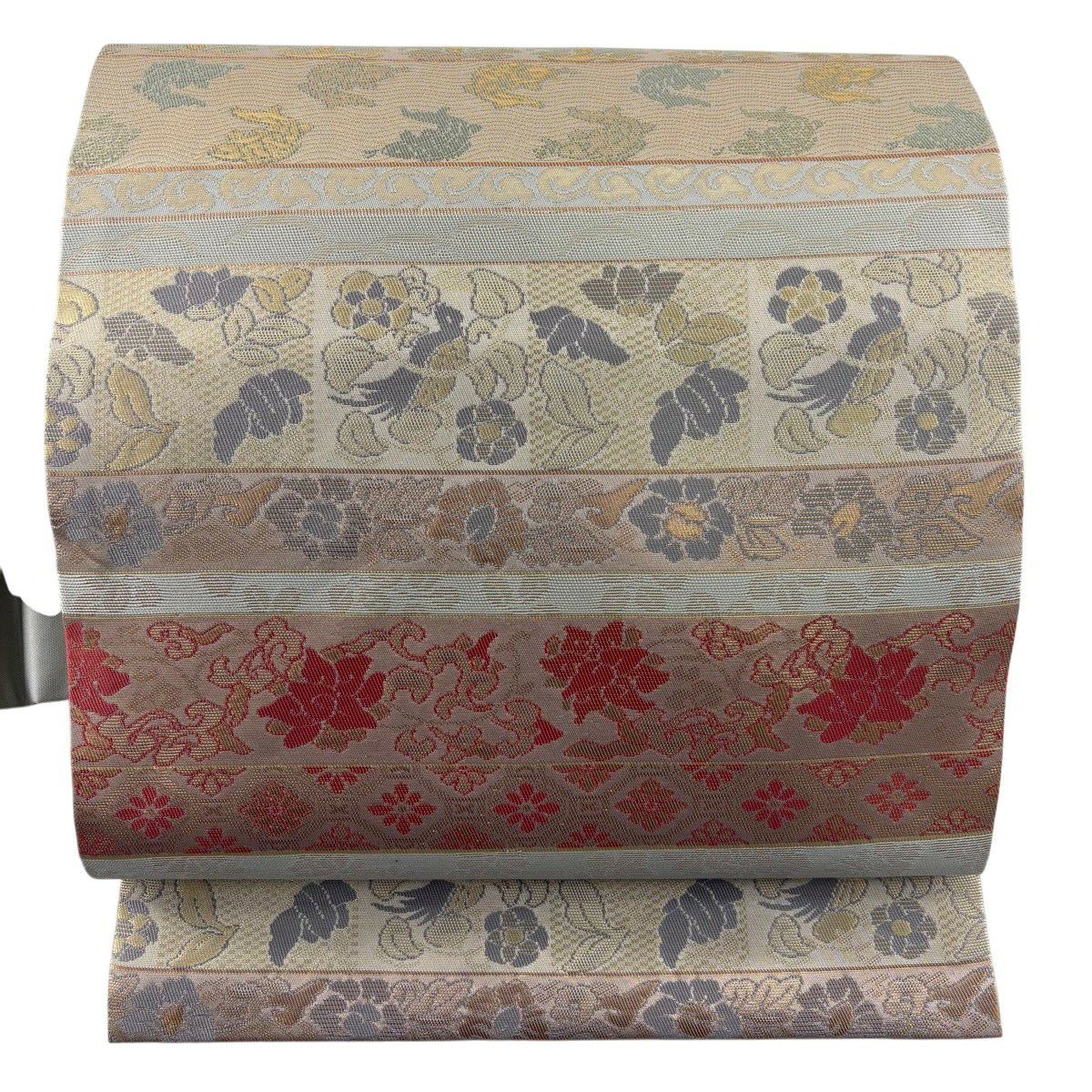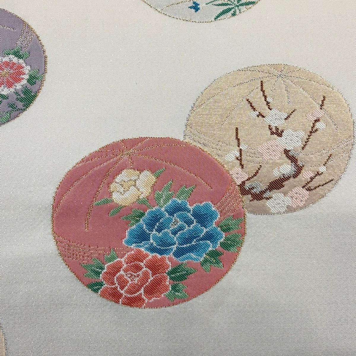 名古屋帯 秀品 関西仕立て 花丸文 金銀糸 刺繍 クリーム 正絹