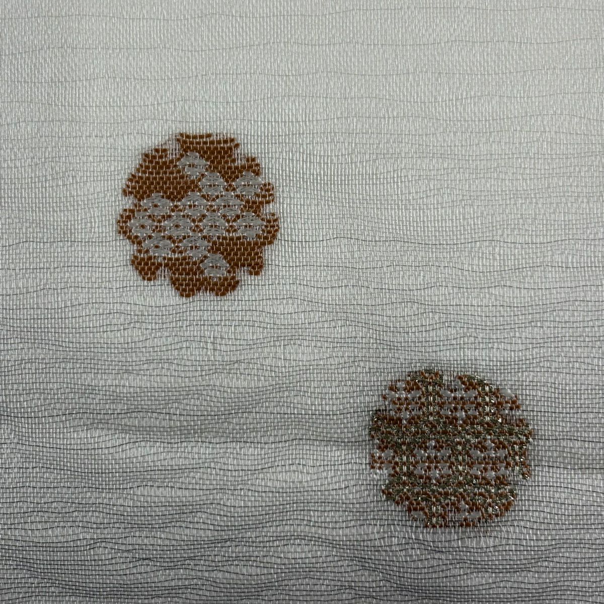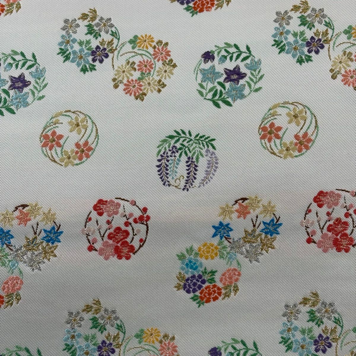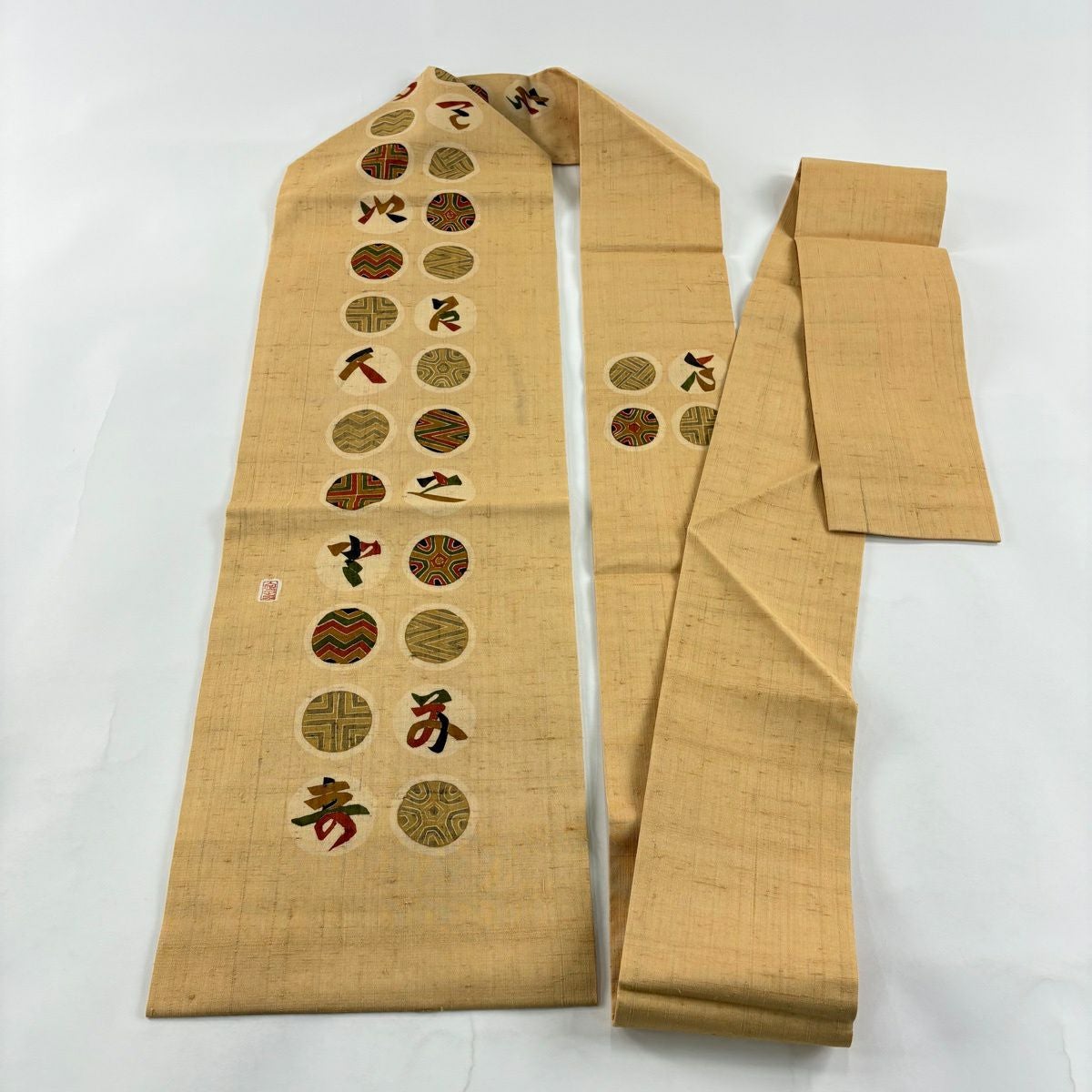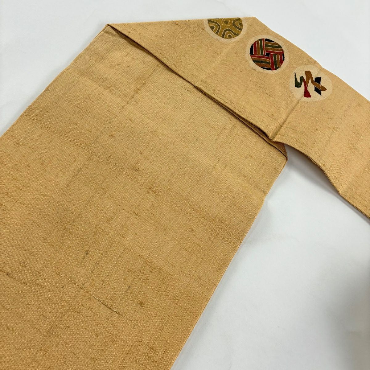 名古屋帯 秀品 関西仕立て 花丸文 金銀糸 刺繍 クリーム 正絹