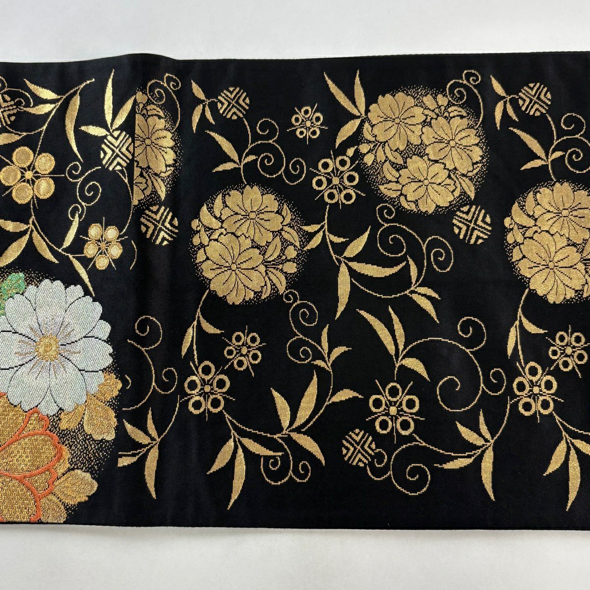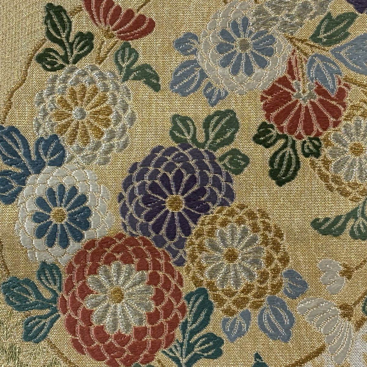 【美品】 袋帯 秀品 桃山花丸文 菊 金銀糸 箔 金色 六通 正絹