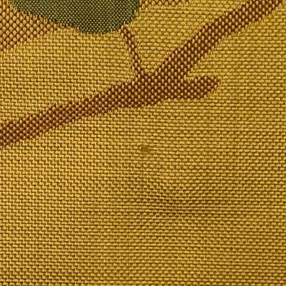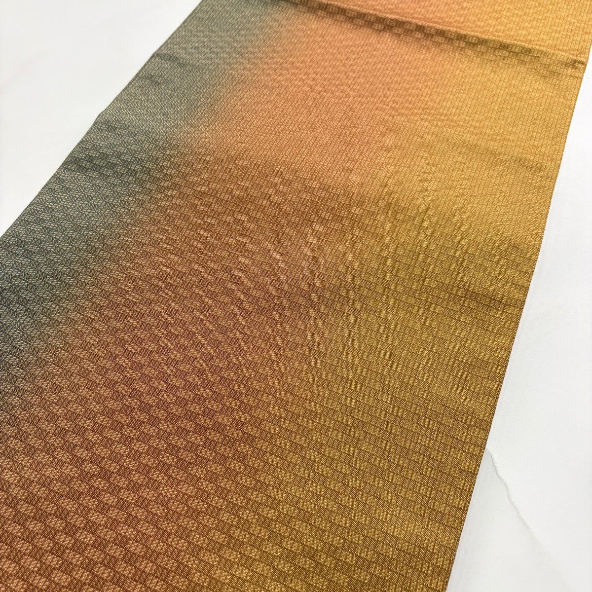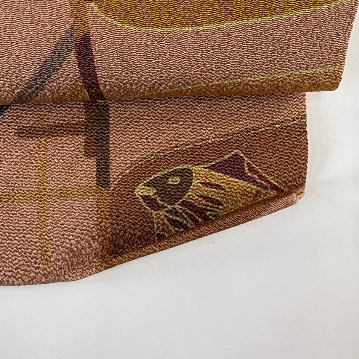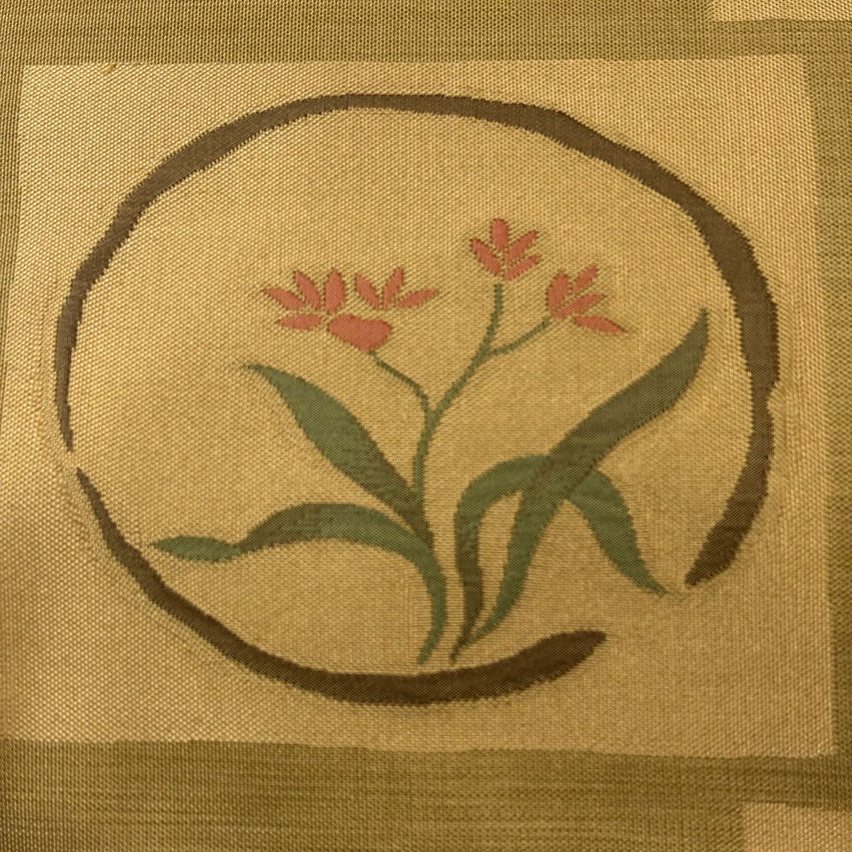 【美品】 袋帯 秀品 紬地 草花 幾何学模様 黄土色 六通 正絹
