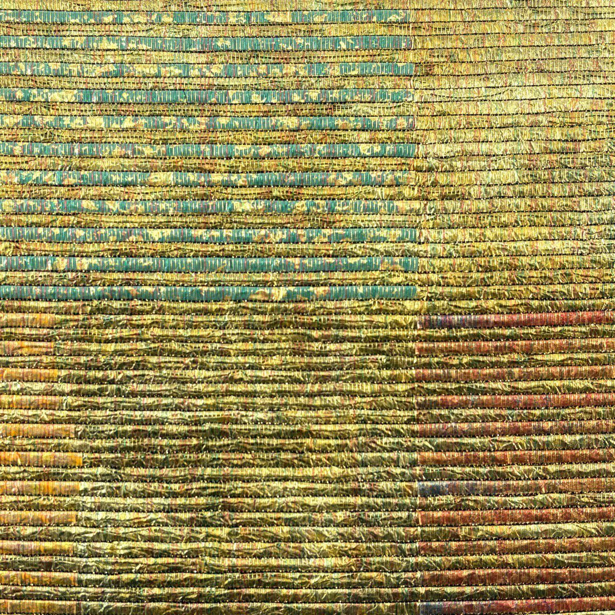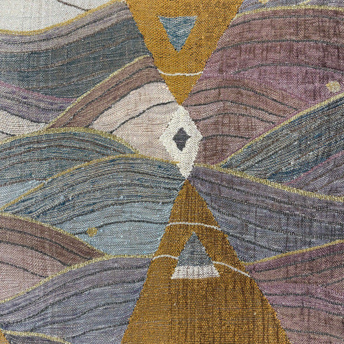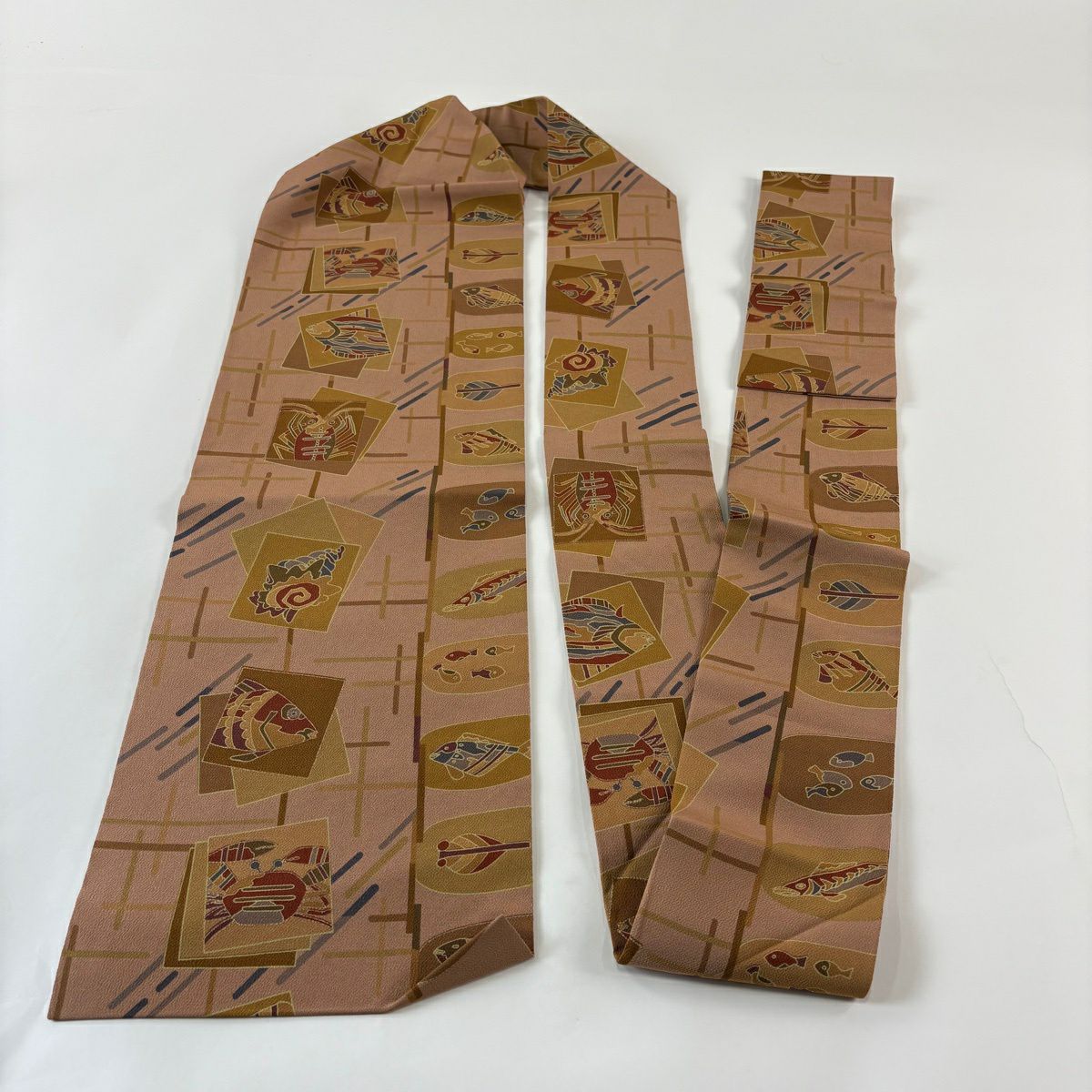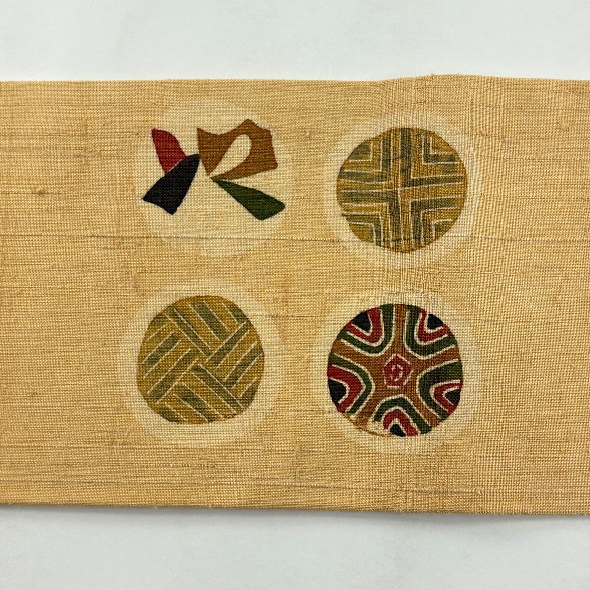 【美品】 袋帯 秀品 紬地 草花 幾何学模様 黄土色 六通 正絹