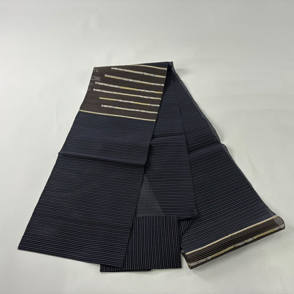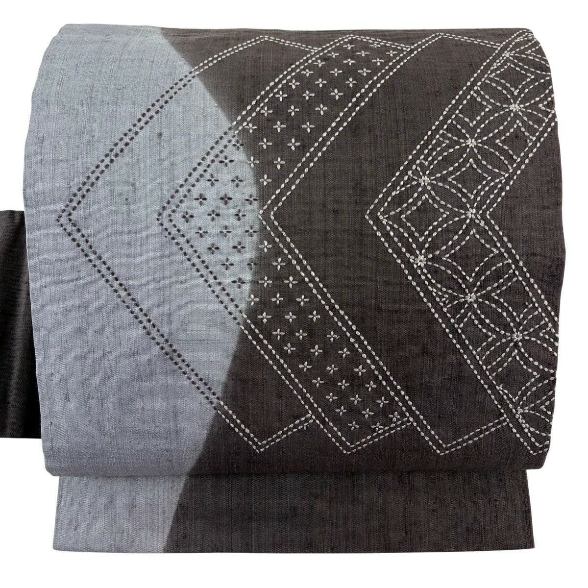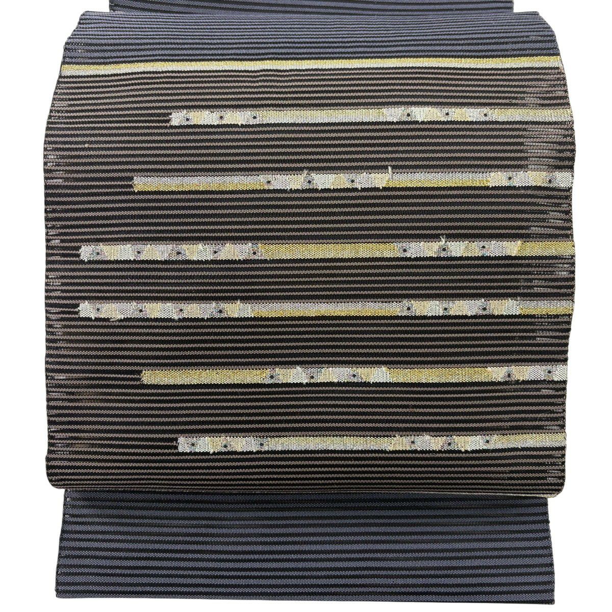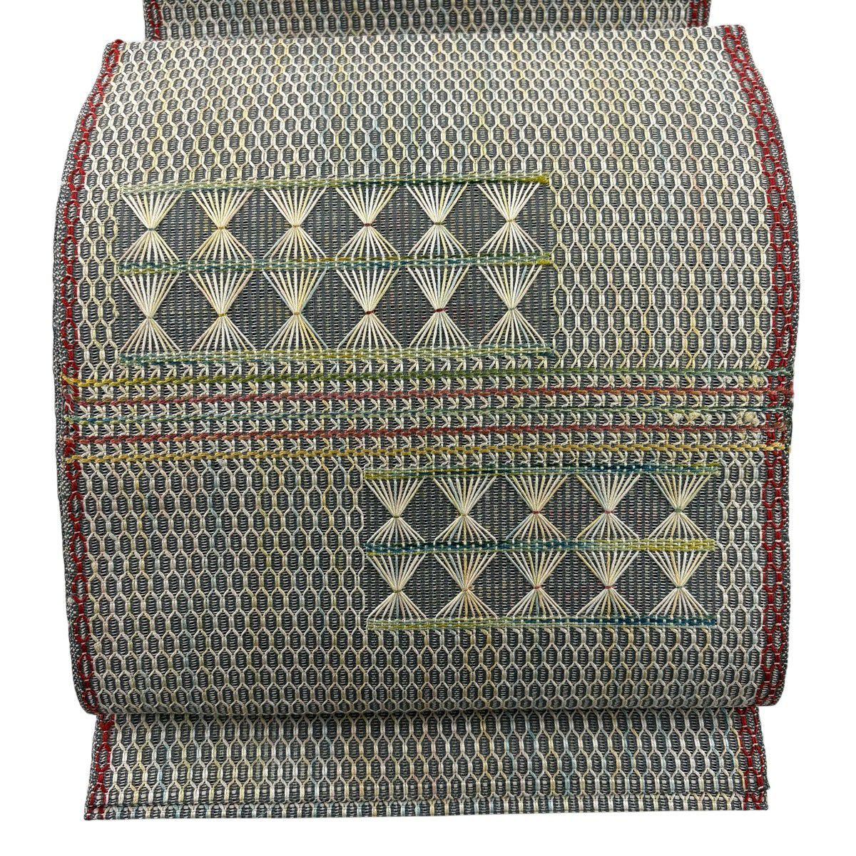 【美品】 名古屋帯 秀品 八寸名古屋帯 夏帯 亀甲 幾何学 灰色 正絹