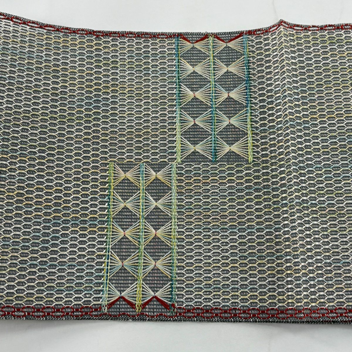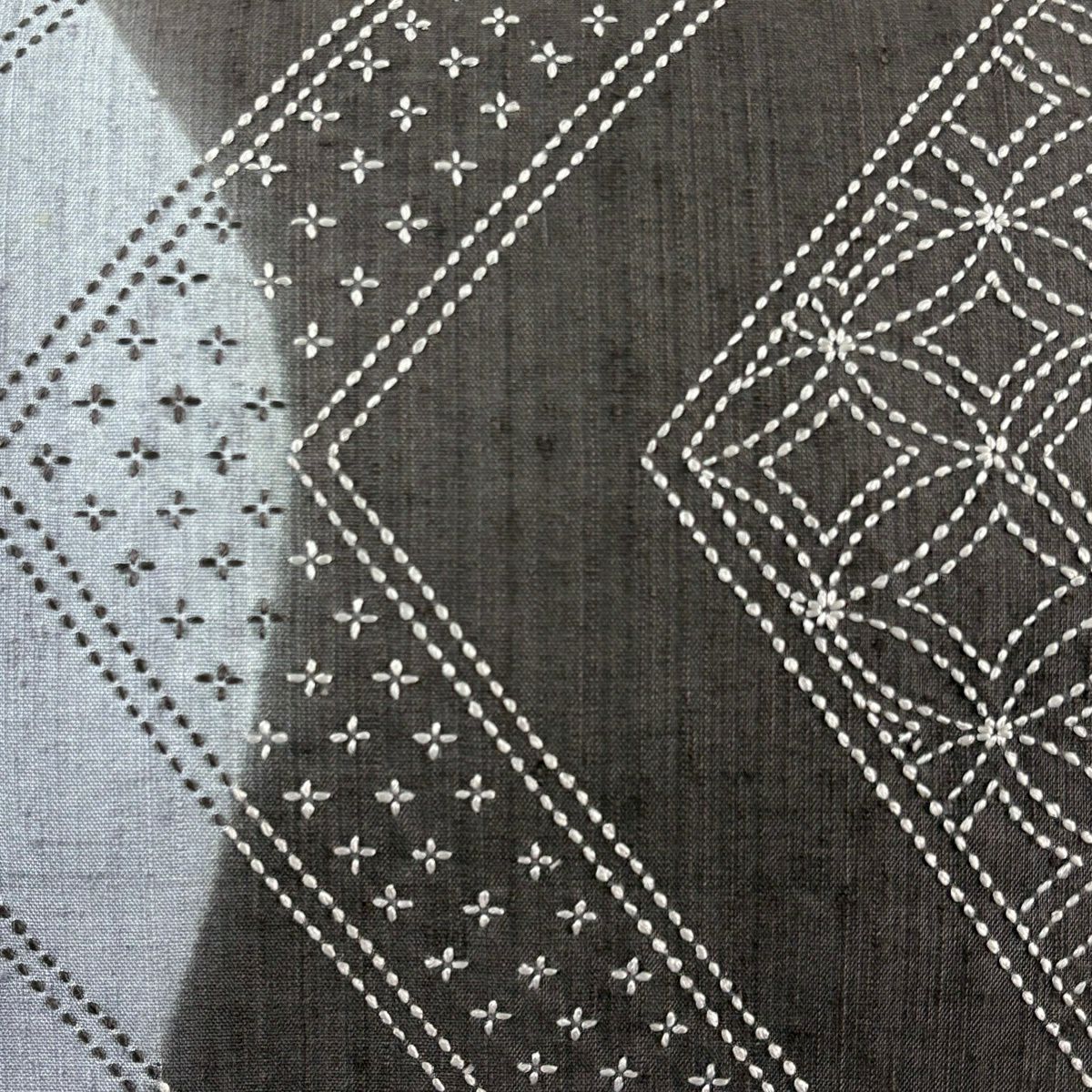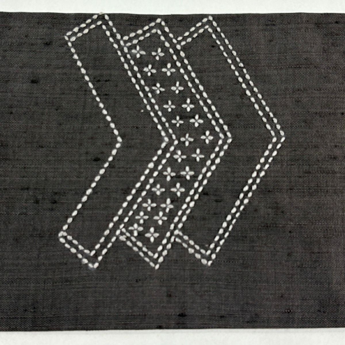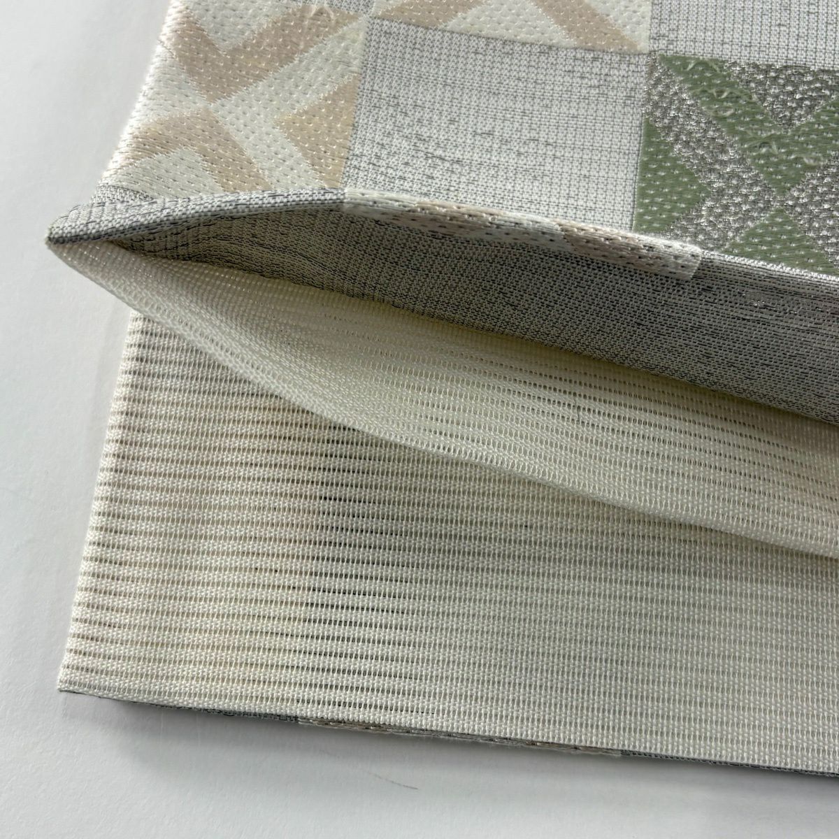 【美品】 袋帯 秀品 市松 幾何学 銀糸 刺繍 灰色 六通 正絹