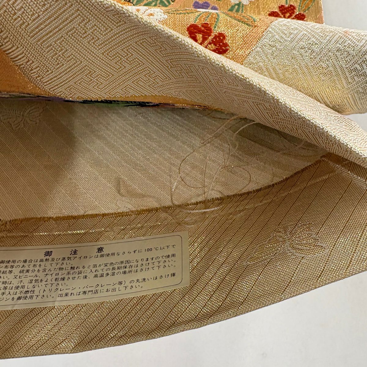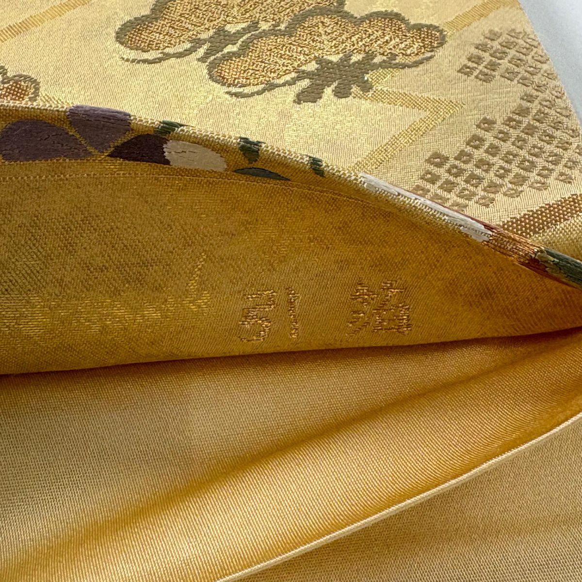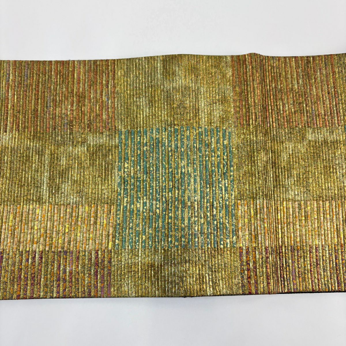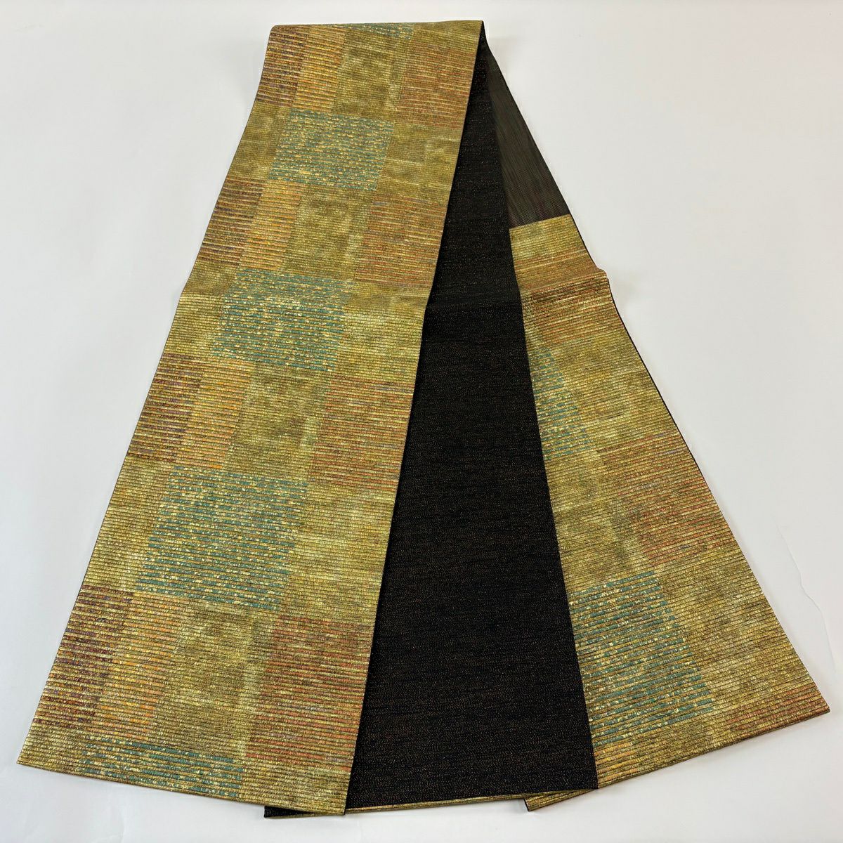 【美品】 袋帯 秀品 落款あり 変わり市松 金彩 金色 六通 正絹