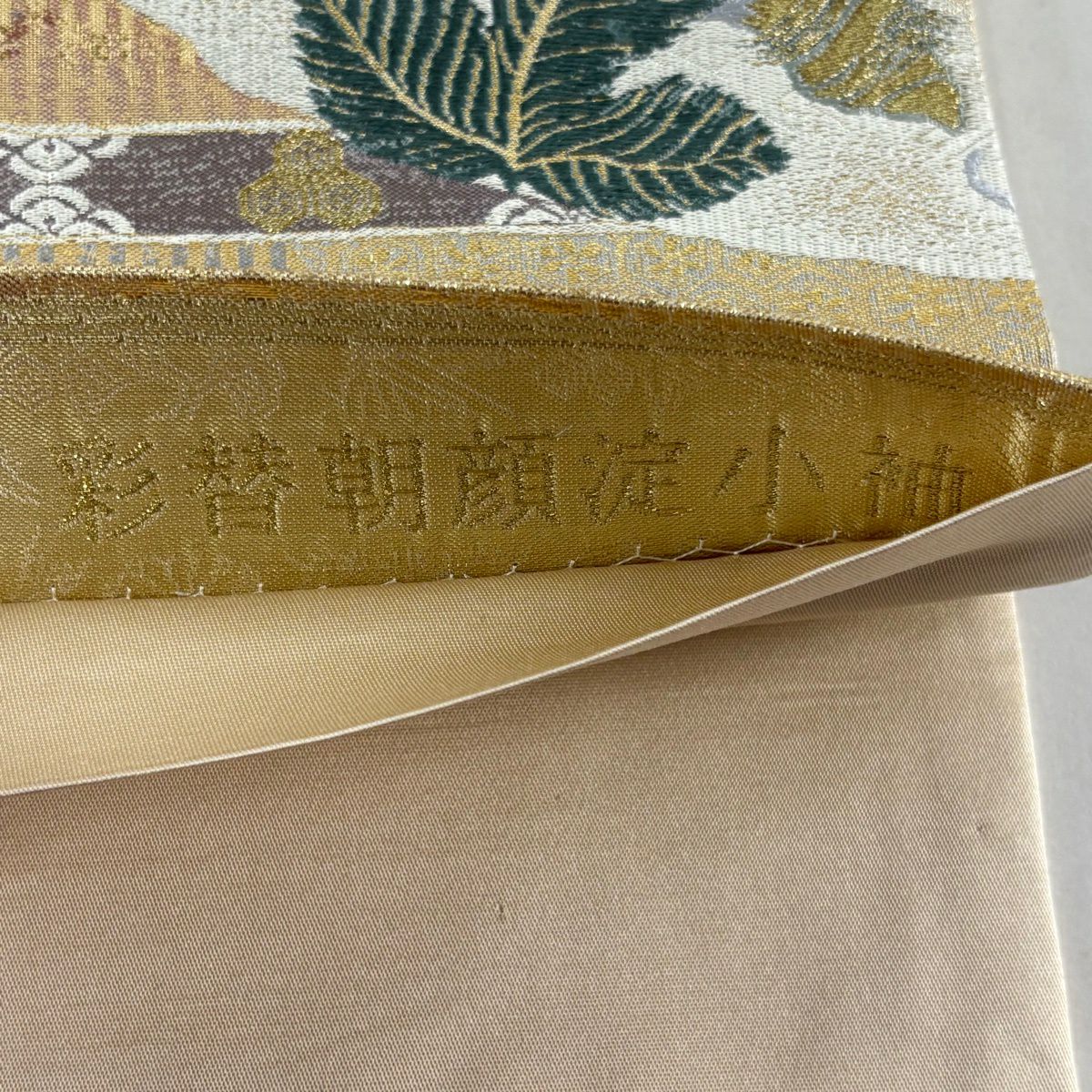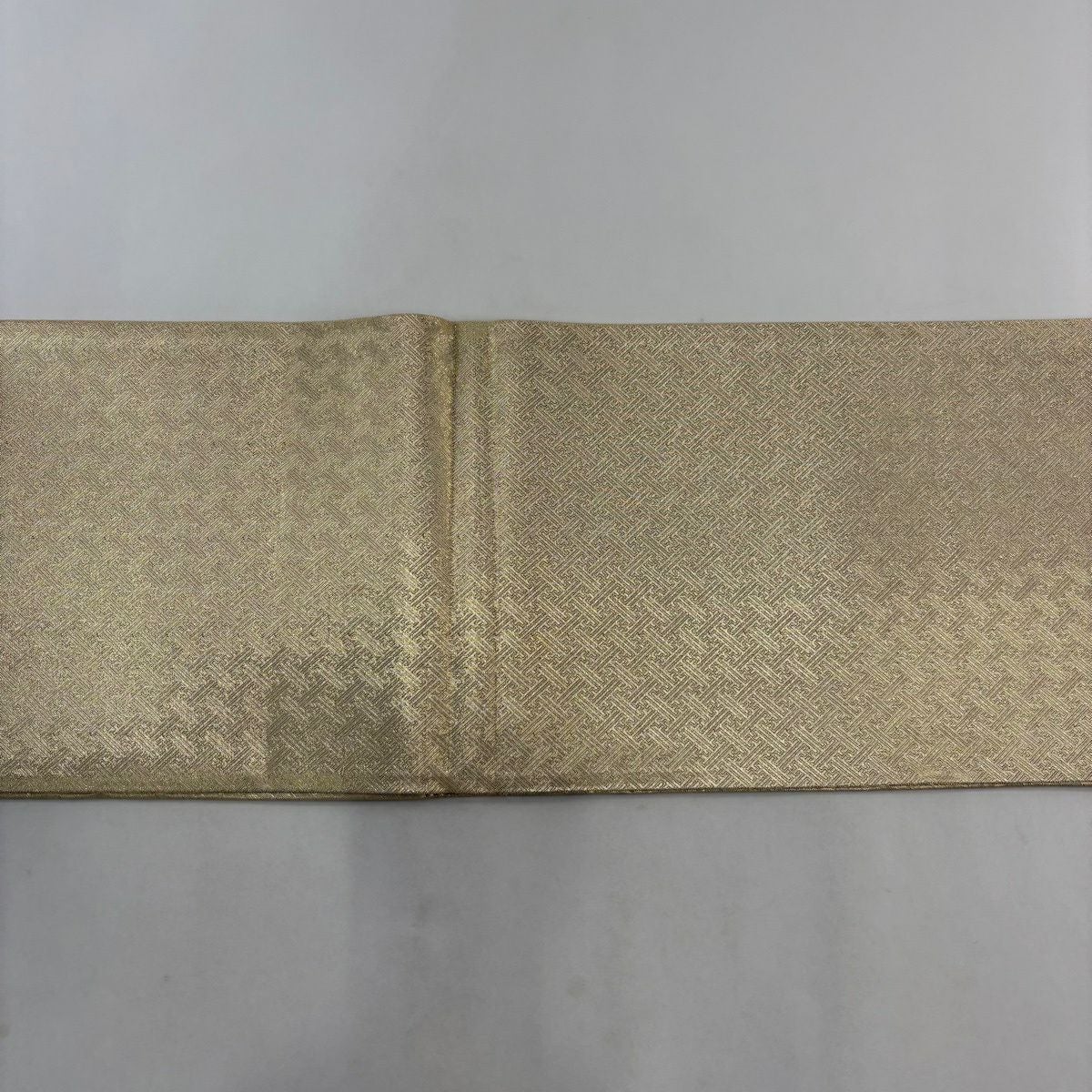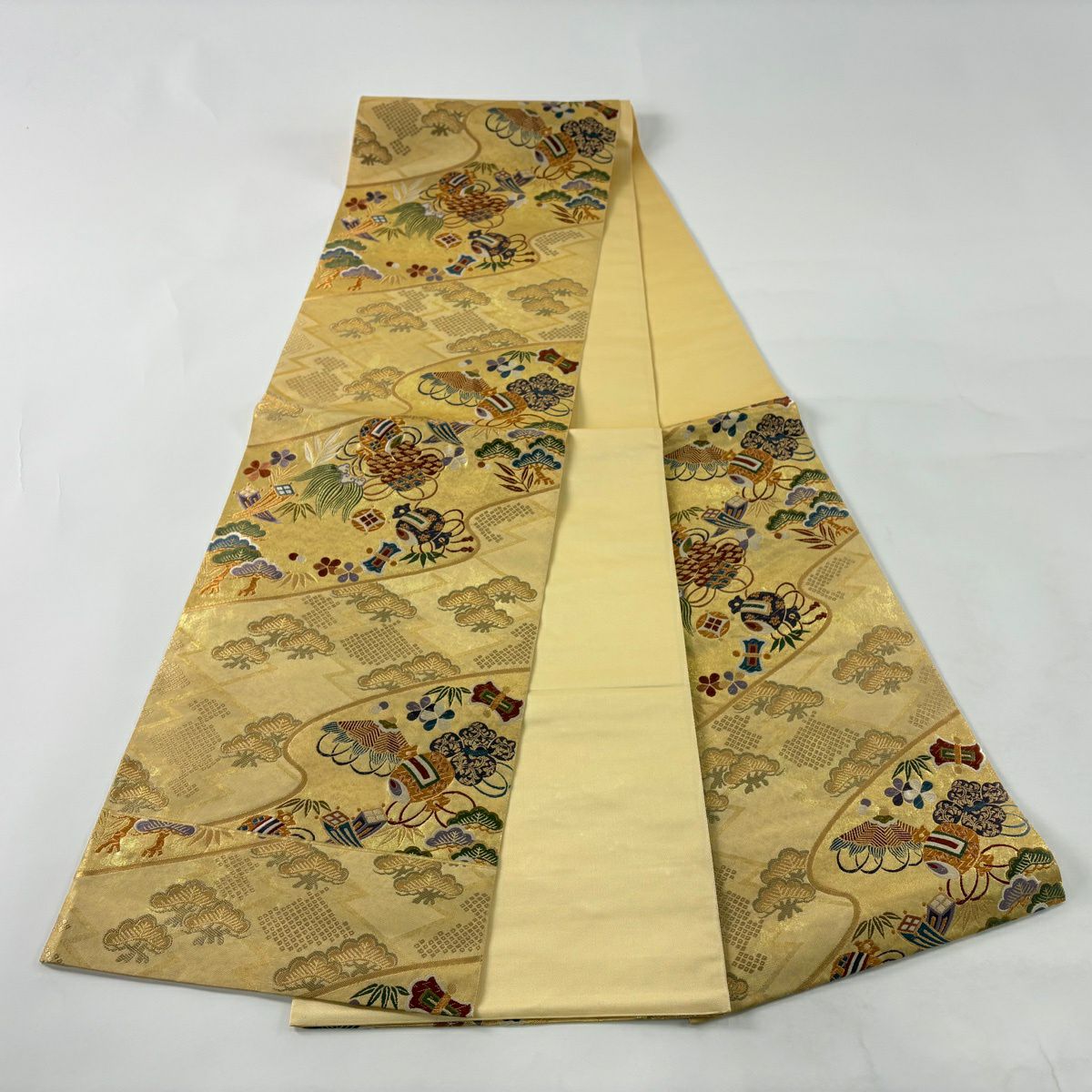 【美品】 袋名古屋帯 秀品 若松 亀甲 金糸 ベージュ 正絹