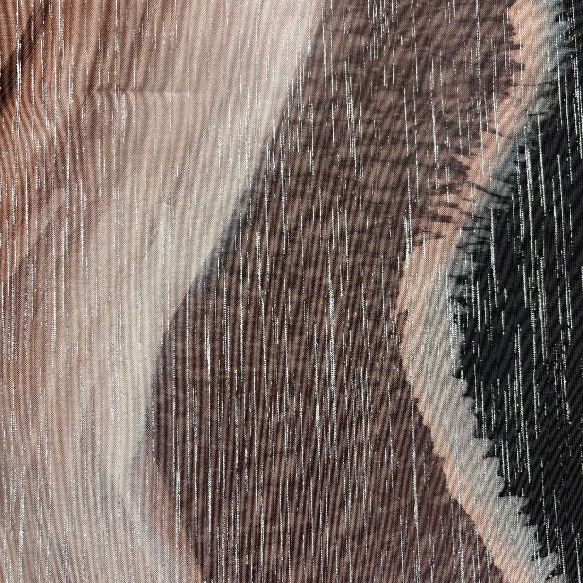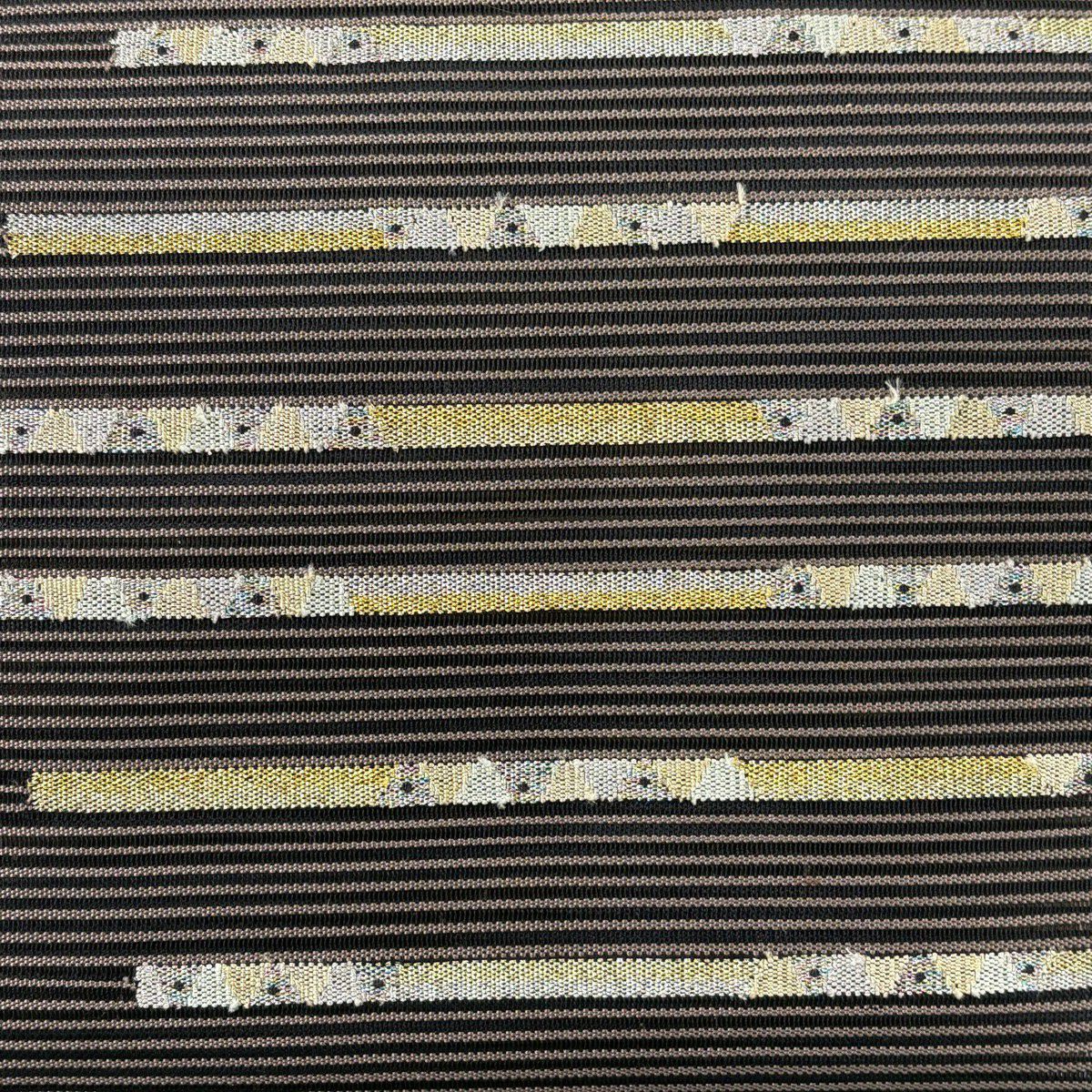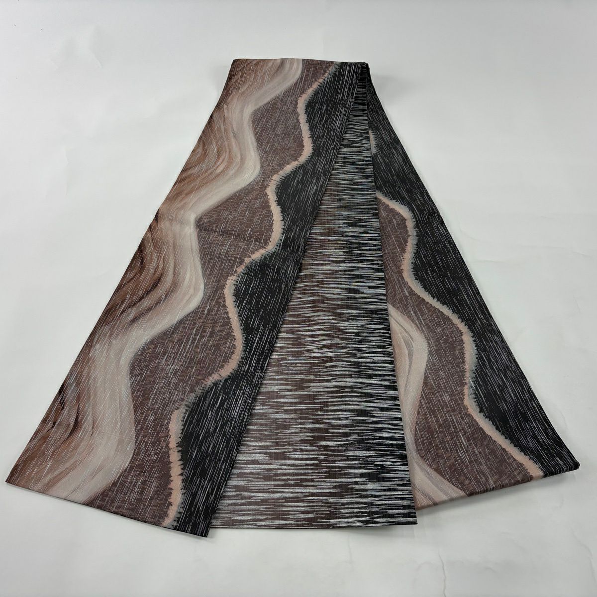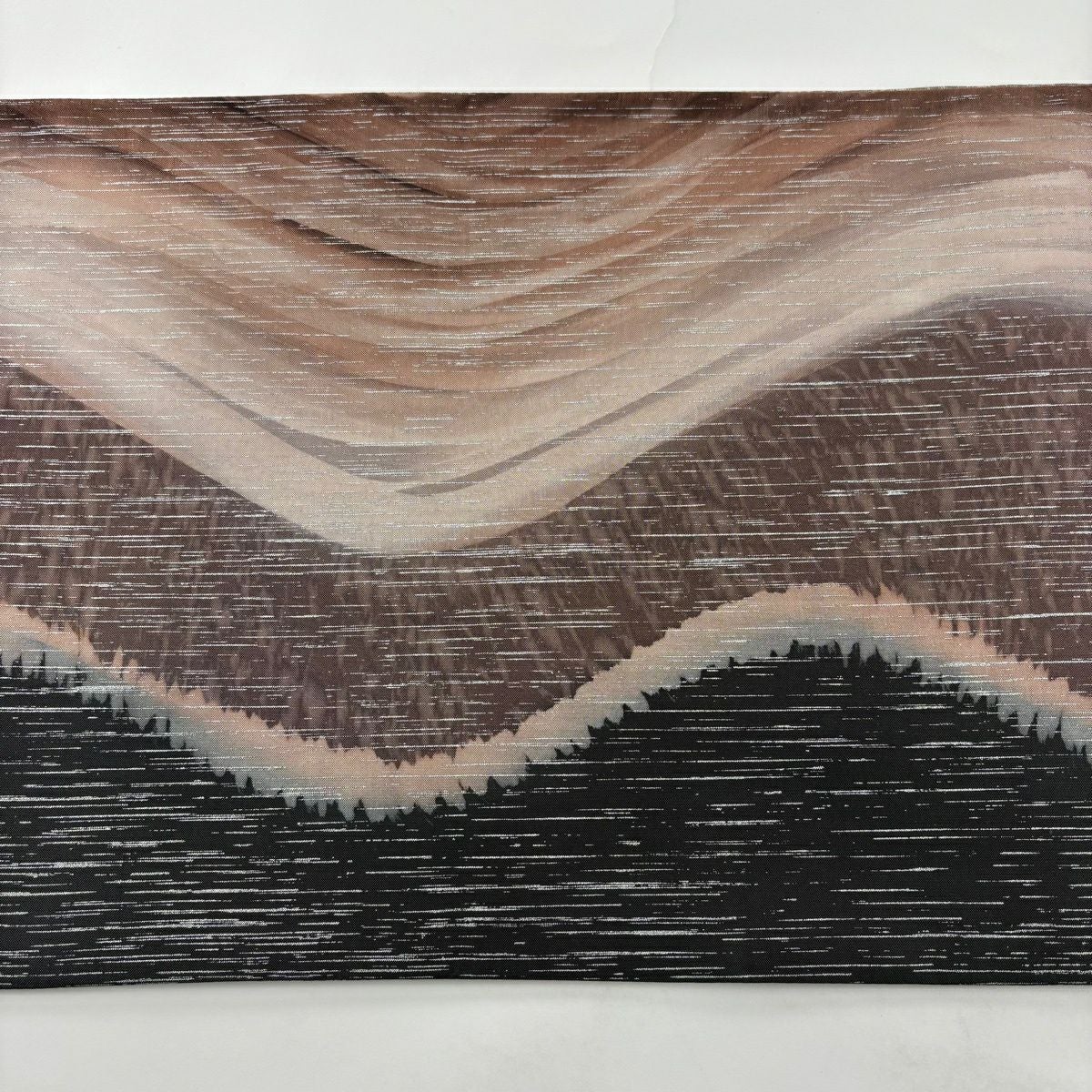 【美品】 袋帯 秀品 よろけ縞 幾何学 銀彩 小豆色 全通 正絹