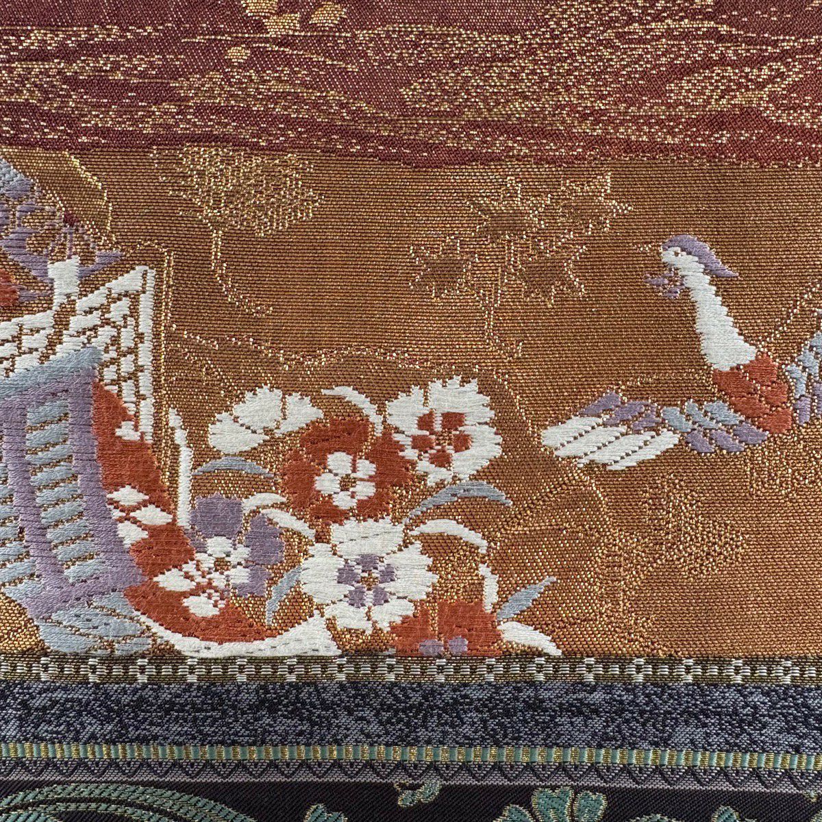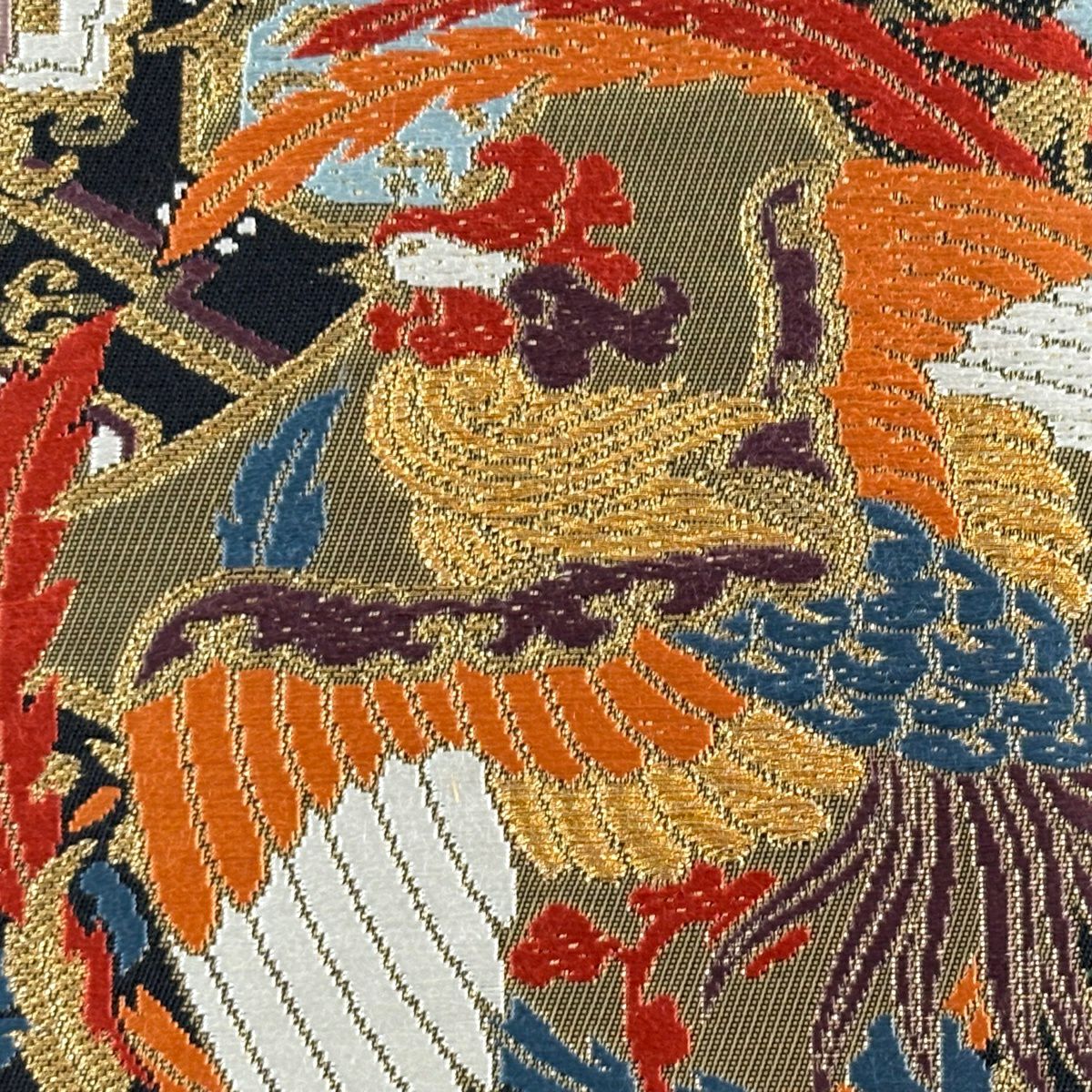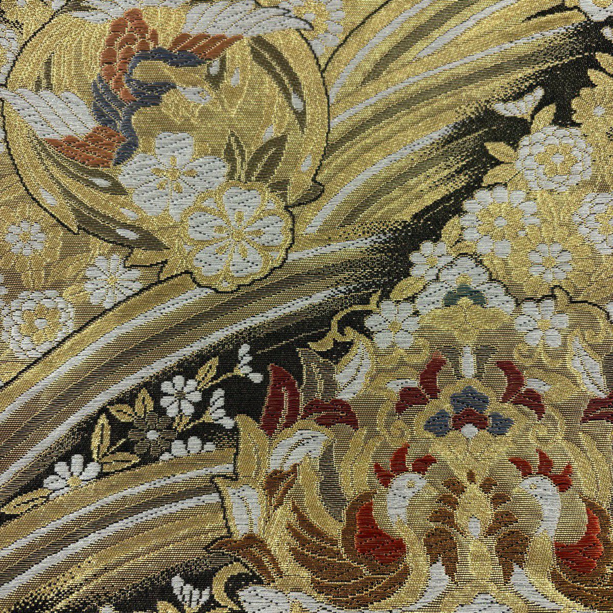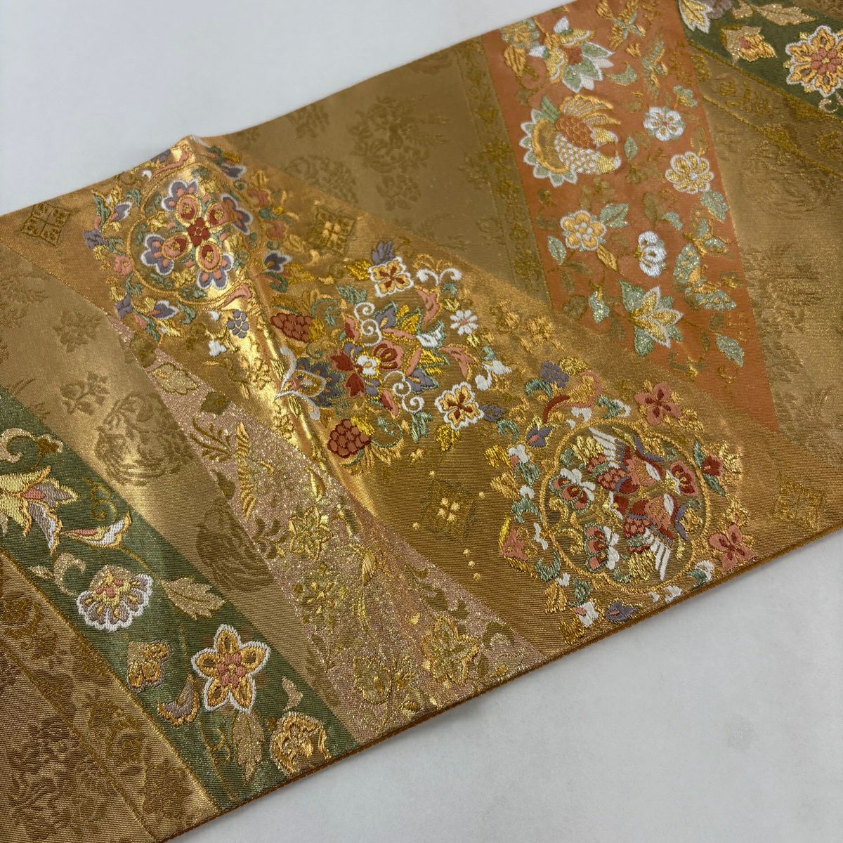 【美品】 袋帯 秀品 向かい鳥 華文 箔 唐織 金色 六通 正絹