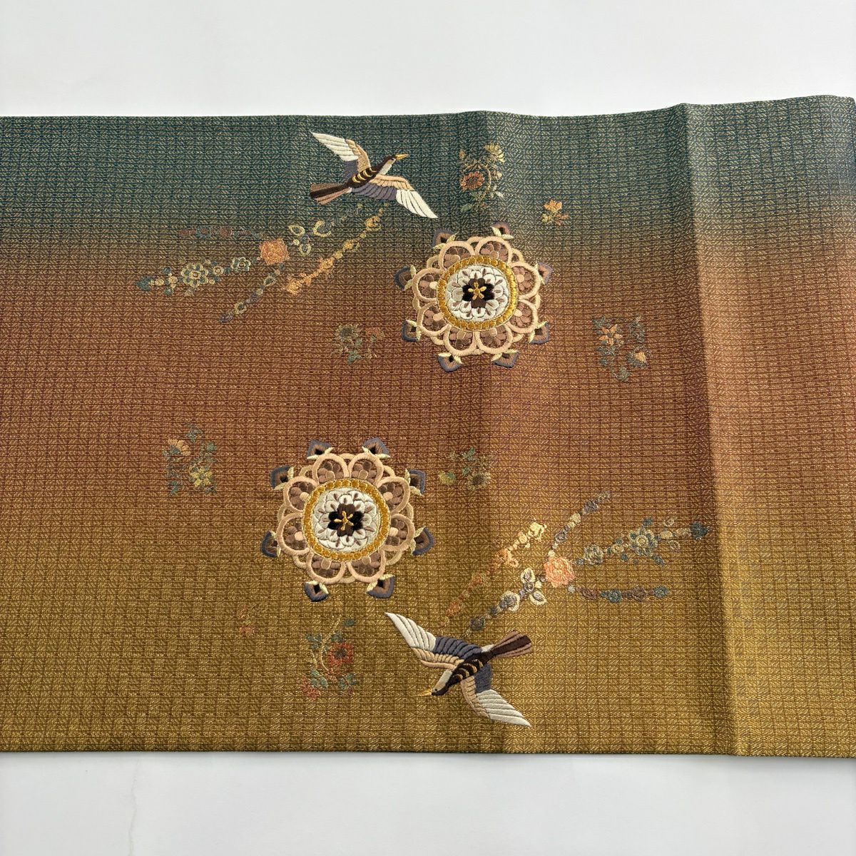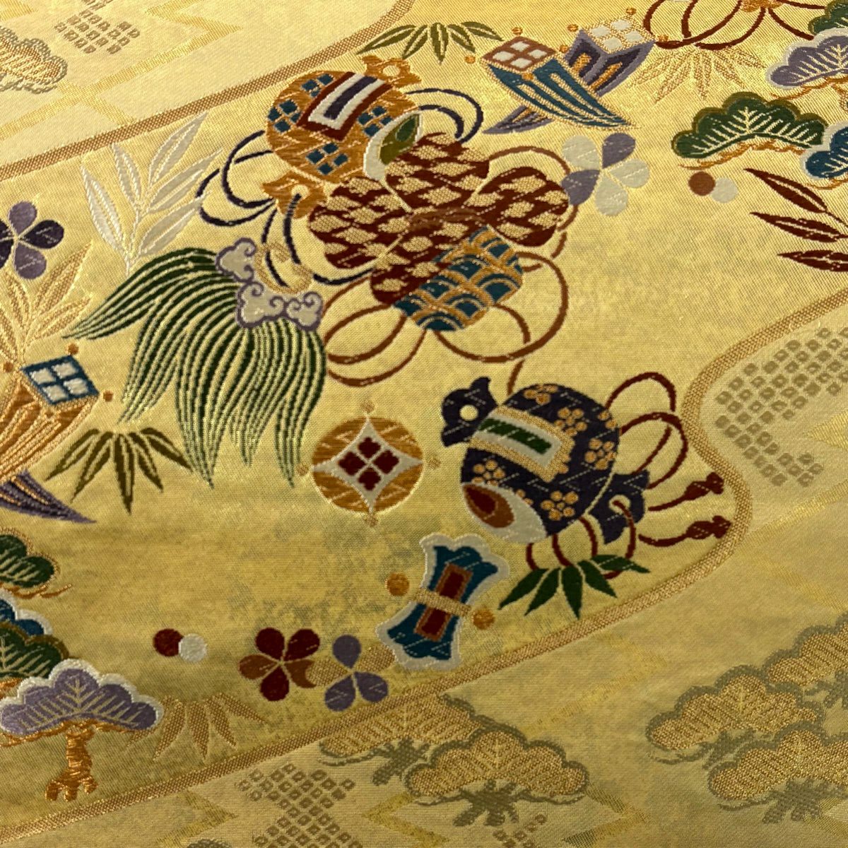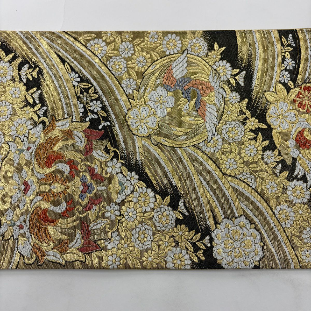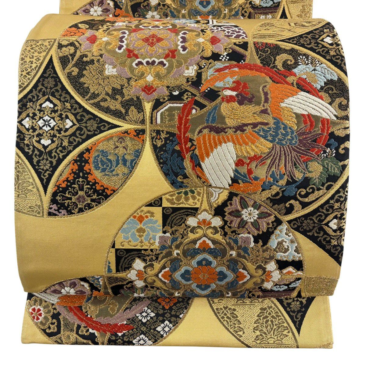 【美品】 袋帯 秀品 花丸文 向かい鳥 金糸 箔 金色 六通 正絹