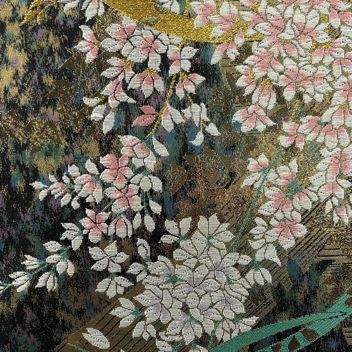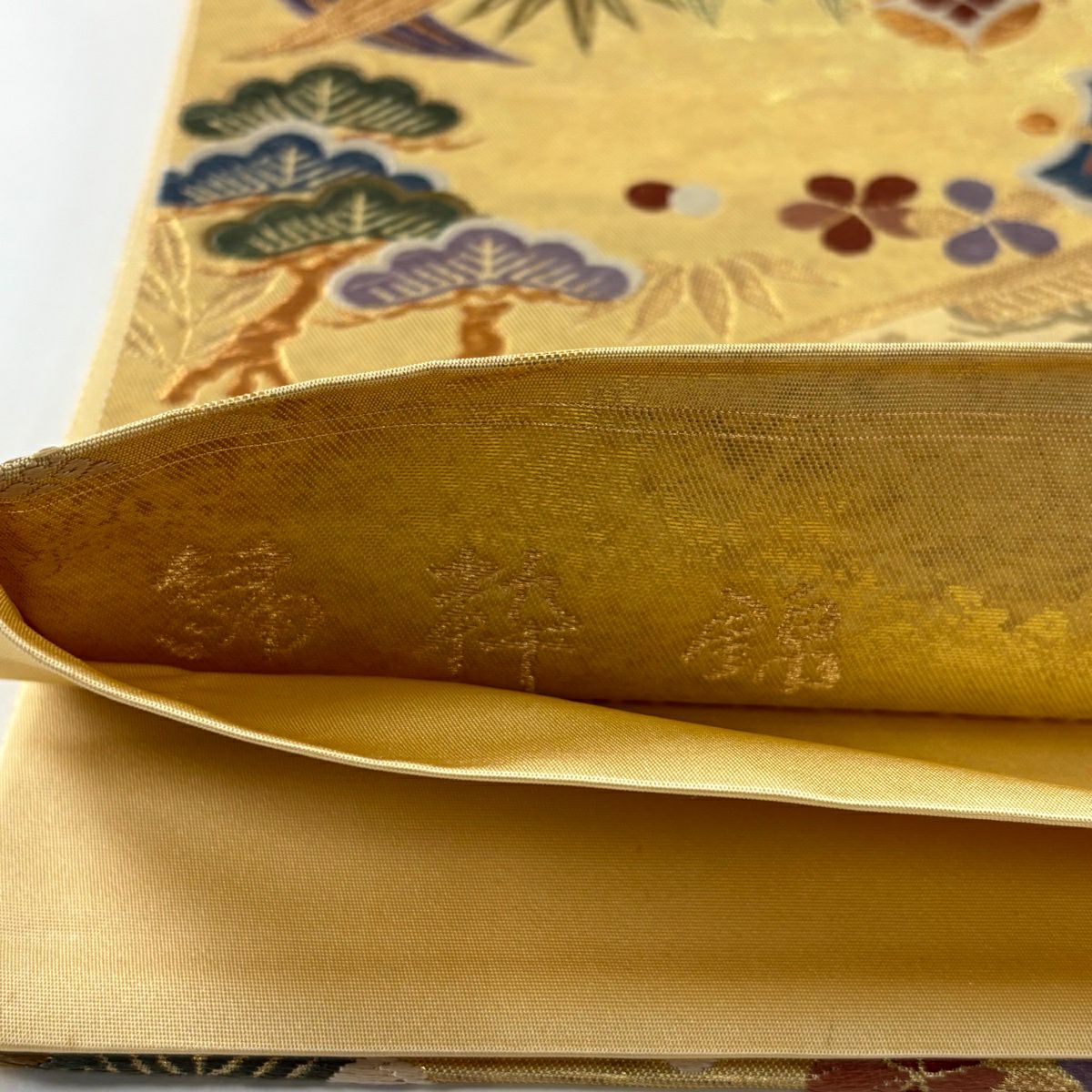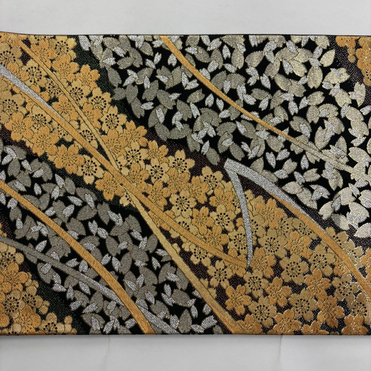 【美品】 袋帯 秀品 振袖向き 桜 梅 金糸 箔 金色 六通 正絹