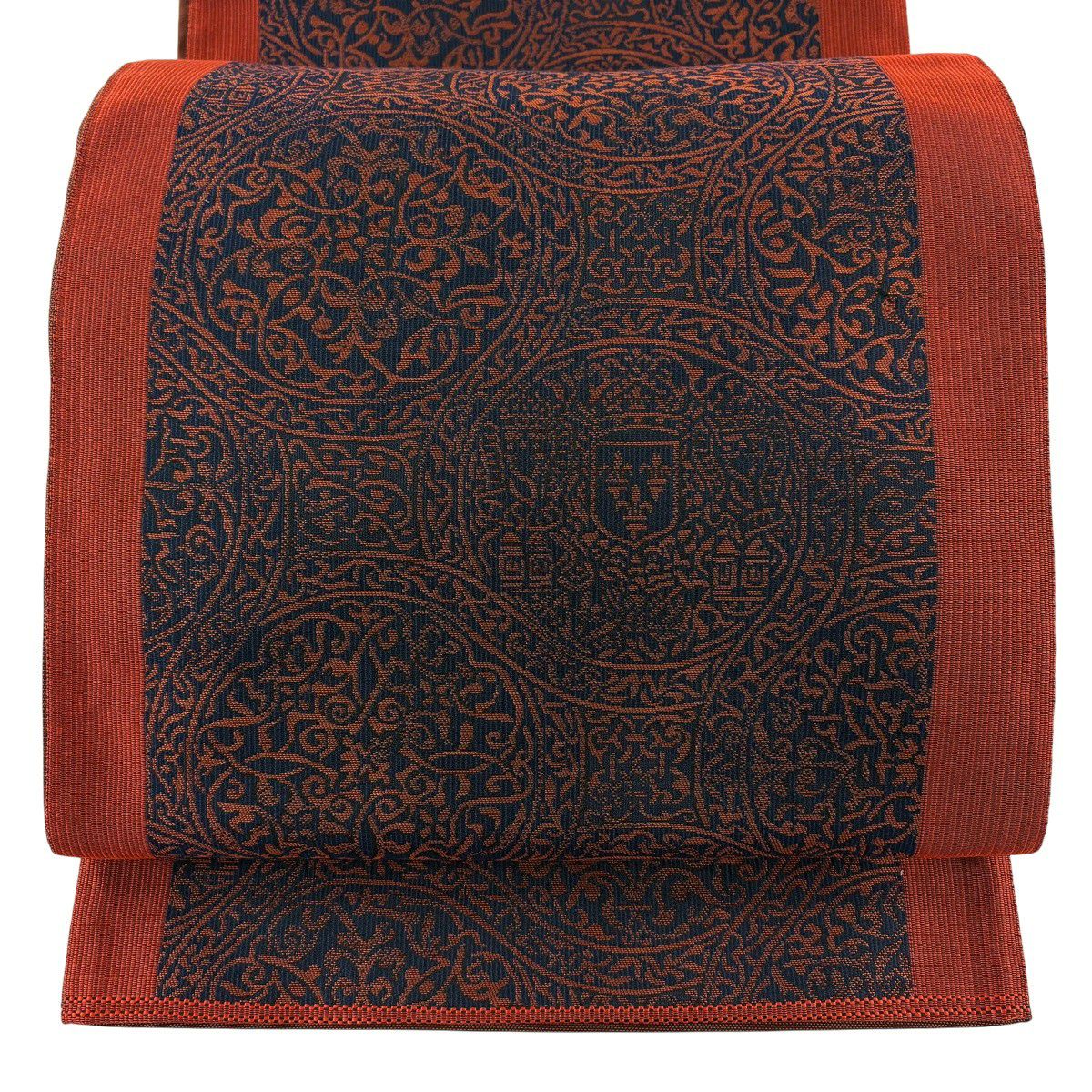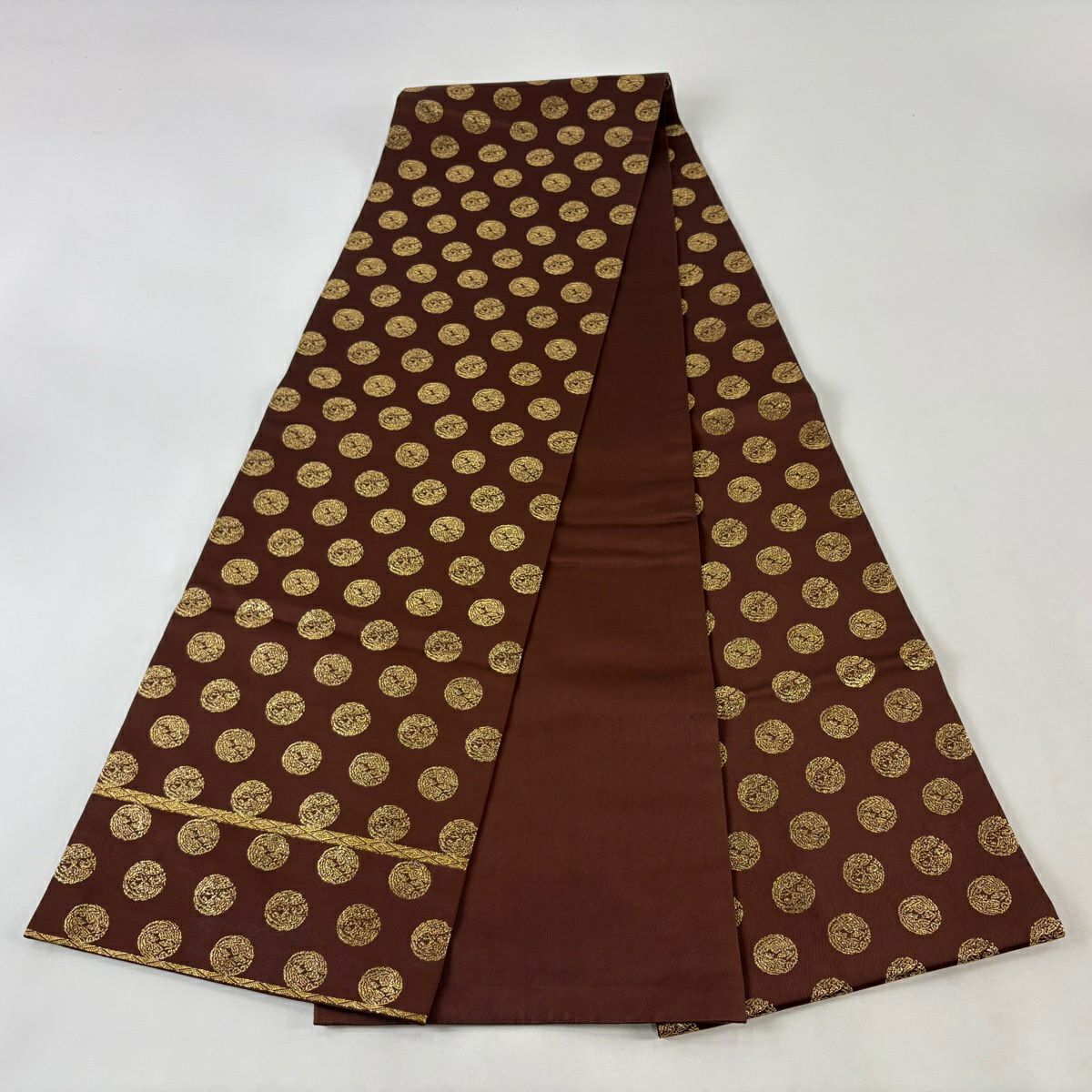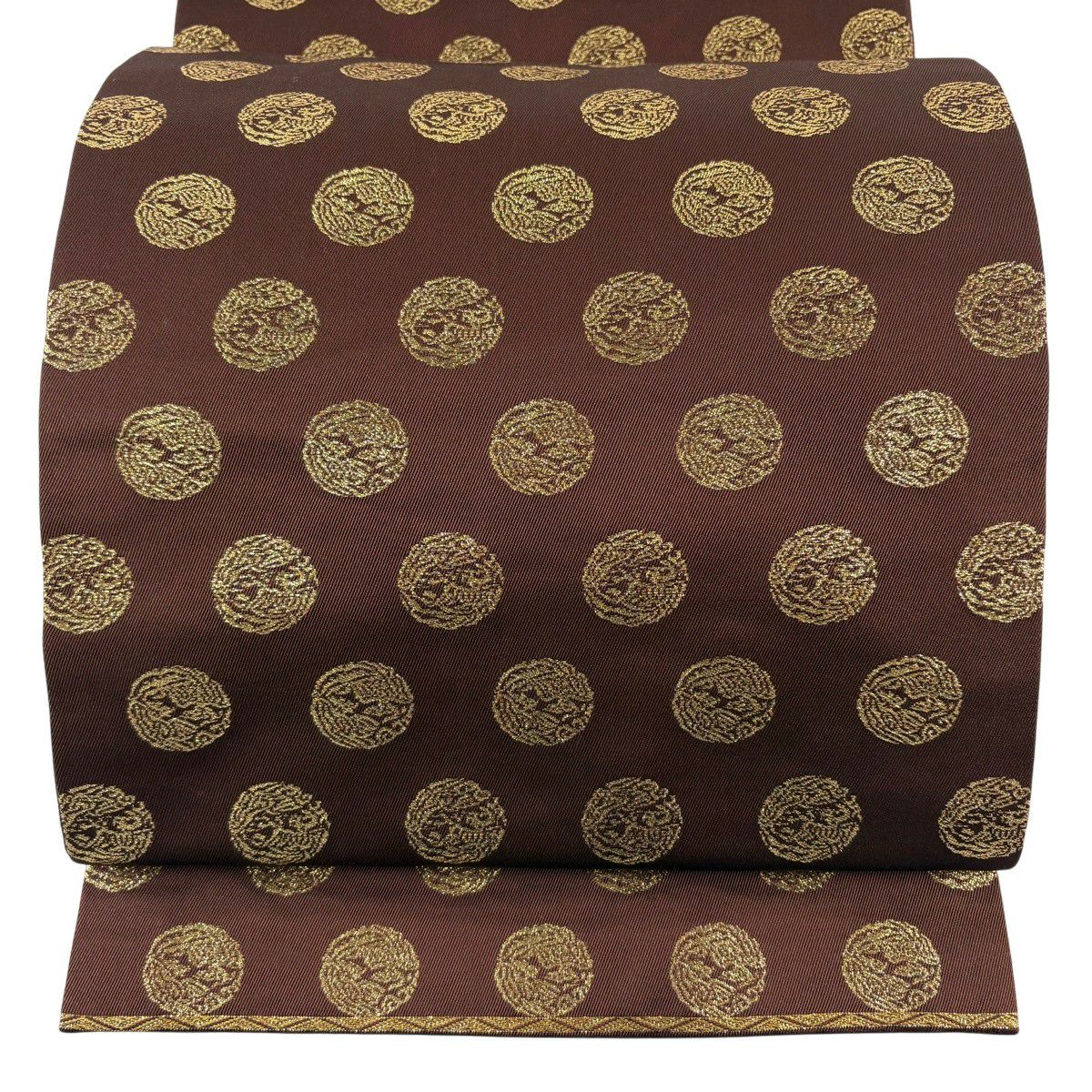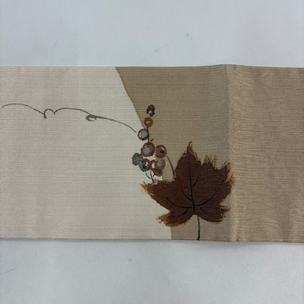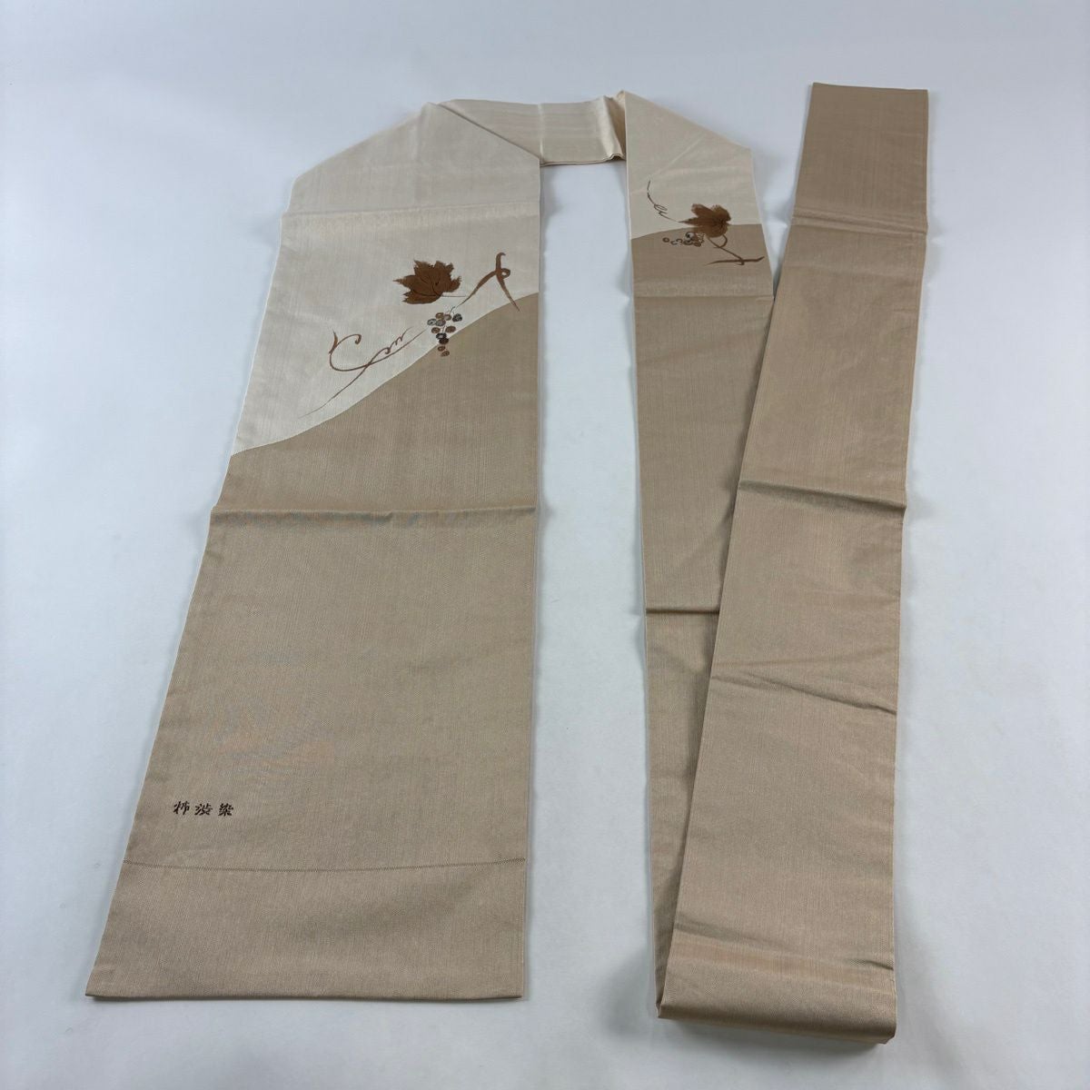 【美品】 名古屋帯 秀品 柿渋染 葡萄 金糸 ベージュ 正絹