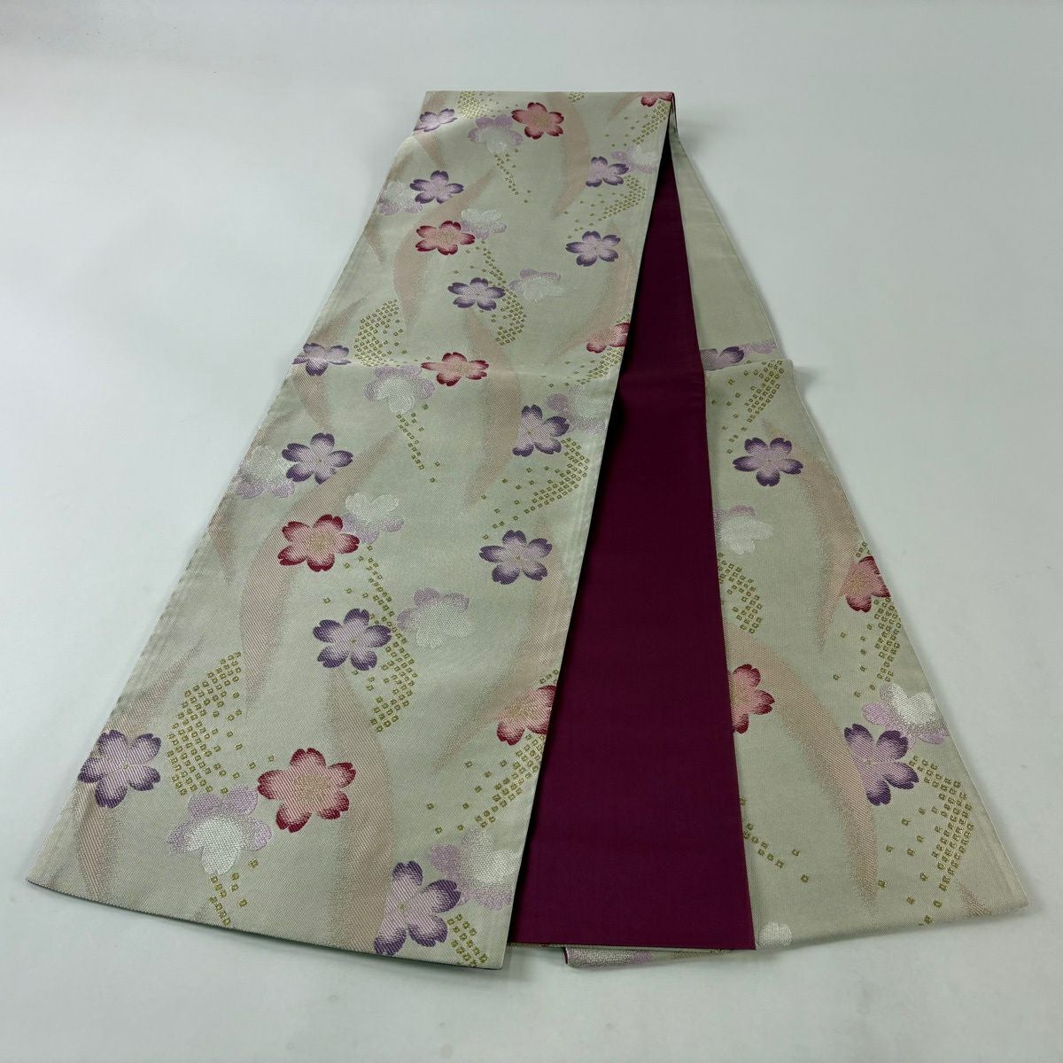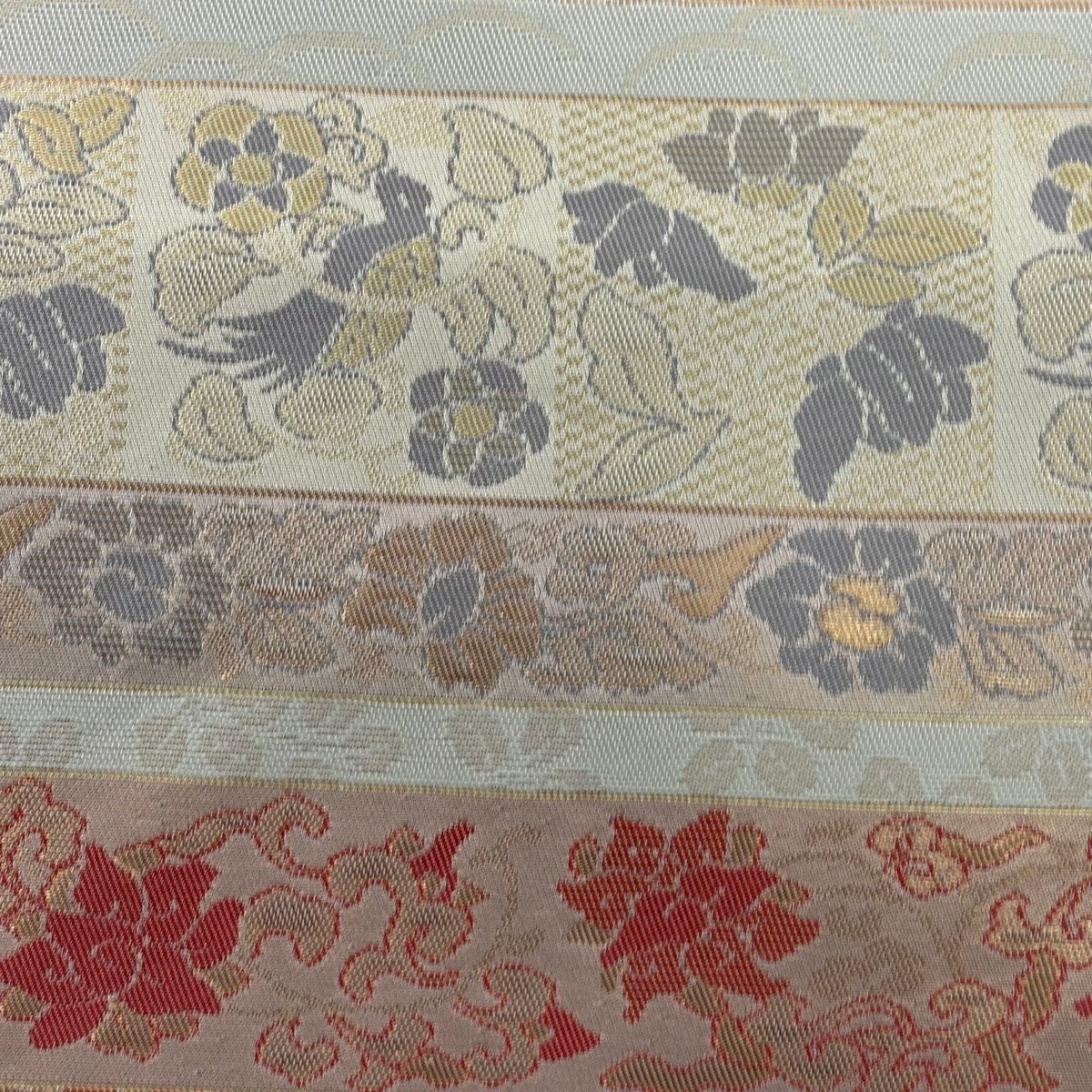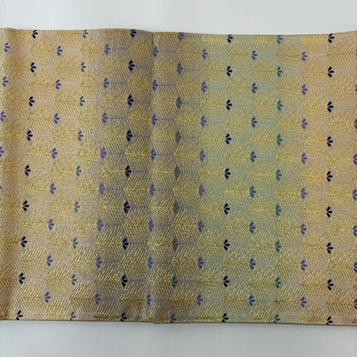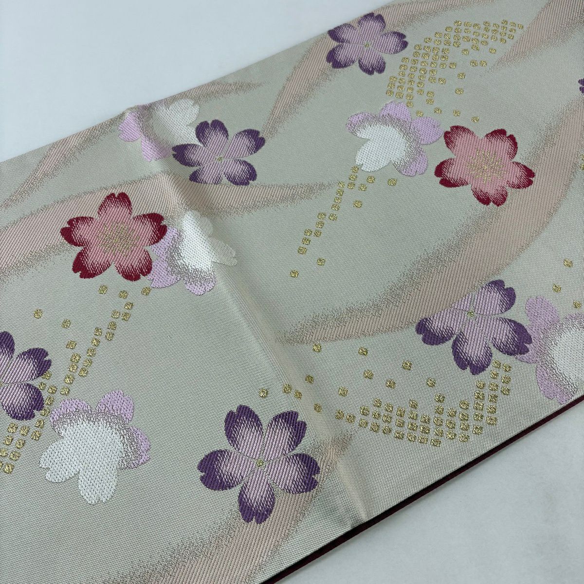 【美品】 袋帯 秀品 桜 幾何学 金糸 ベージュ 六通 正絹