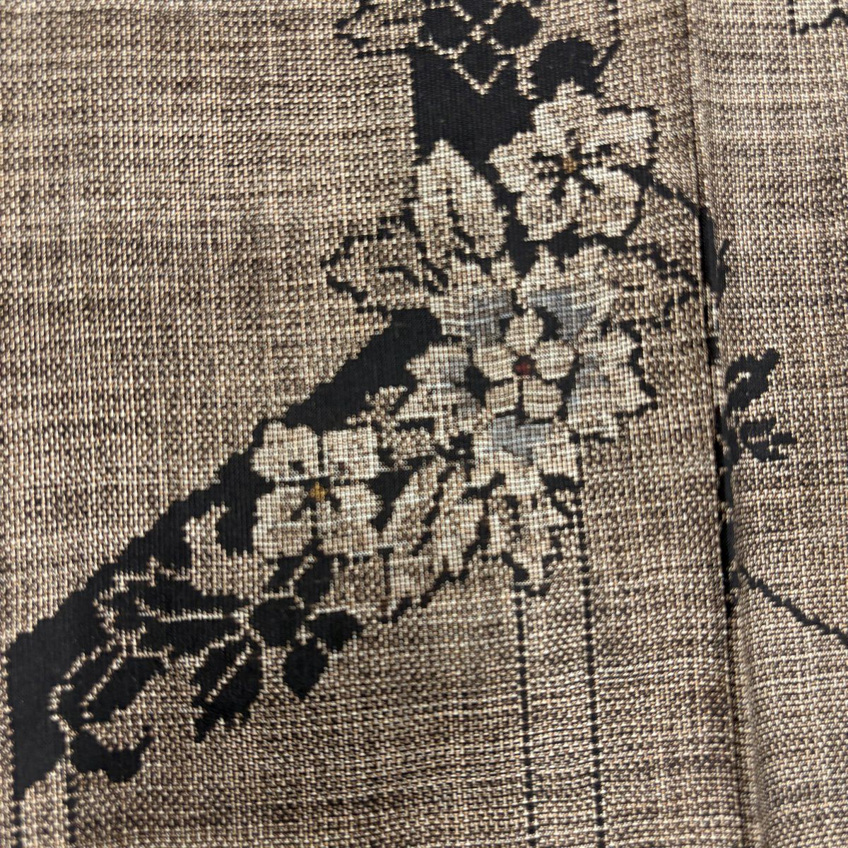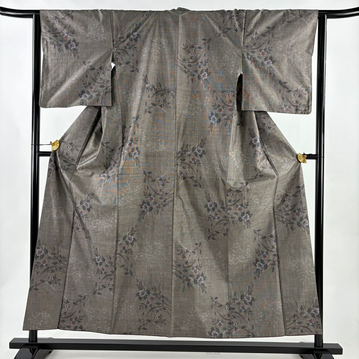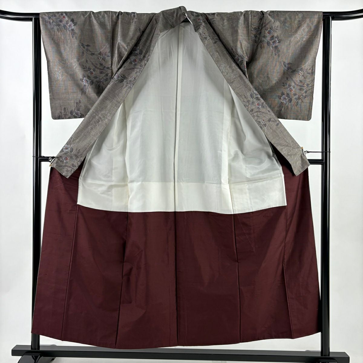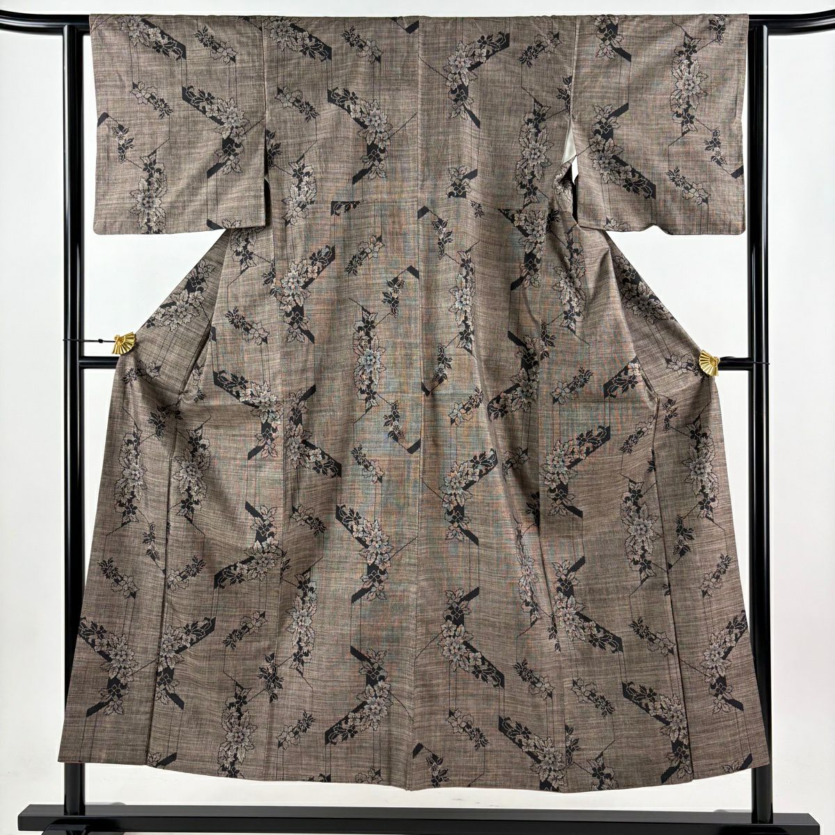 紬 身丈154cm 裄丈63cm S 袷 枝花 焦茶色 正絹 秀品