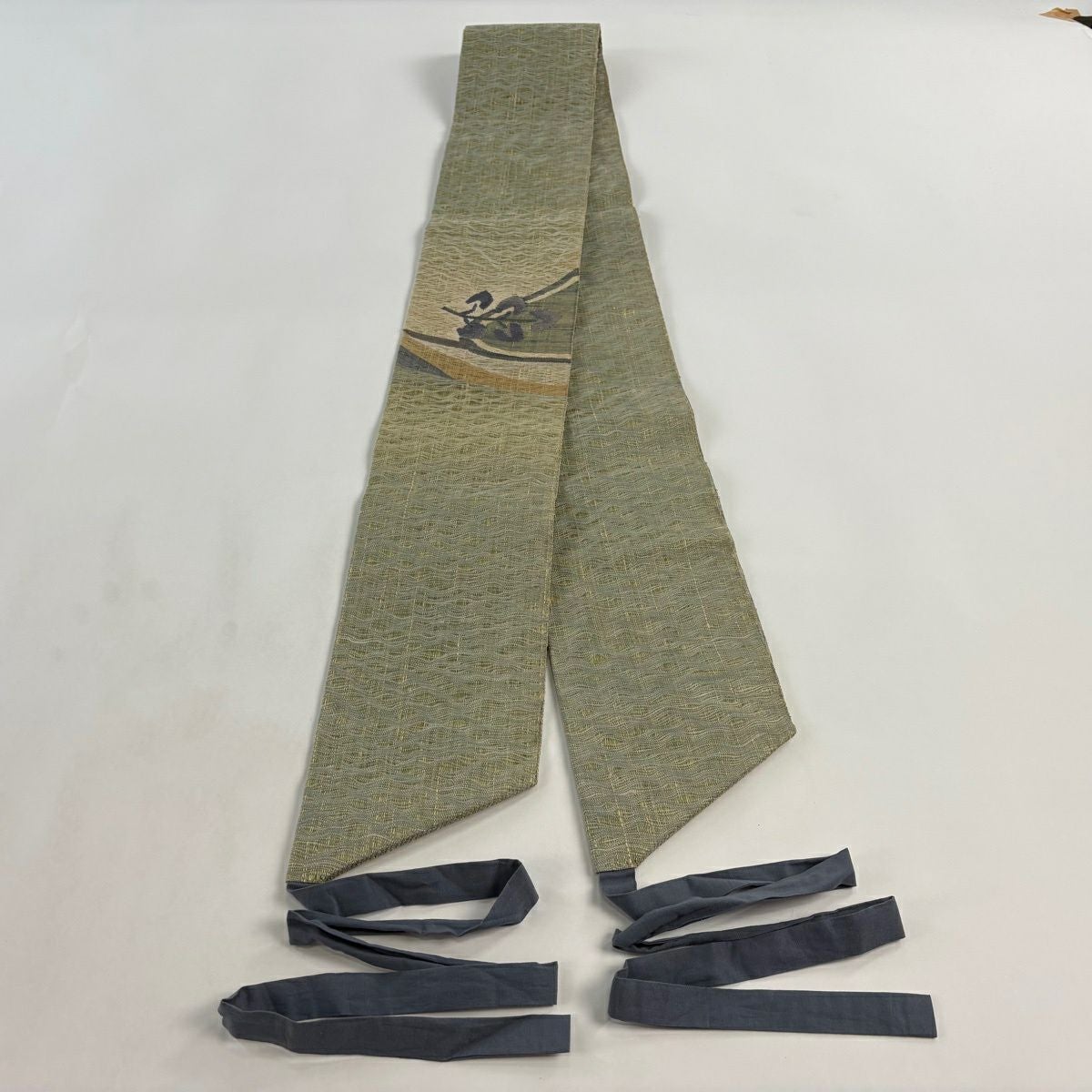 【美品】付け帯 秀品 作り帯 葉柄 幾何学模様 金糸 灰緑 正絹