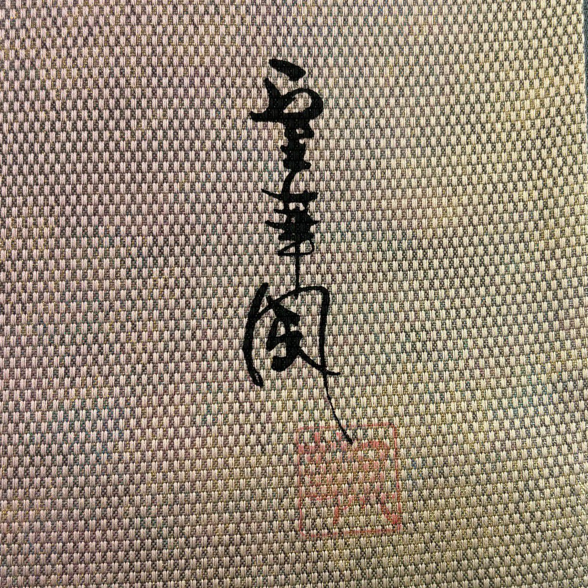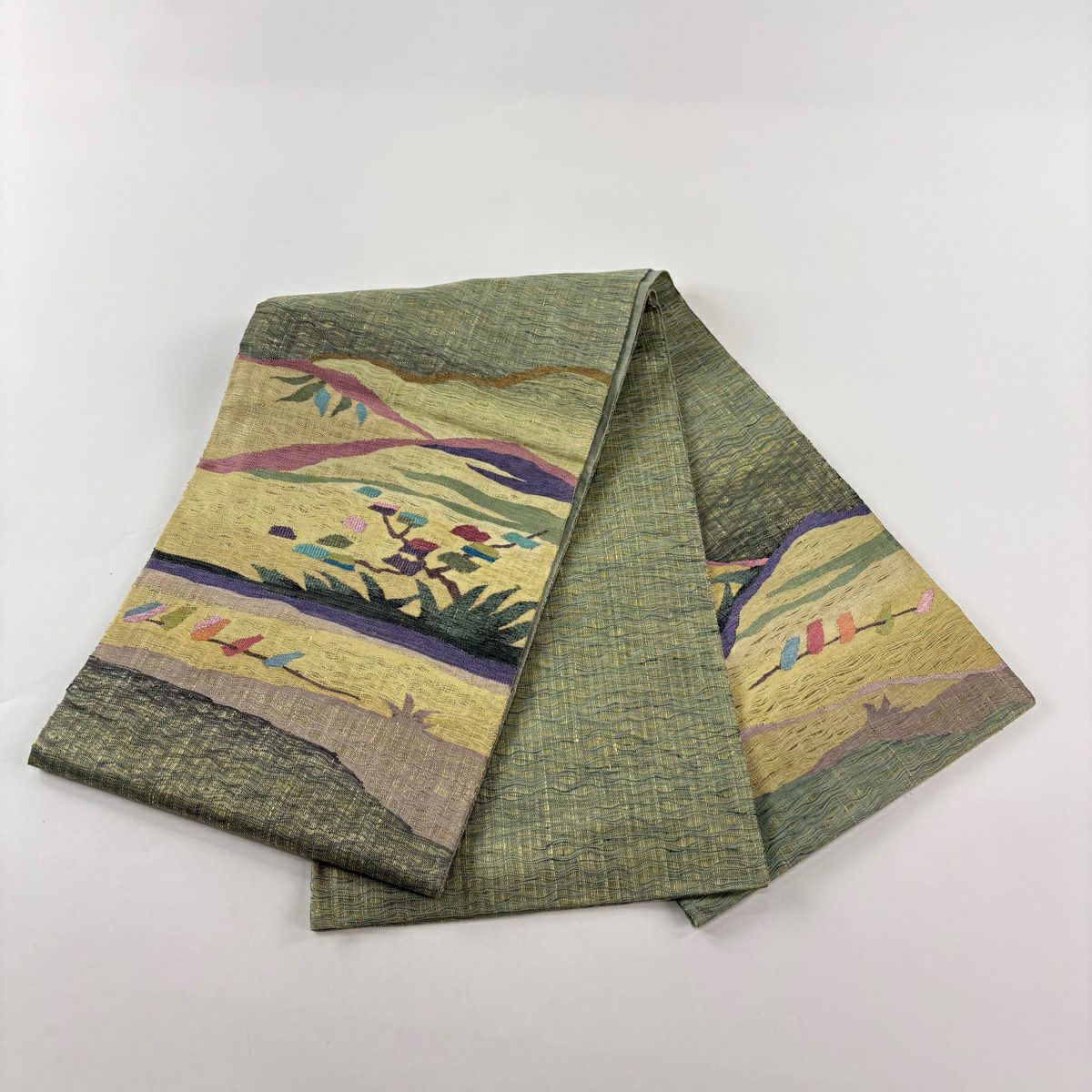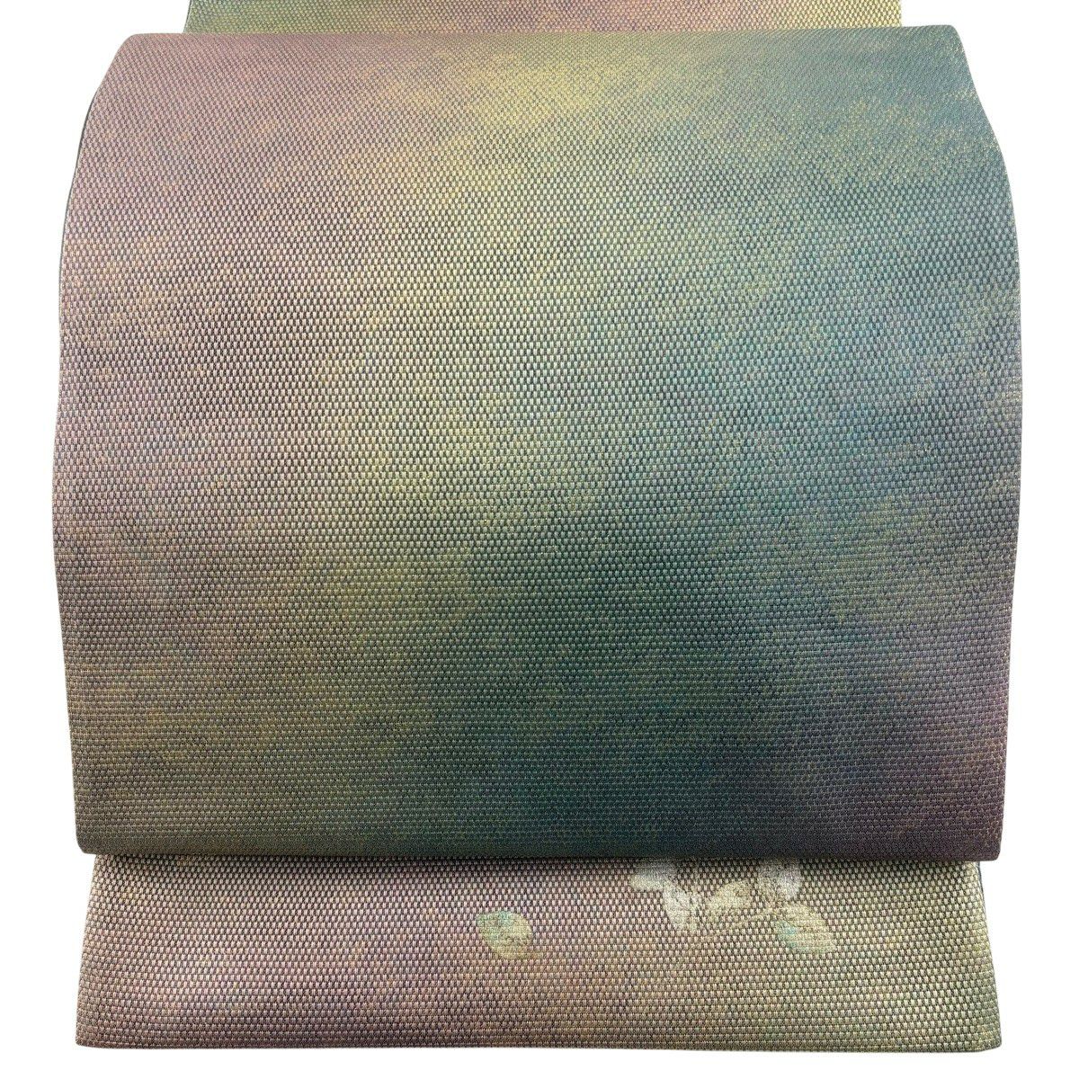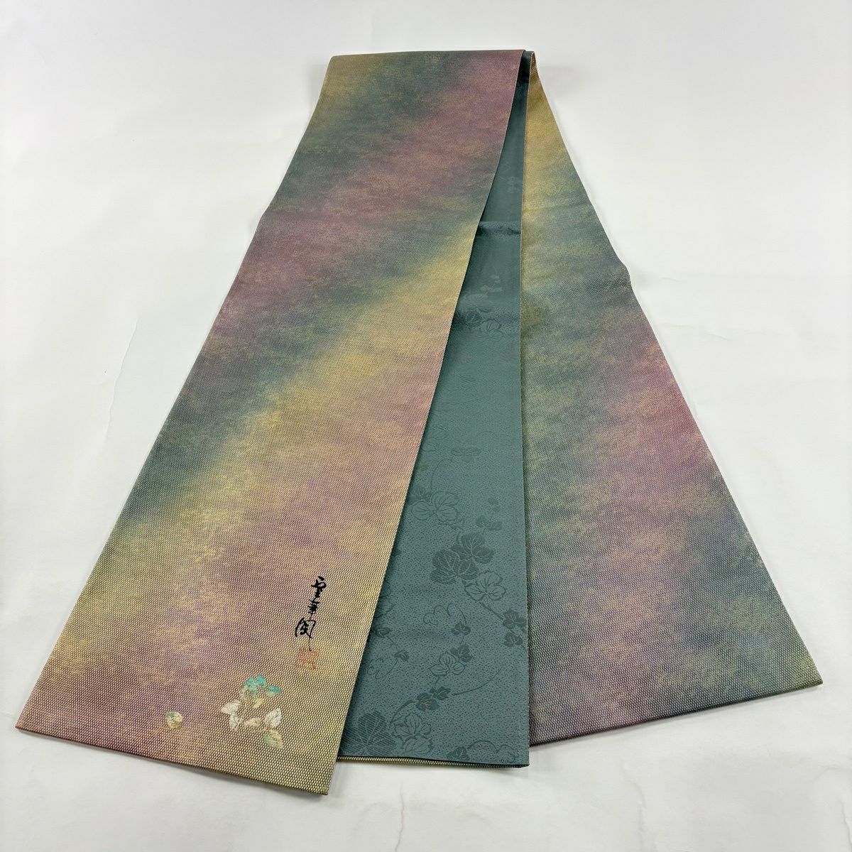 【美品】 袋帯 秀品 室華風 落款あり 霞 箔 灰緑 全通 正絹