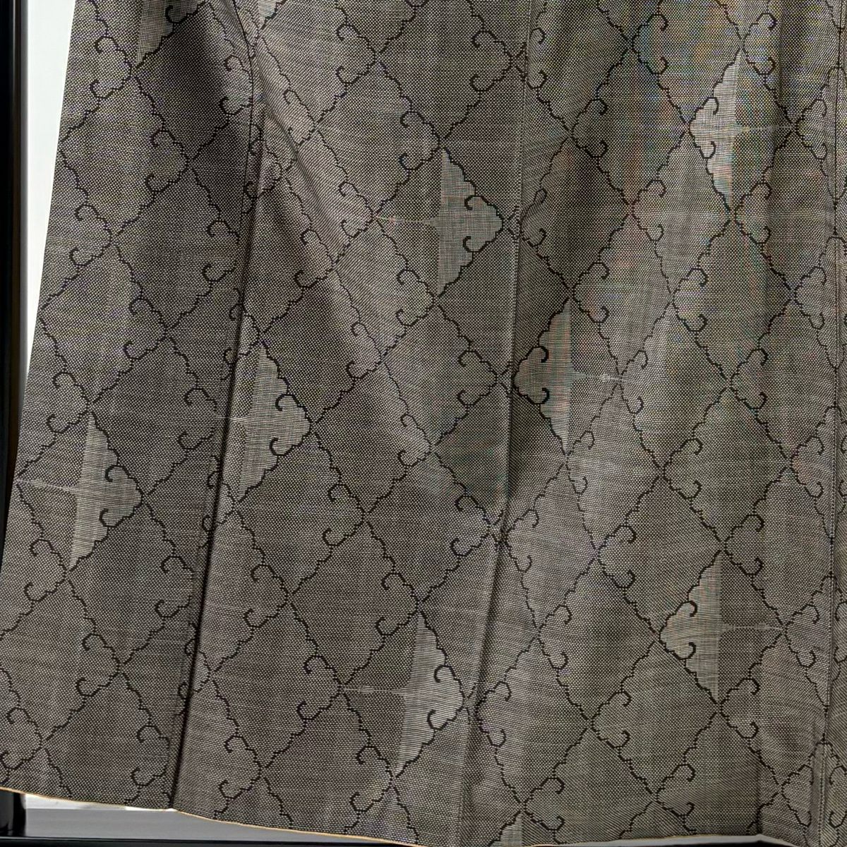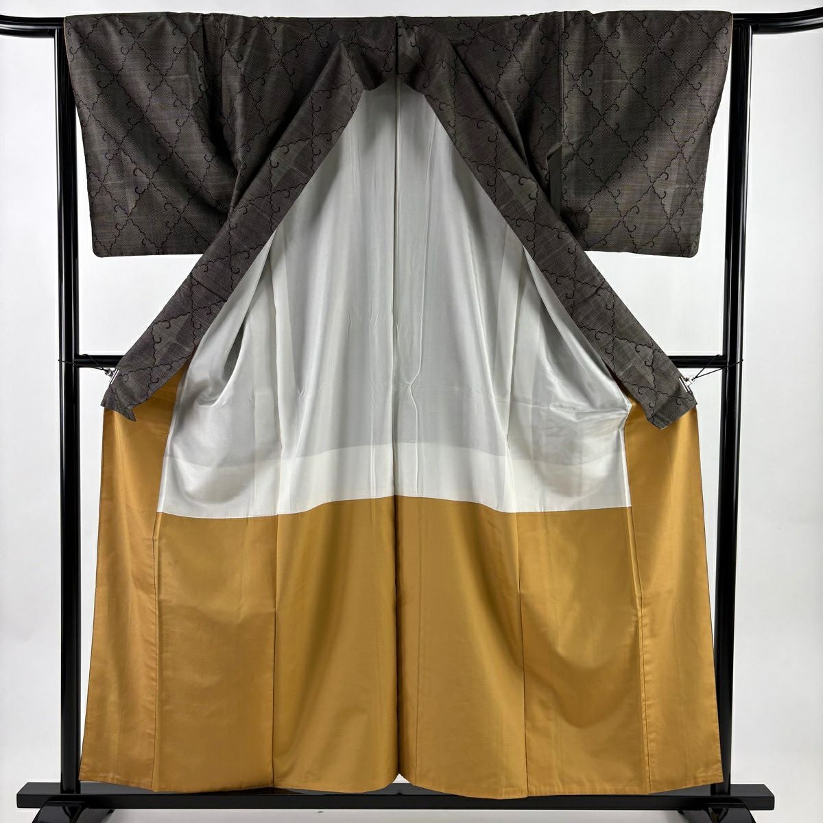 紬 身丈159cm 裄丈64cm M 袷 幾何学 黒灰 正絹 秀品