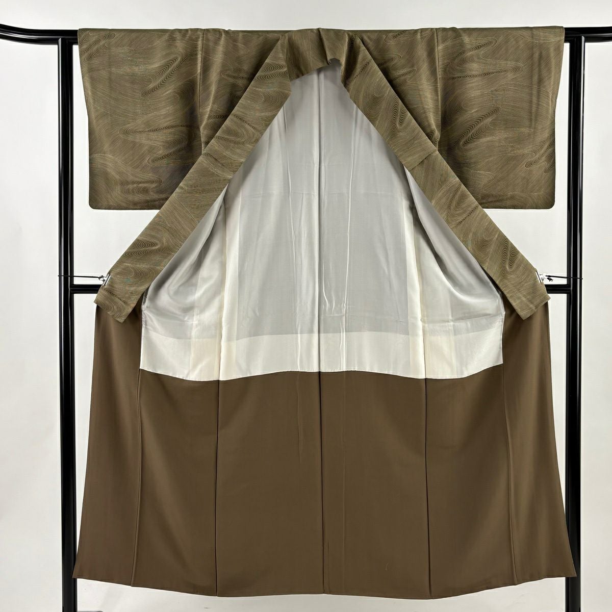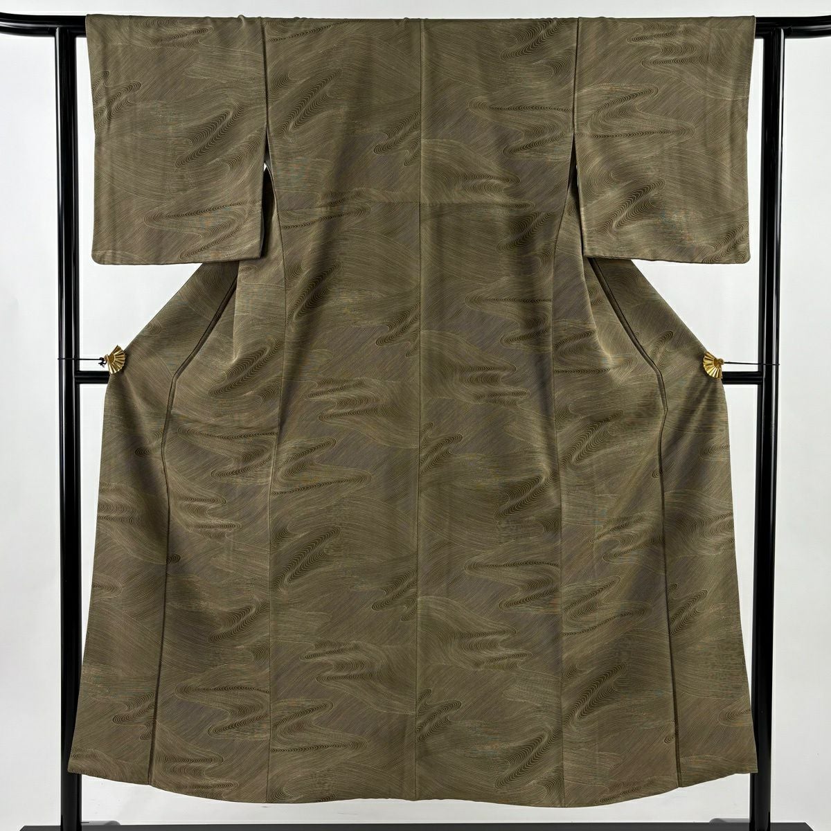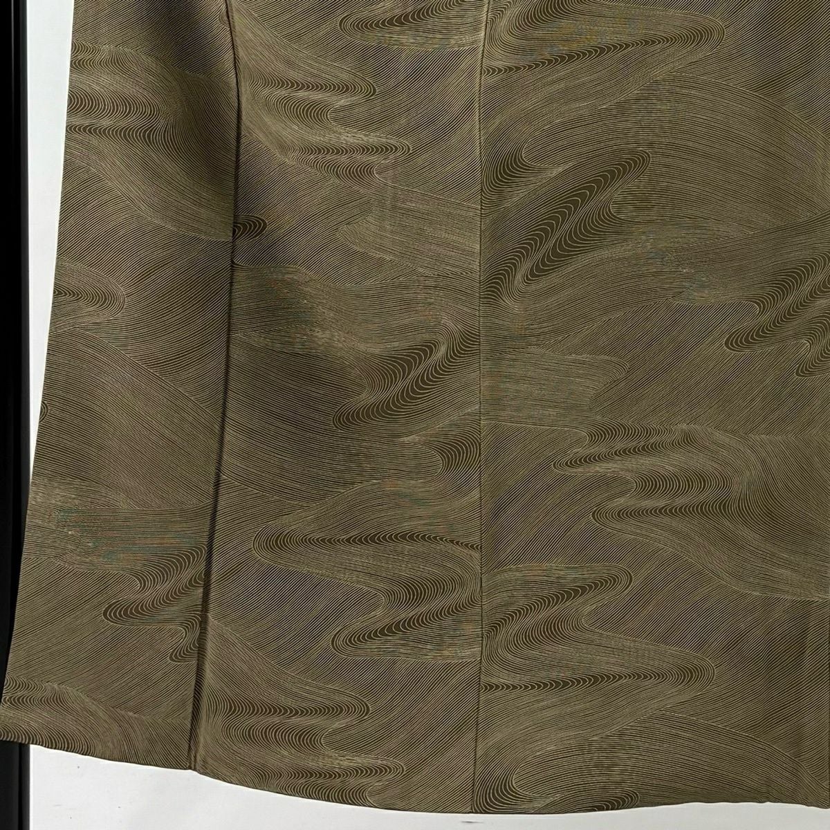 小紋 身丈150cm 裄丈62cm S 袷 波 茶緑色 正絹 秀品