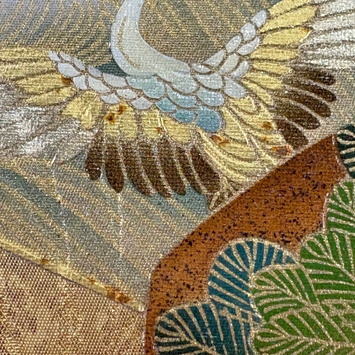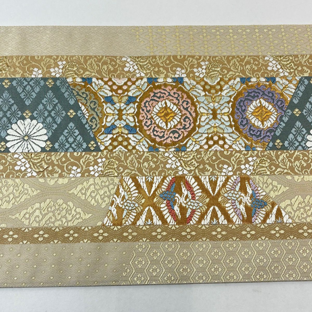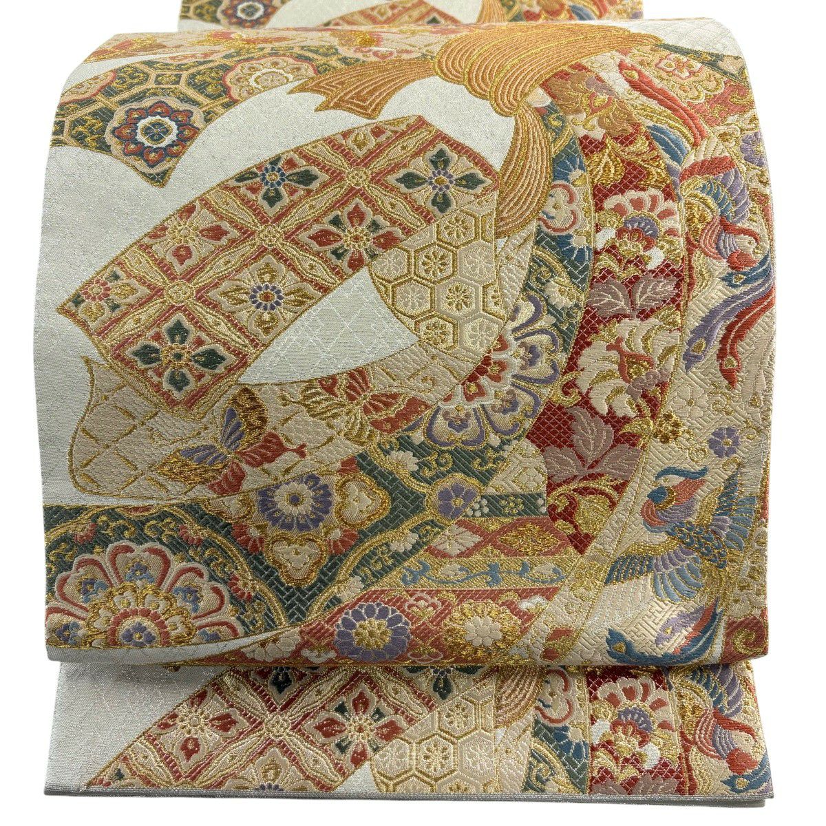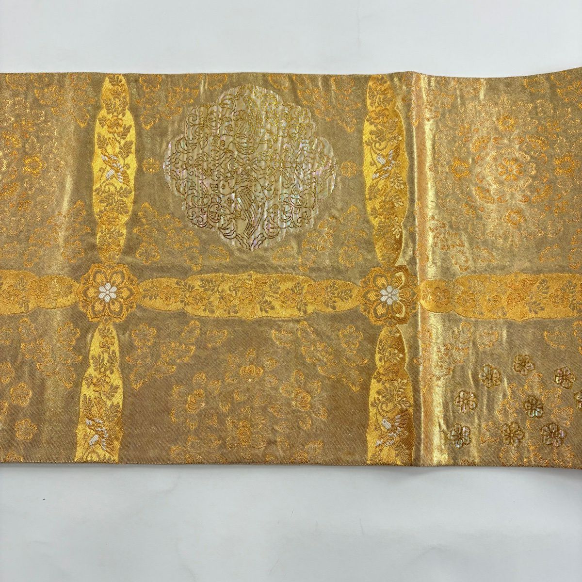 【美品】 袋帯 秀品 華文 鶴菱 金糸 ベージュ 六通 正絹