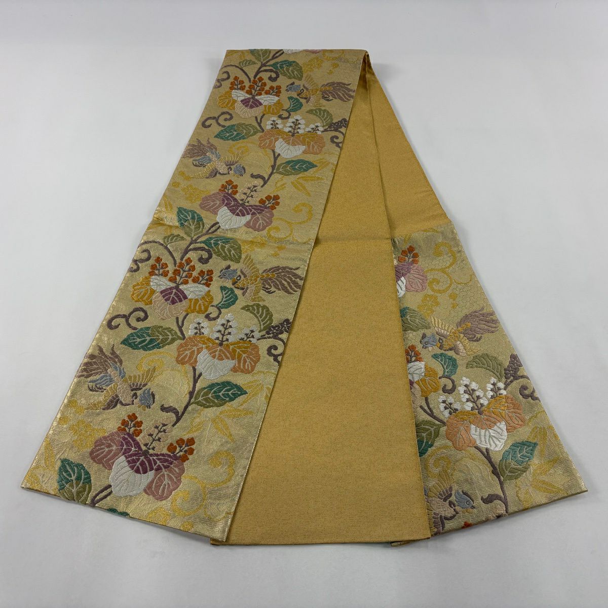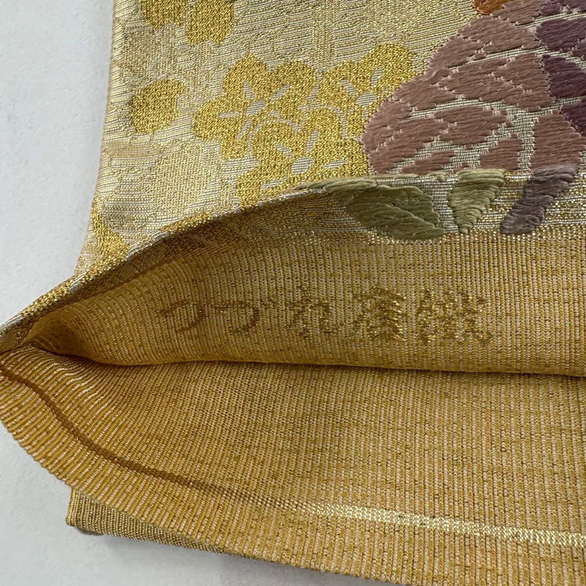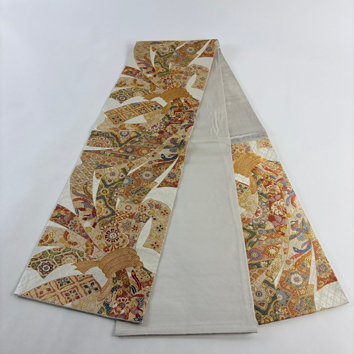 【美品】 袋帯 秀品 束ね熨斗 花鳥 唐織 金糸 金色 六通 正絹