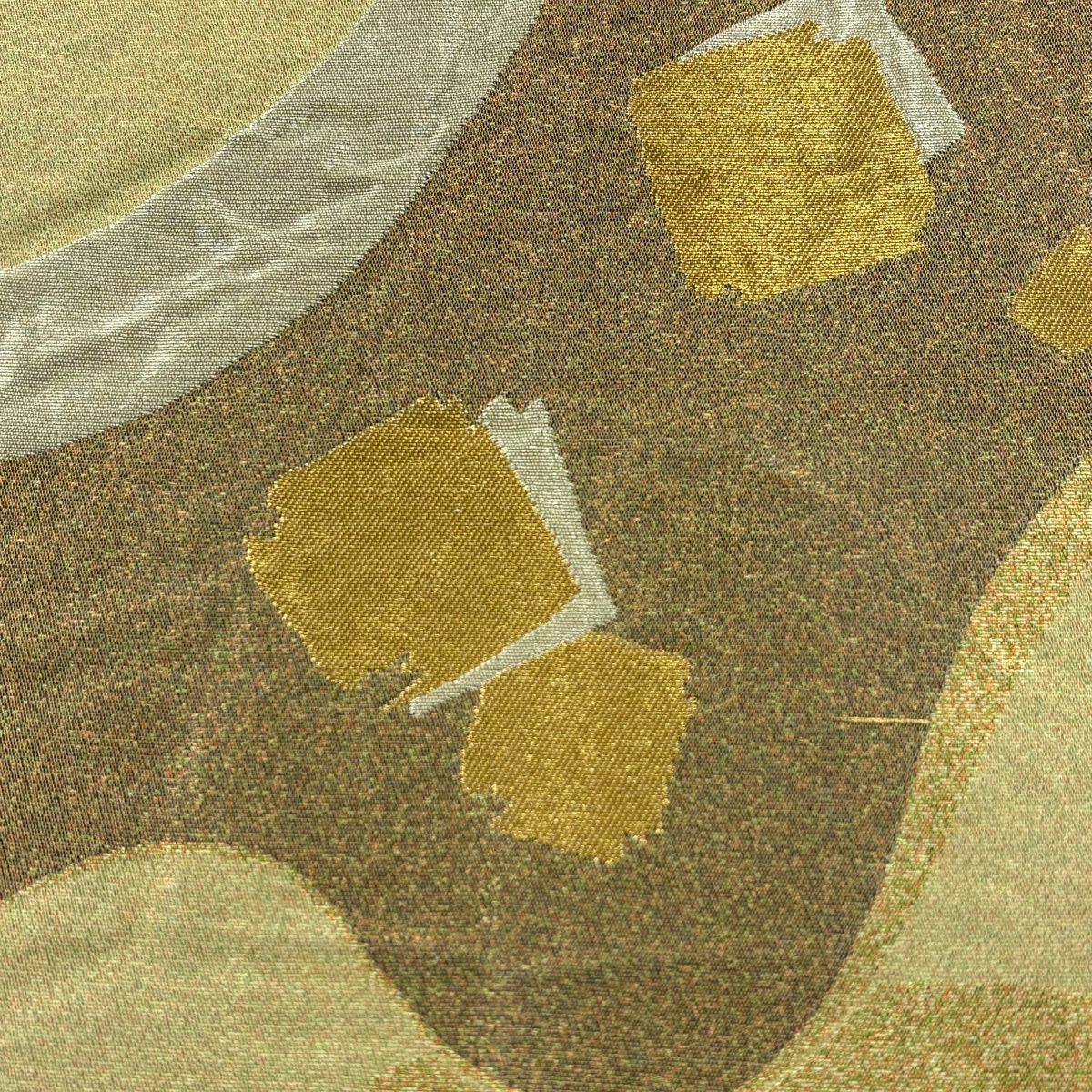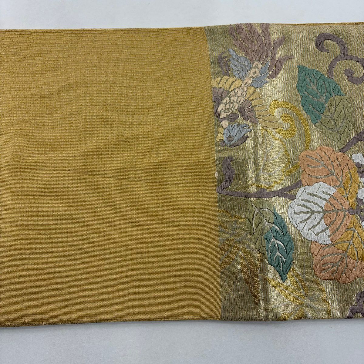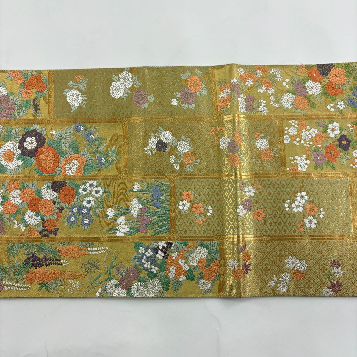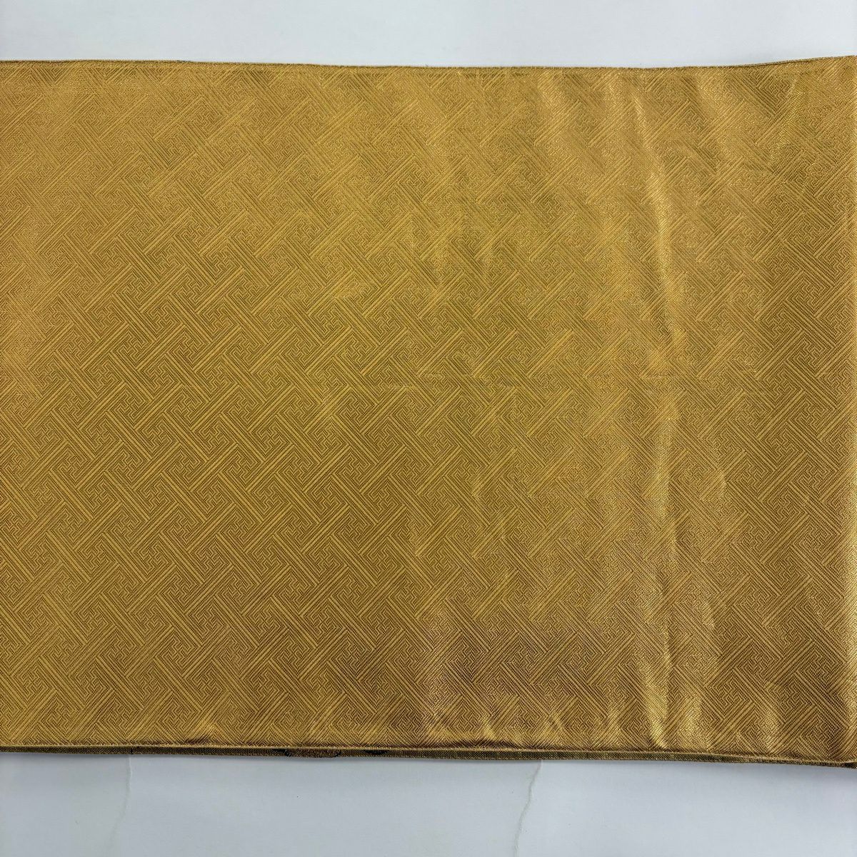 【美品】 袋帯 秀品 蕾 幾何学模様 箔 黄土色 お太鼓柄 正絹