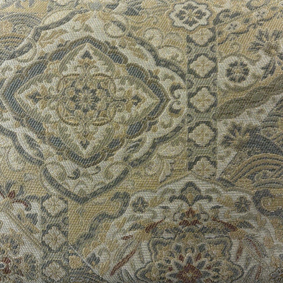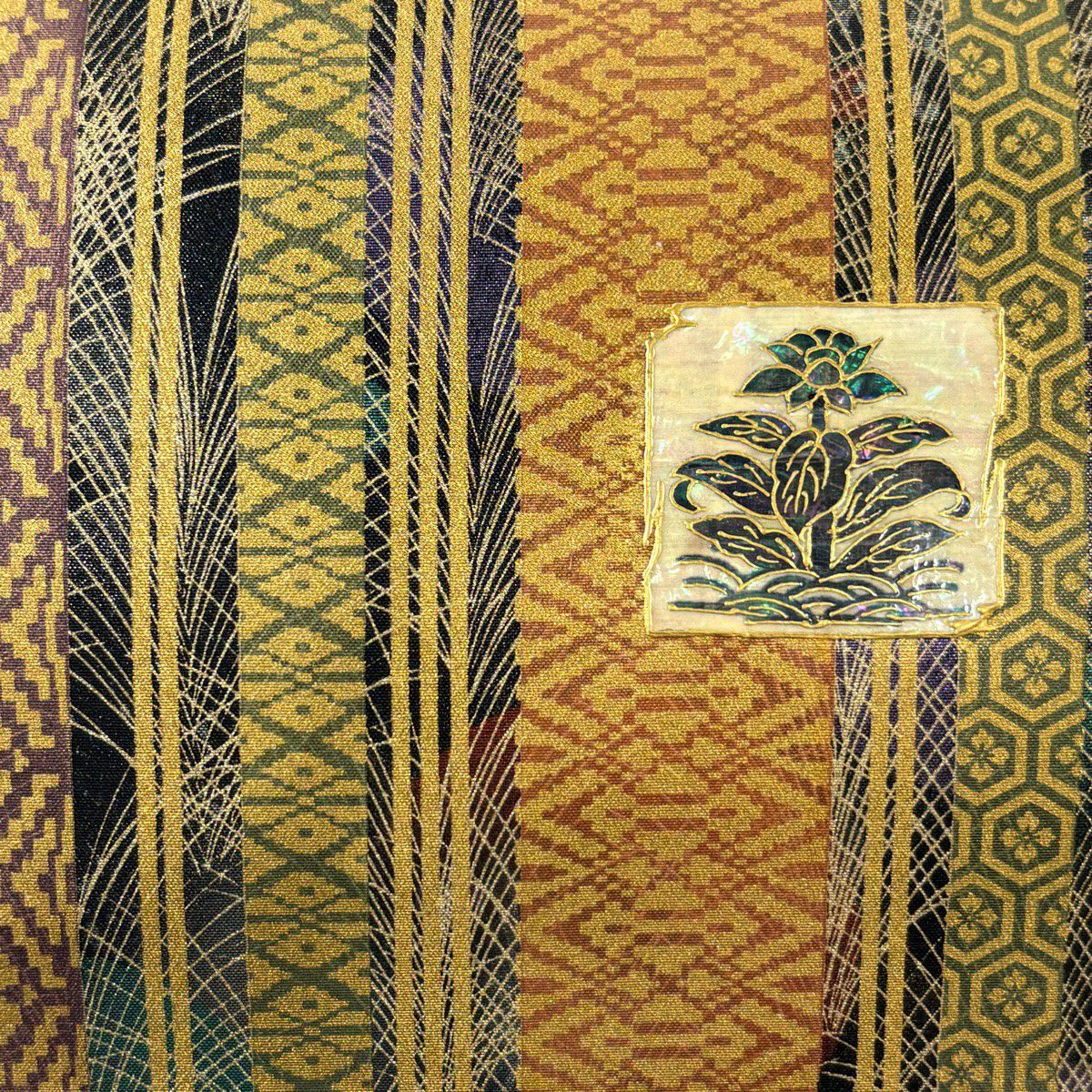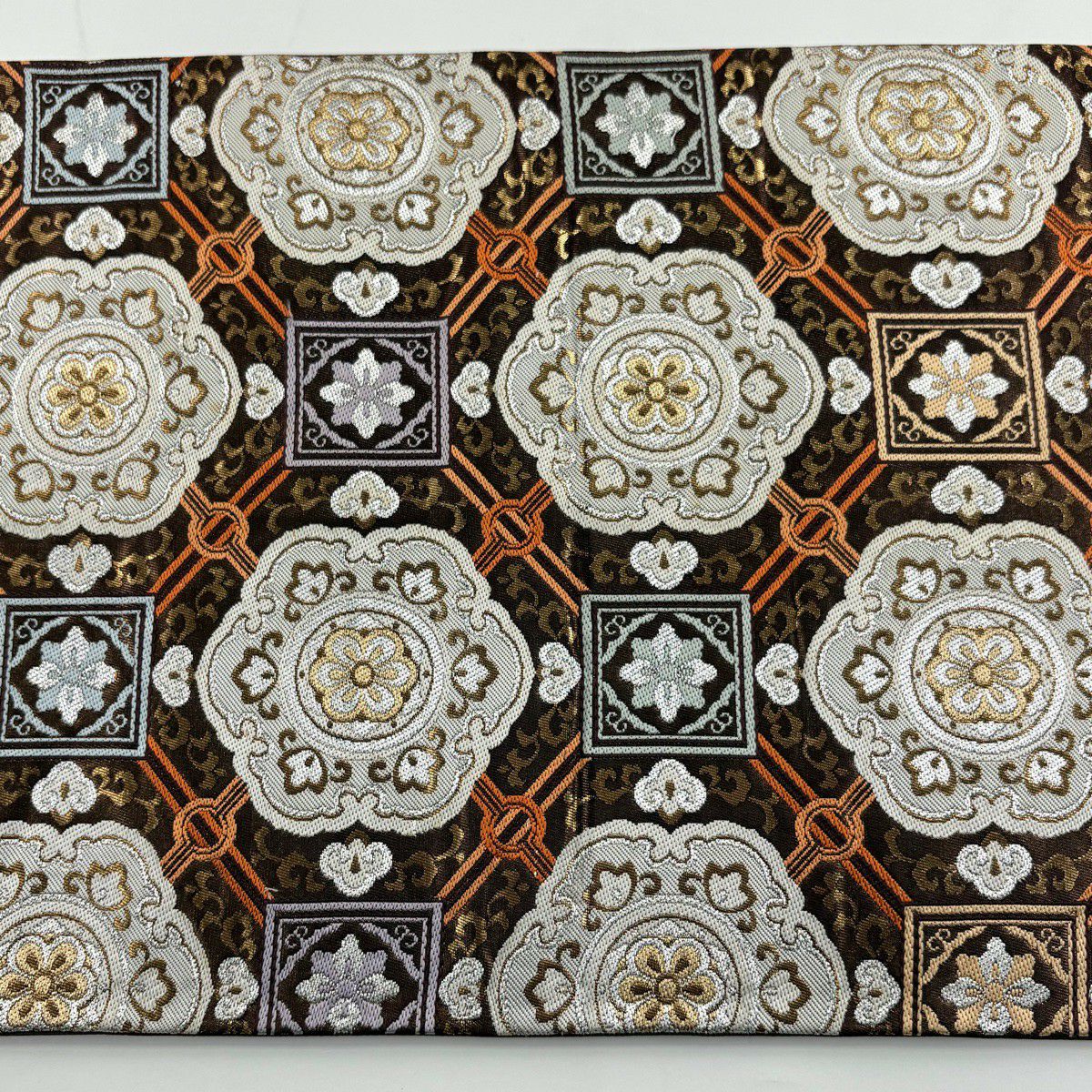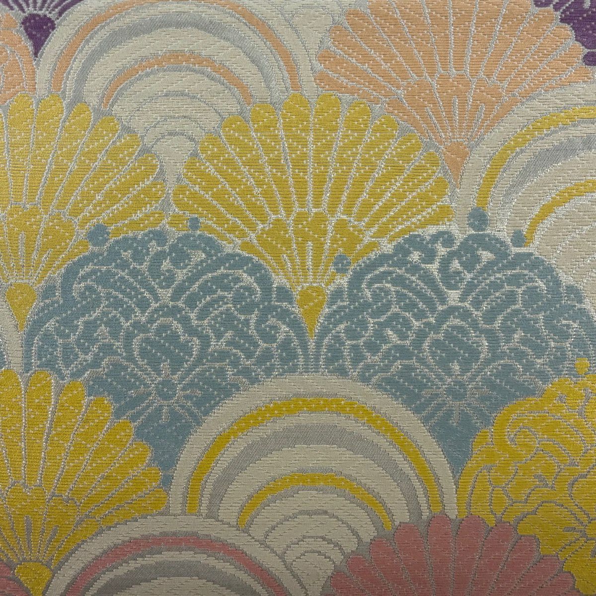 【美品】 袋帯 秀品 蕾 幾何学模様 箔 黄土色 お太鼓柄 正絹
