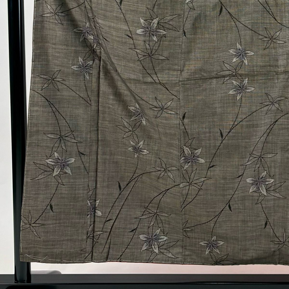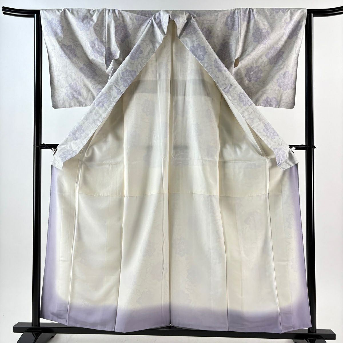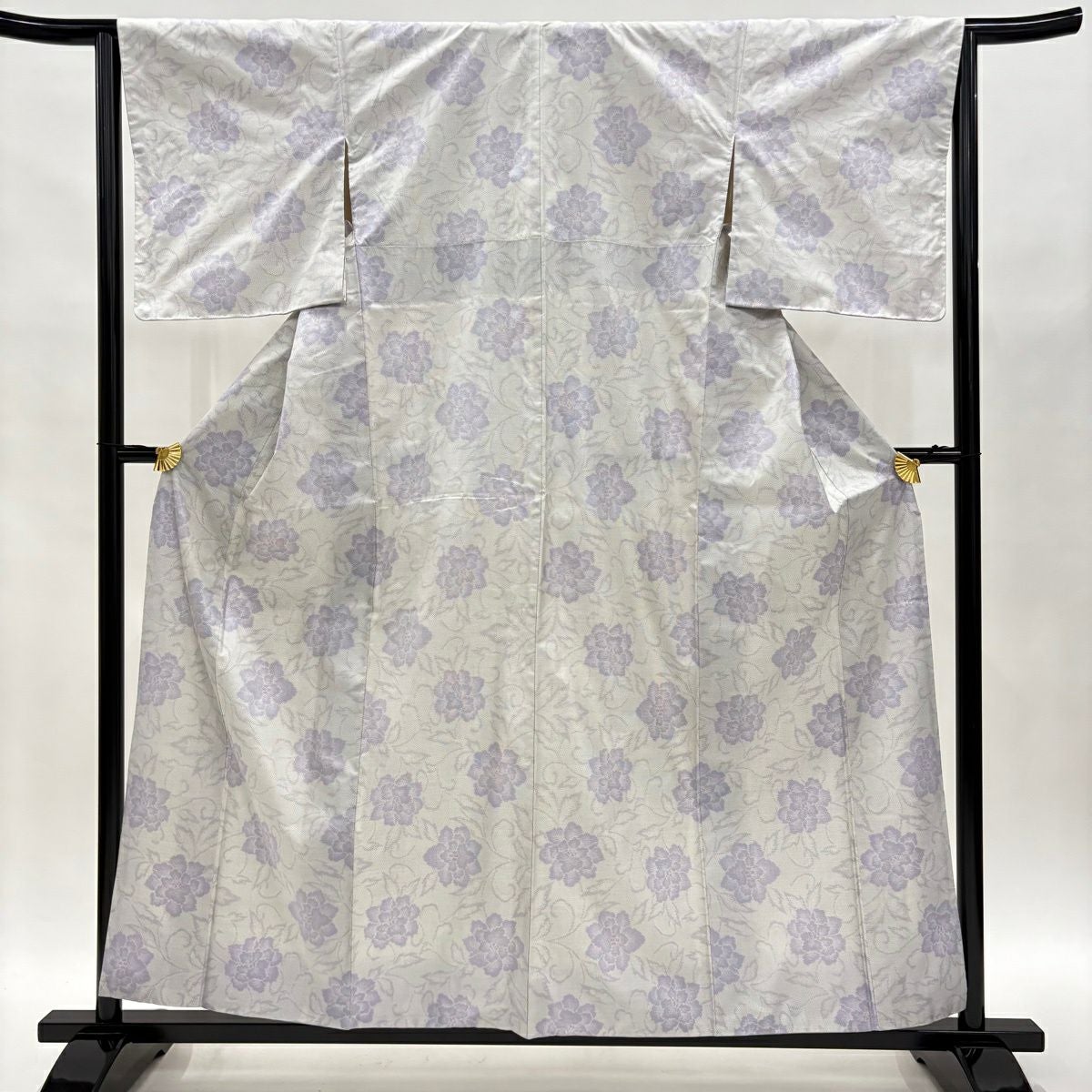 紬 身丈159cm 裄丈64cm M 袷 花唐草 灰紫 正絹 秀品