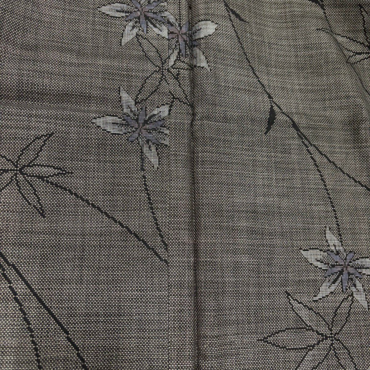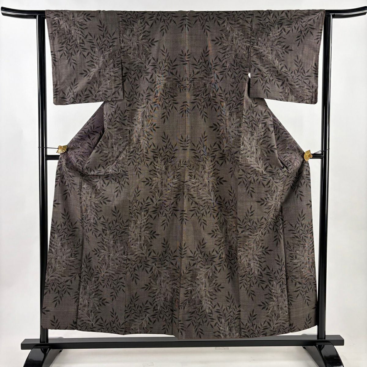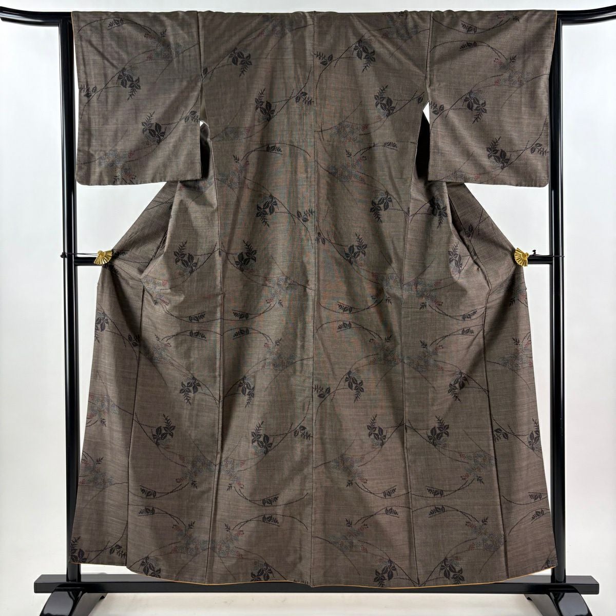 紬 身丈156cm 裄丈68cm L 袷 草花 焦茶色 正絹 秀品