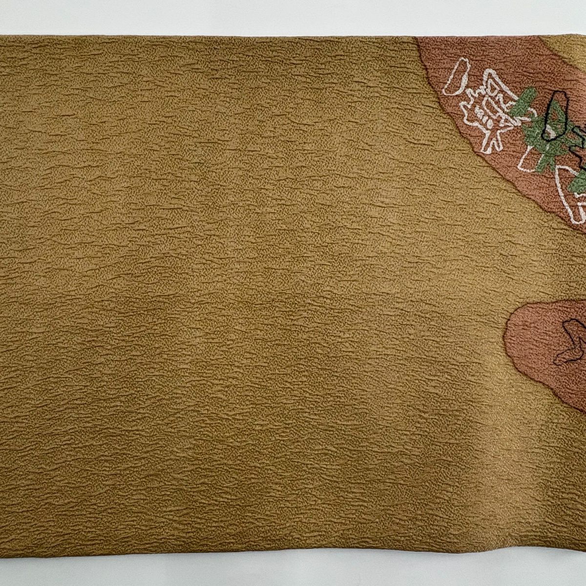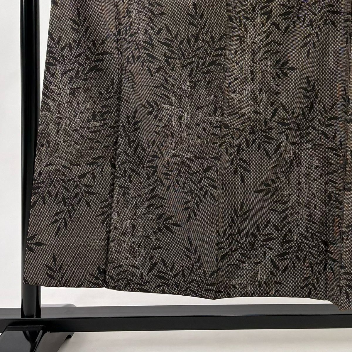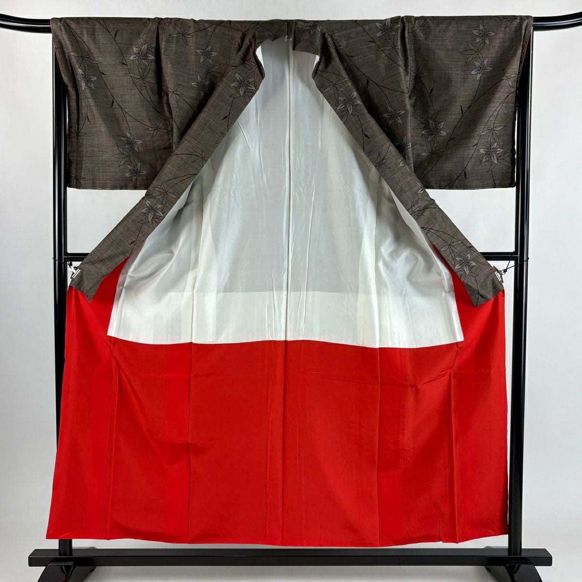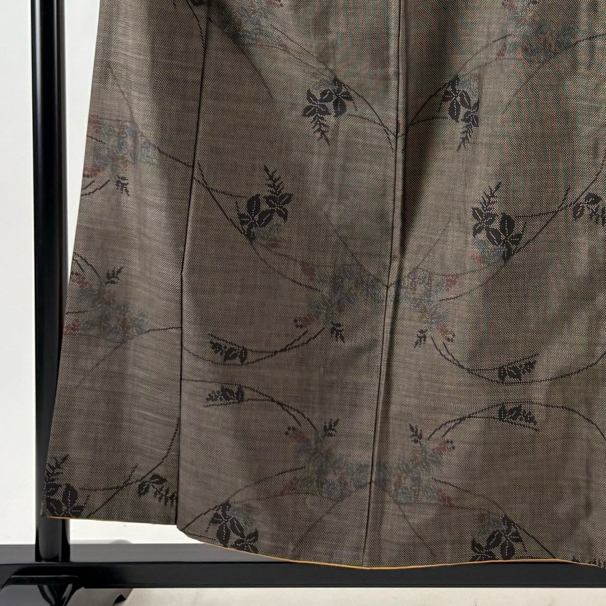 紬 身丈156cm 裄丈68cm L 袷 草花 焦茶色 正絹 秀品