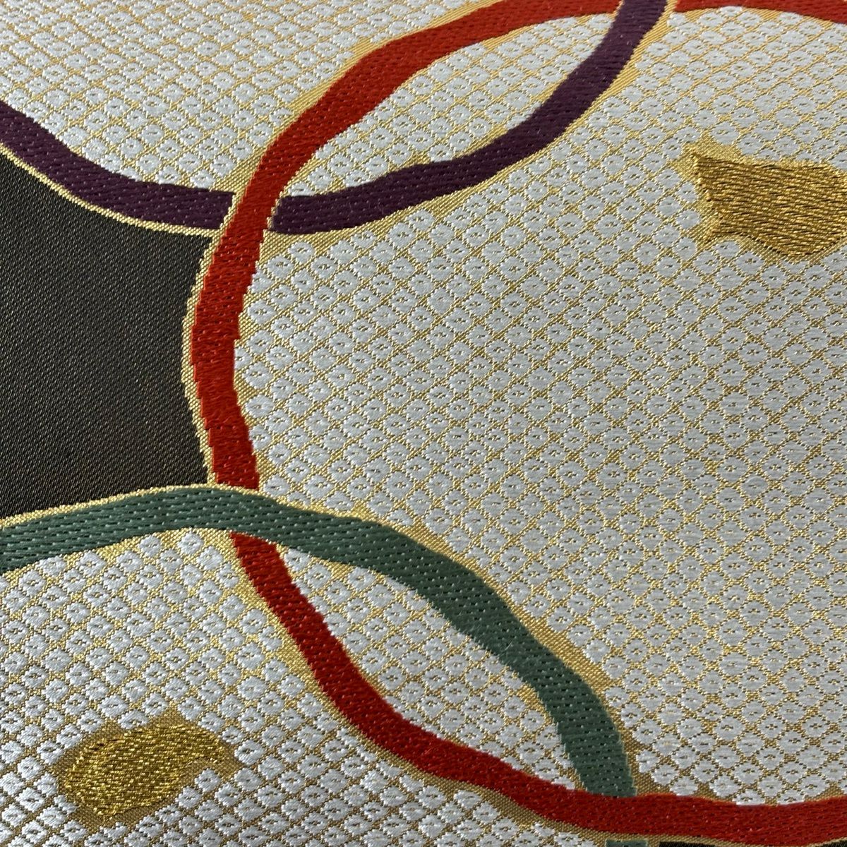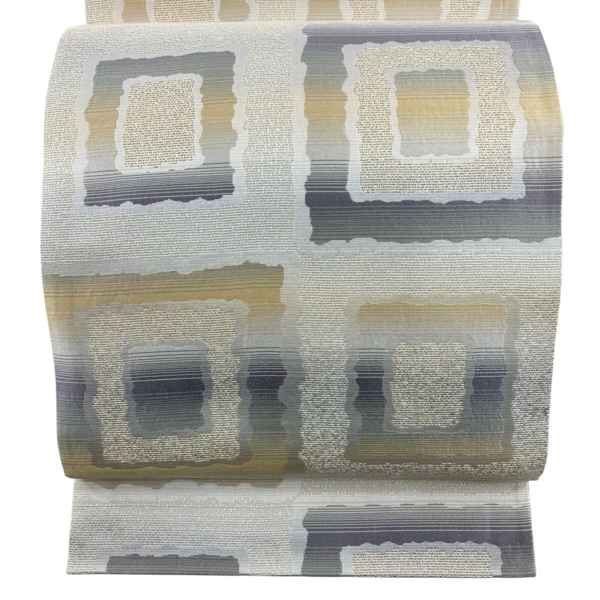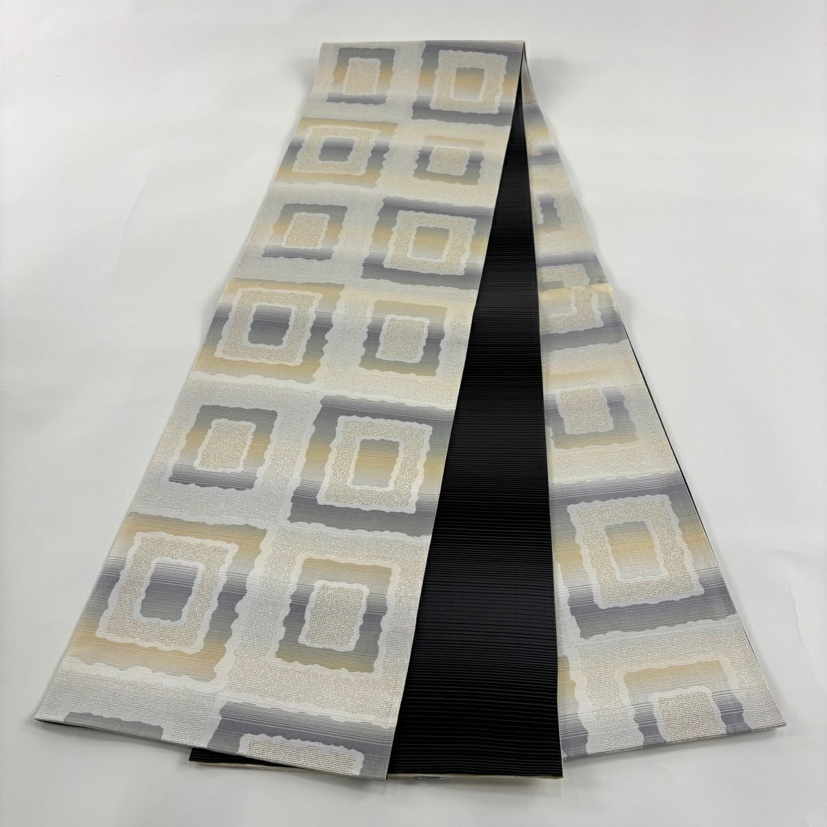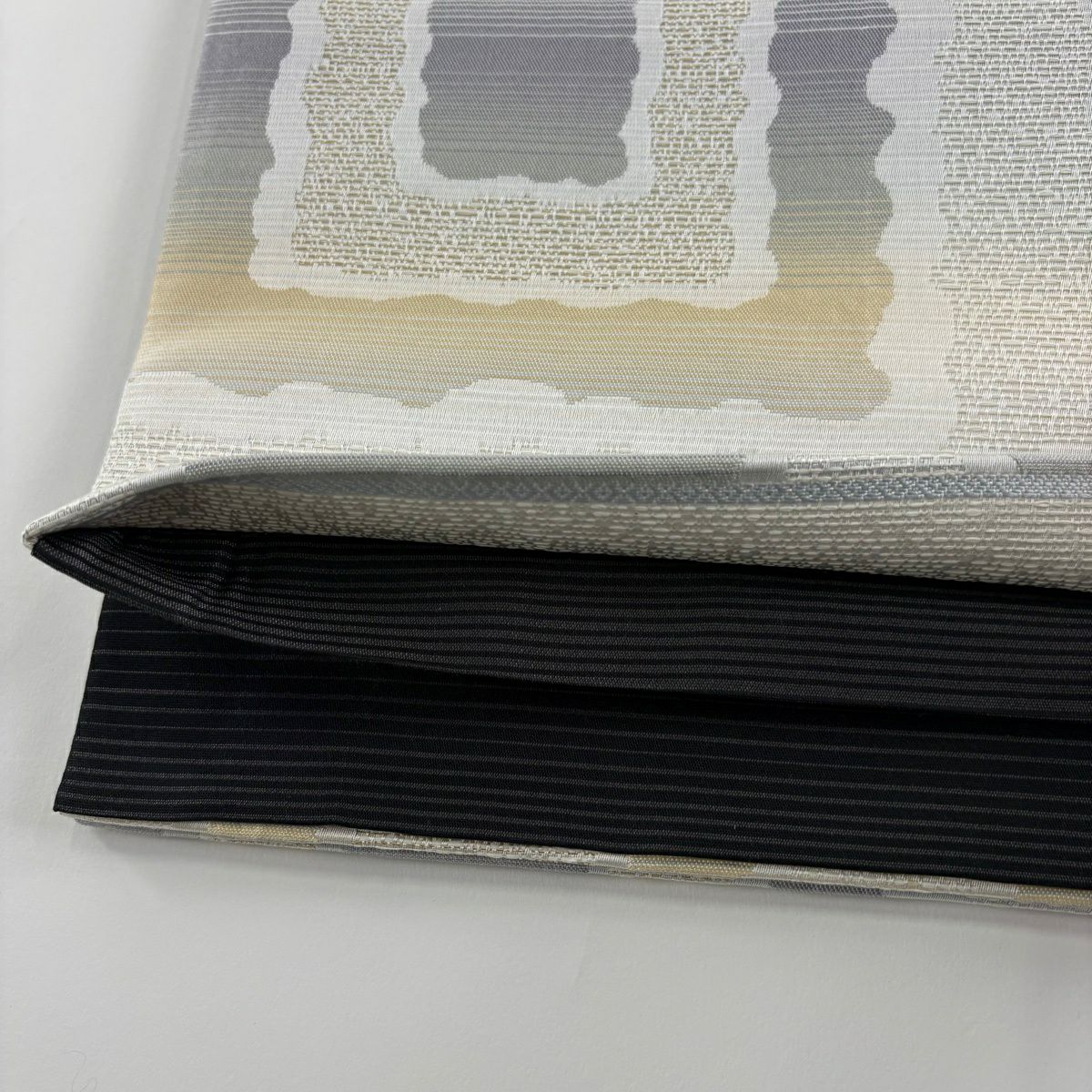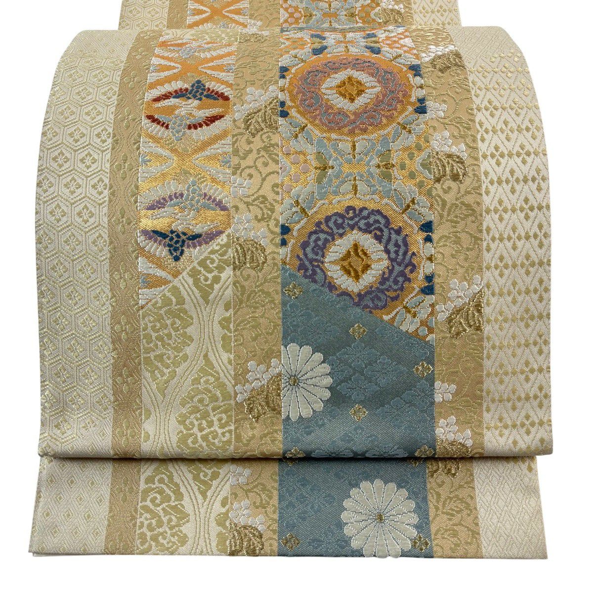 【美品】 袋帯 秀品 幾何学模様 縞 金糸 クリーム 全通 正絹
