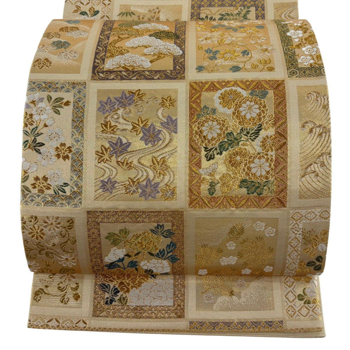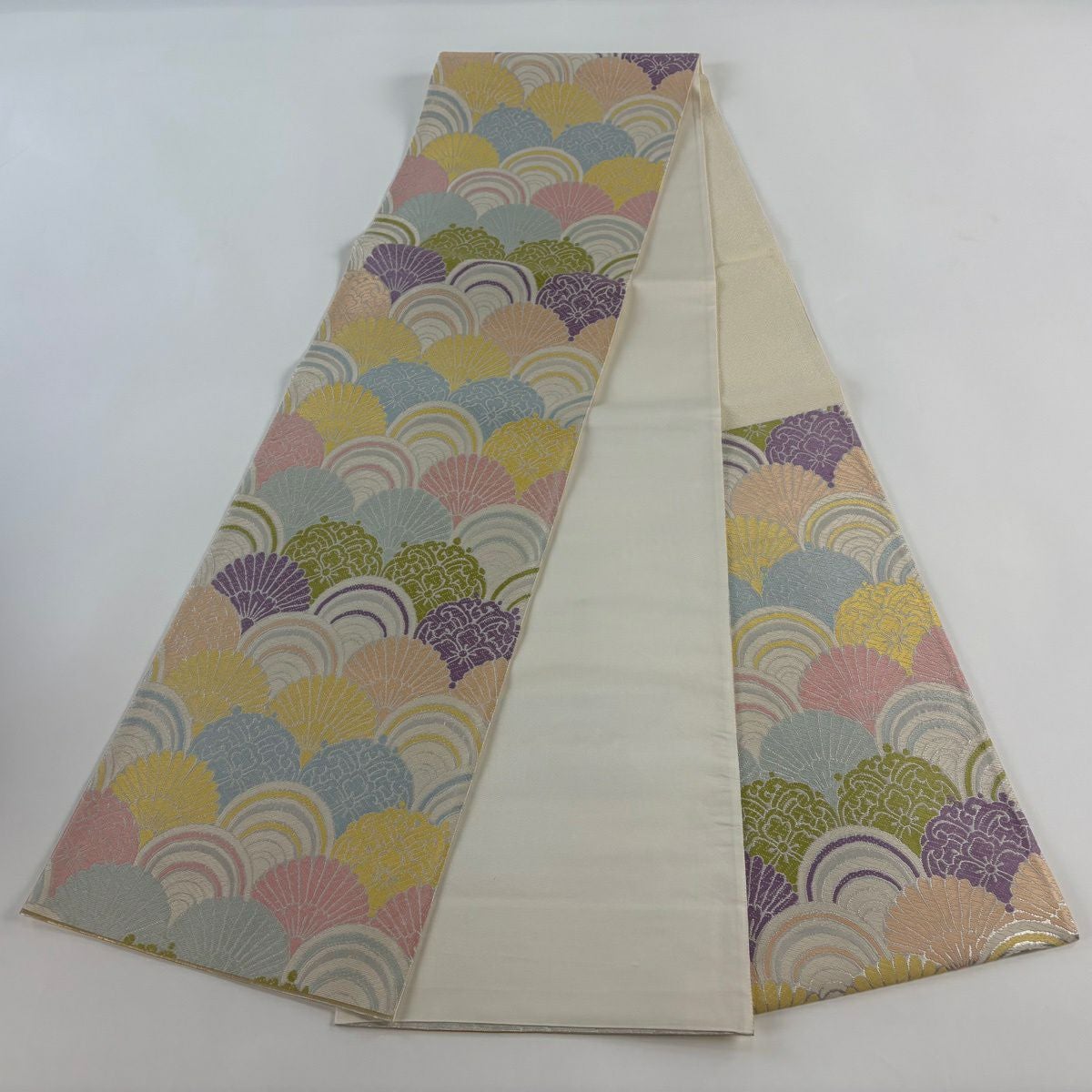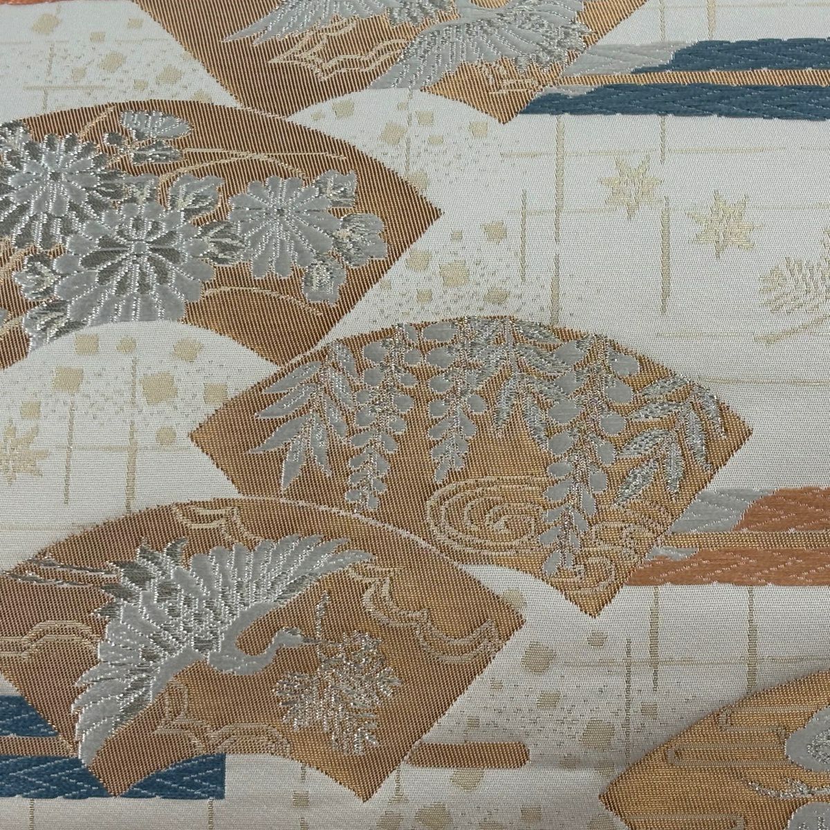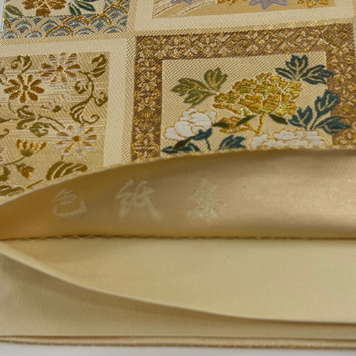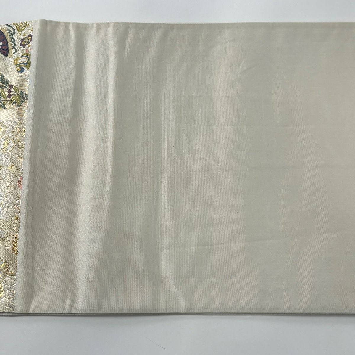 【美品】 袋帯 秀品 青海波 菊 箔 唐織 クリーム 六通 正絹