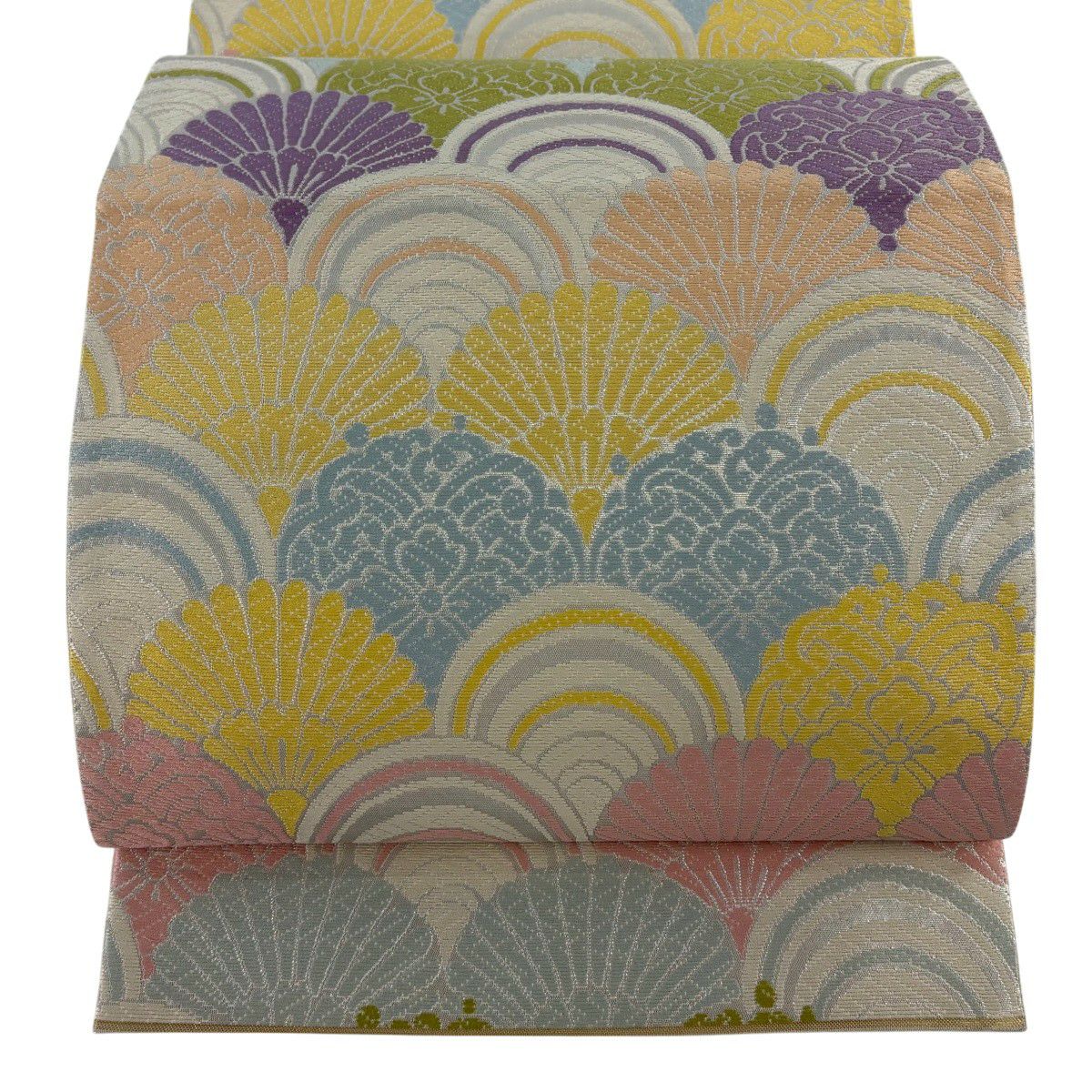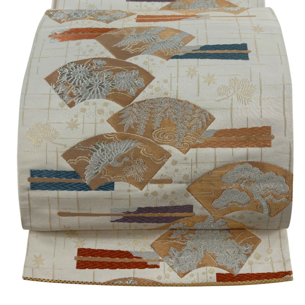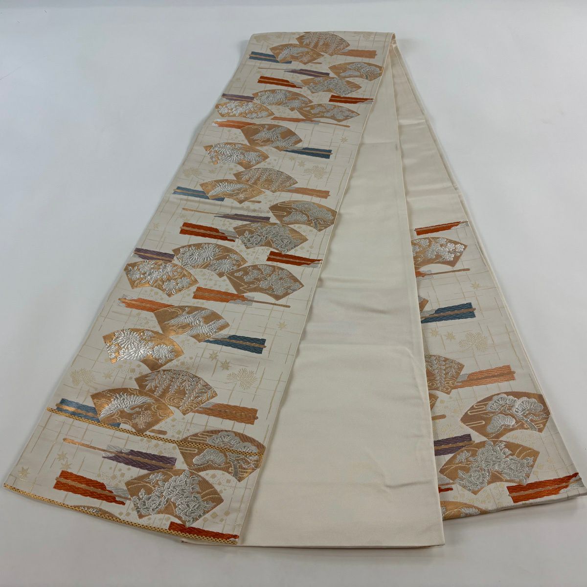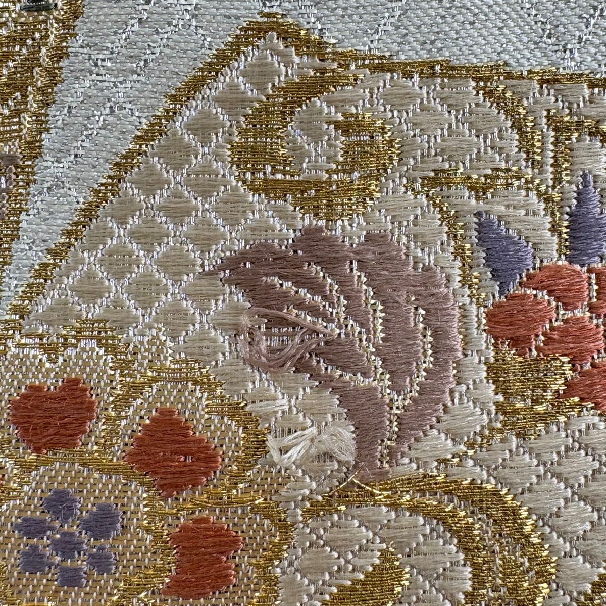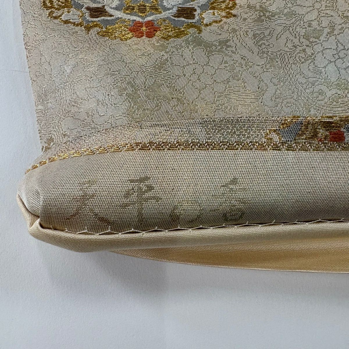 【美品】 袋帯 秀品 青海波 菊 箔 唐織 クリーム 六通 正絹