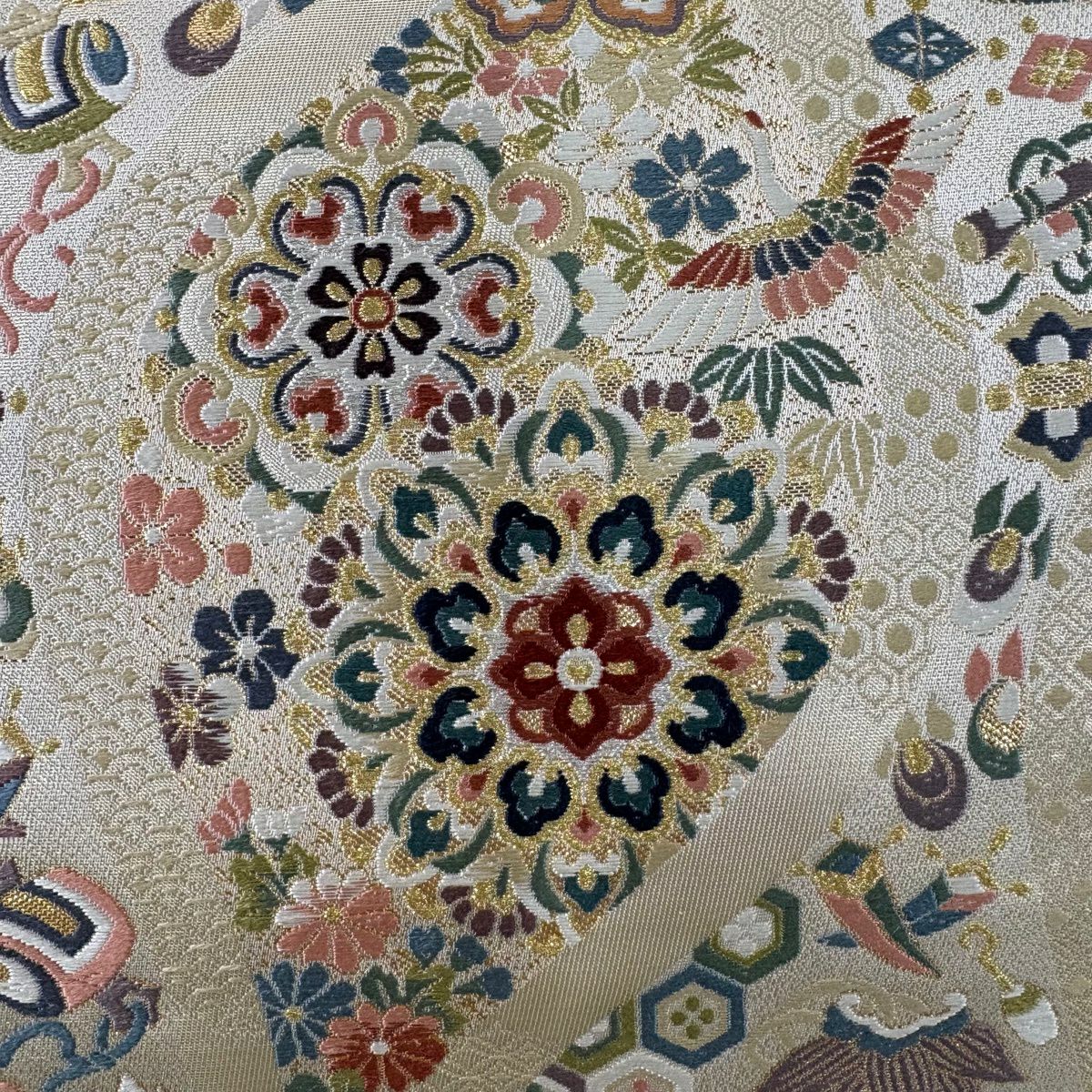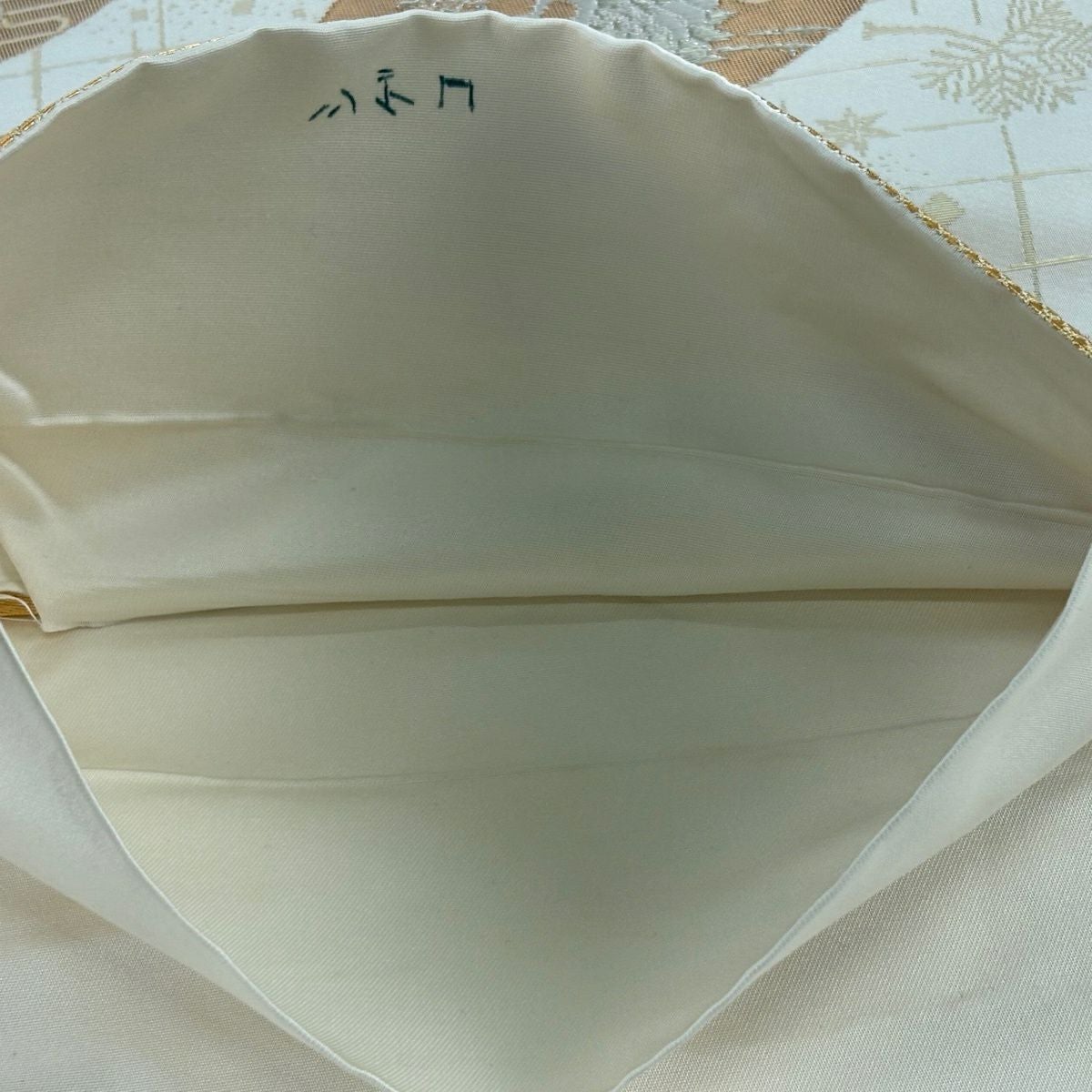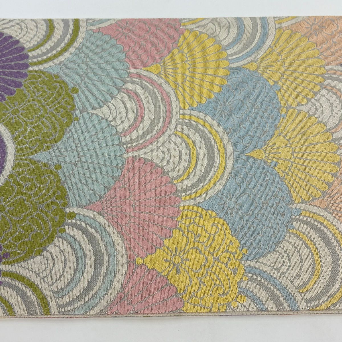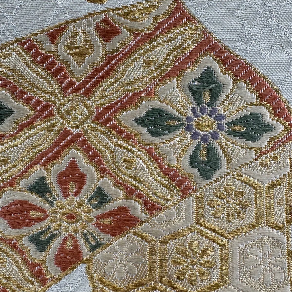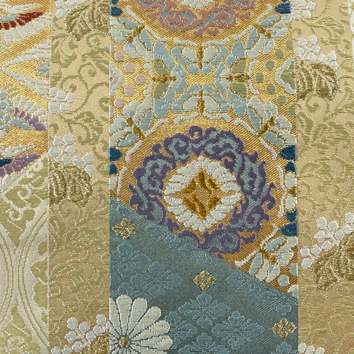 【美品】 袋帯 秀品 青海波 菊 箔 唐織 クリーム 六通 正絹