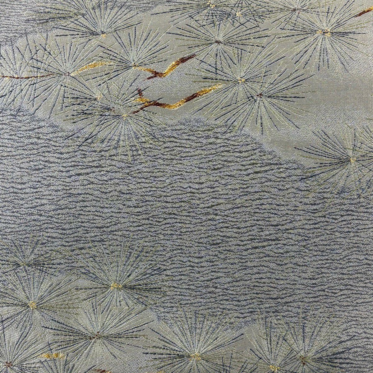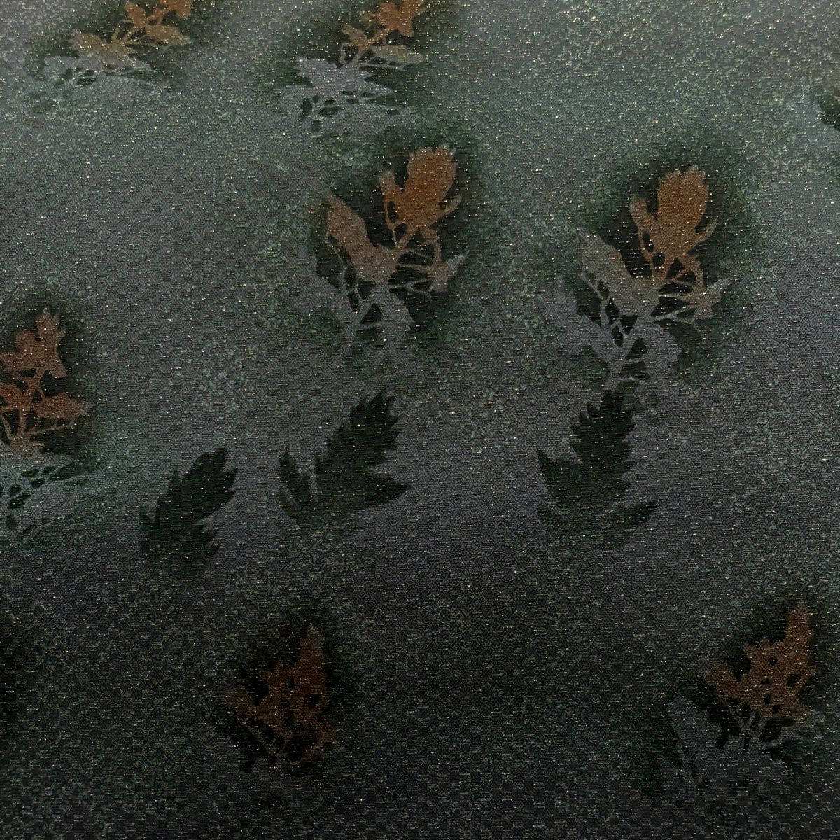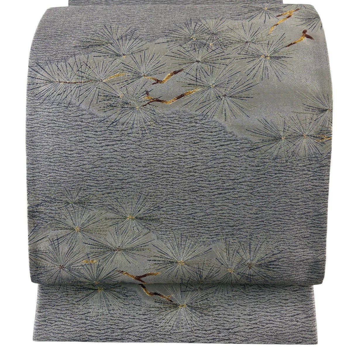 袋帯 秀品 落款あり 葉柄 シルエット 箔 灰緑 お太鼓柄 正絹