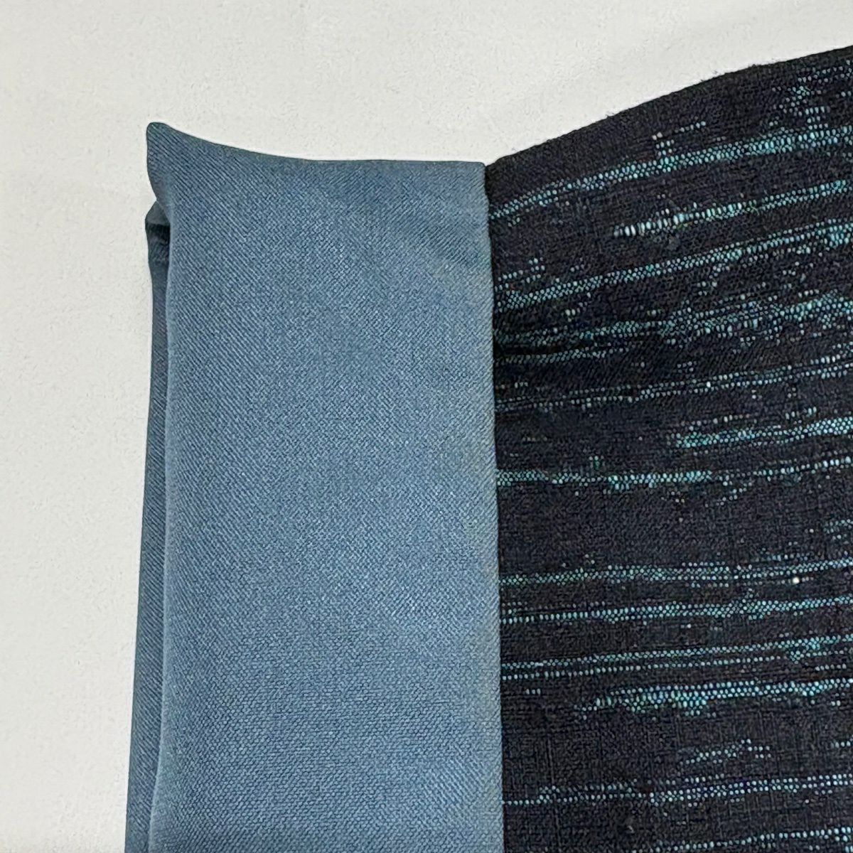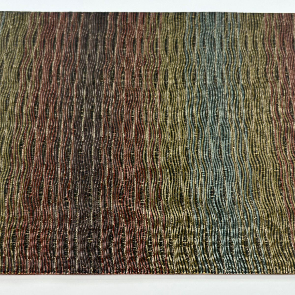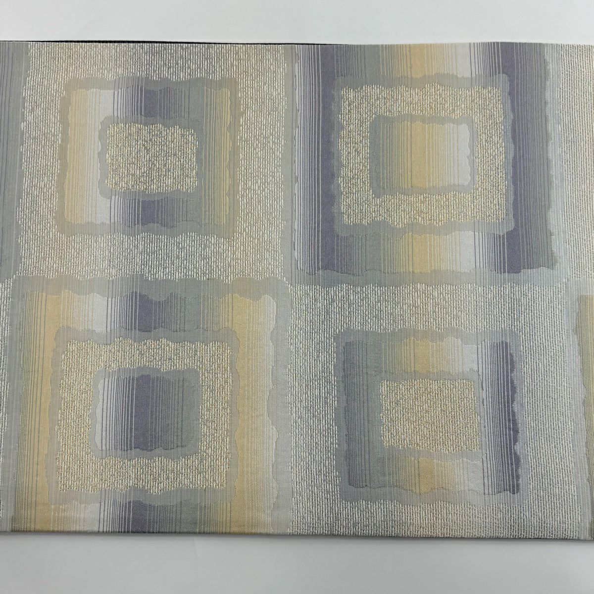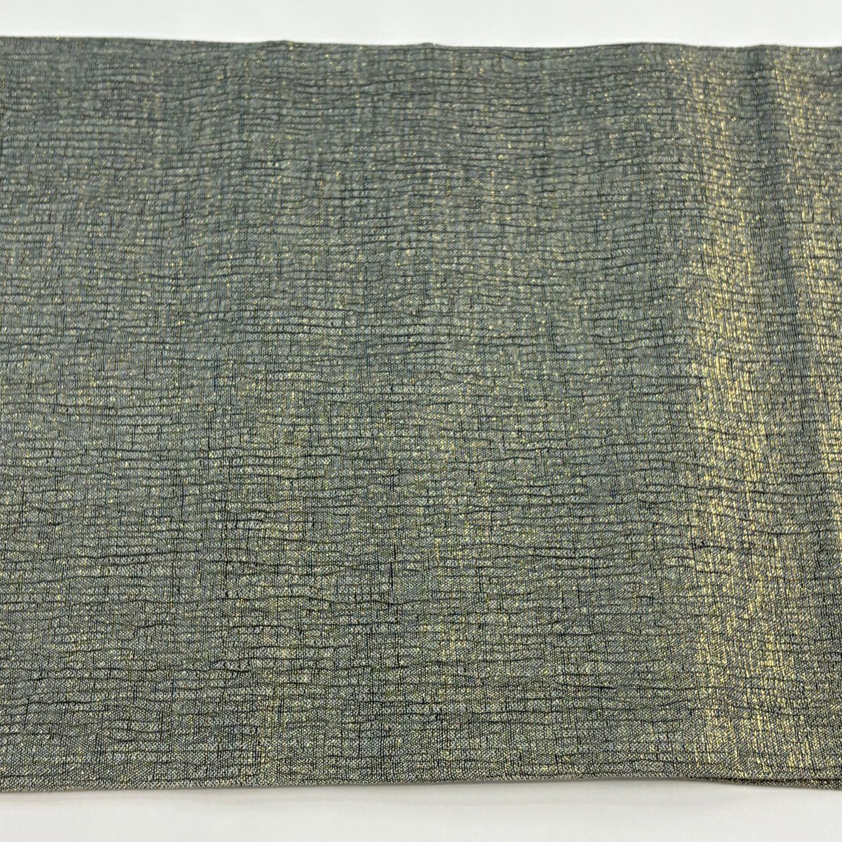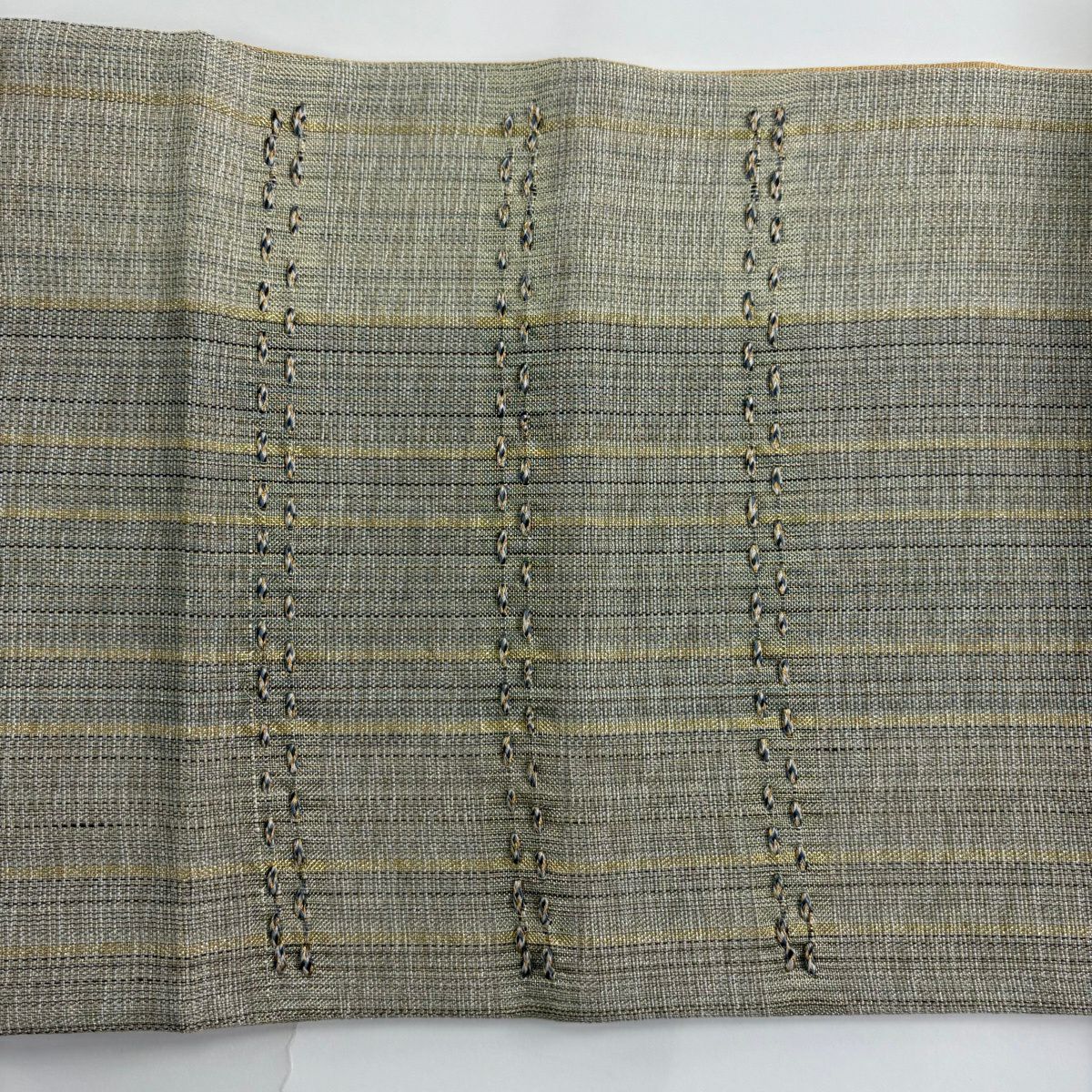 袋帯 秀品 幾何学模様 縞模様 金糸 組織 青灰色 お太鼓柄 正絹