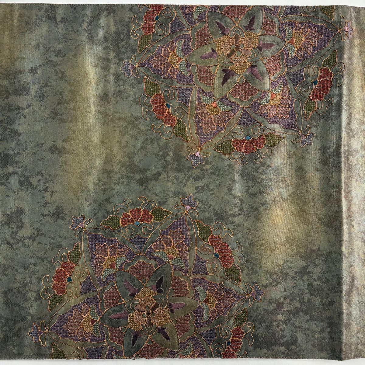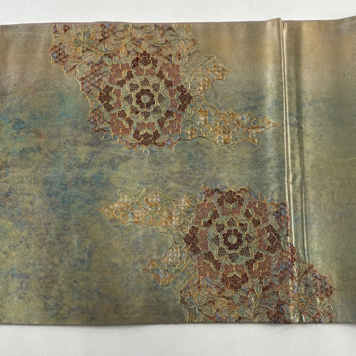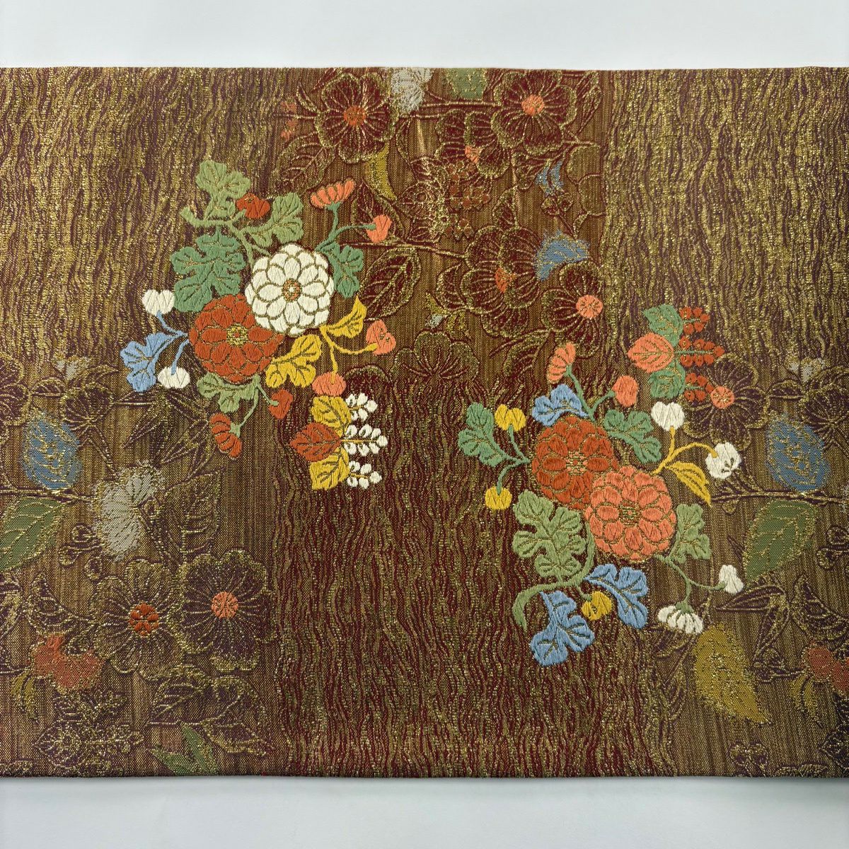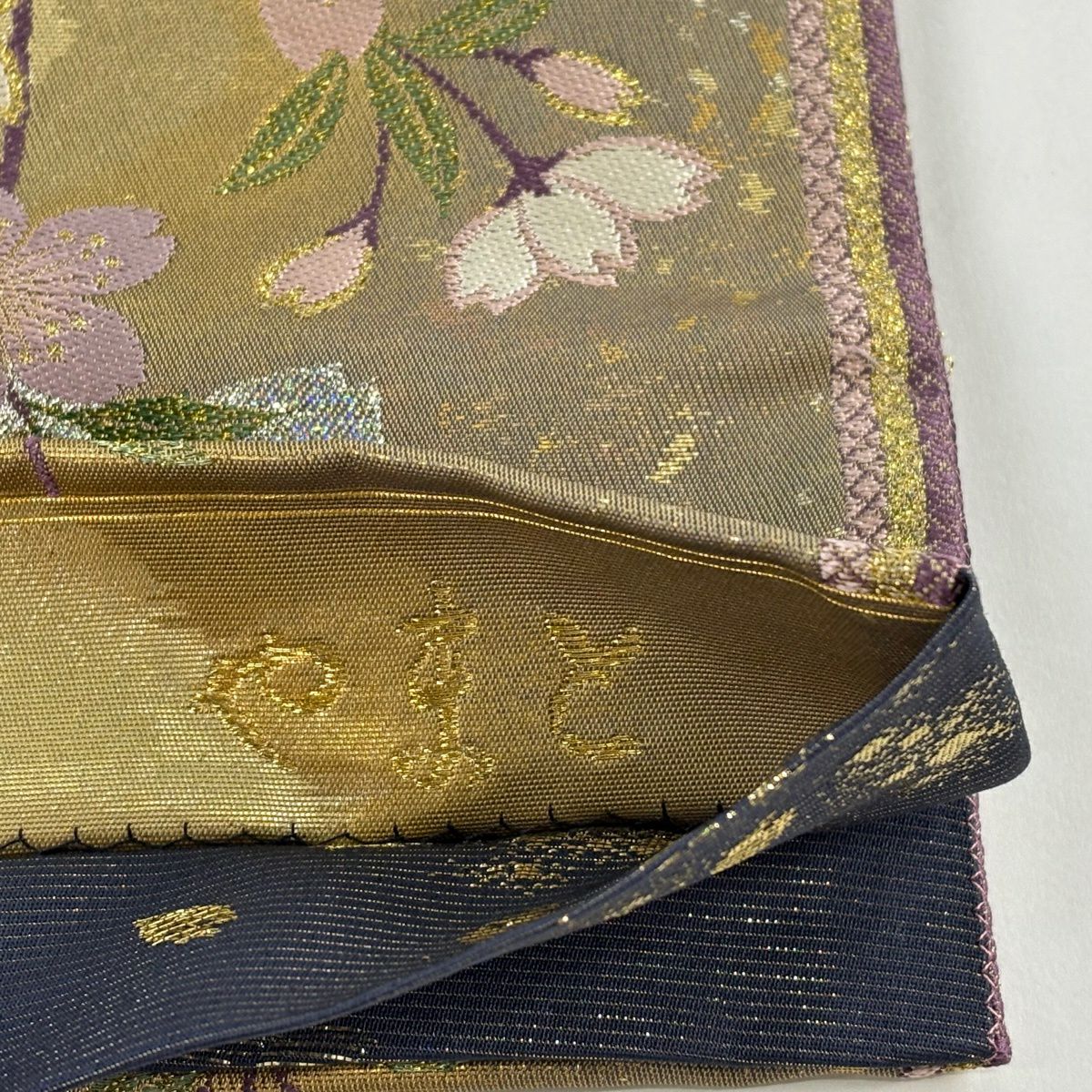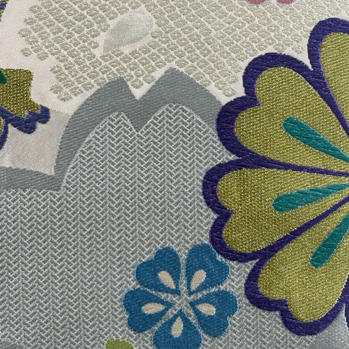 【美品】 袋帯 秀品 華文 草花 金糸 箔 灰緑 お太鼓柄 正絹