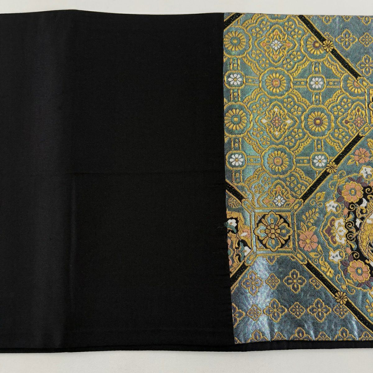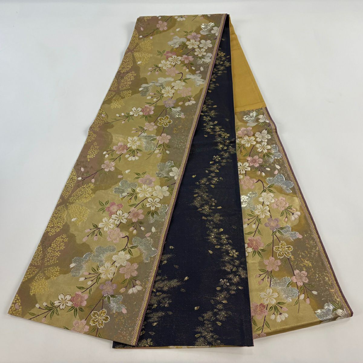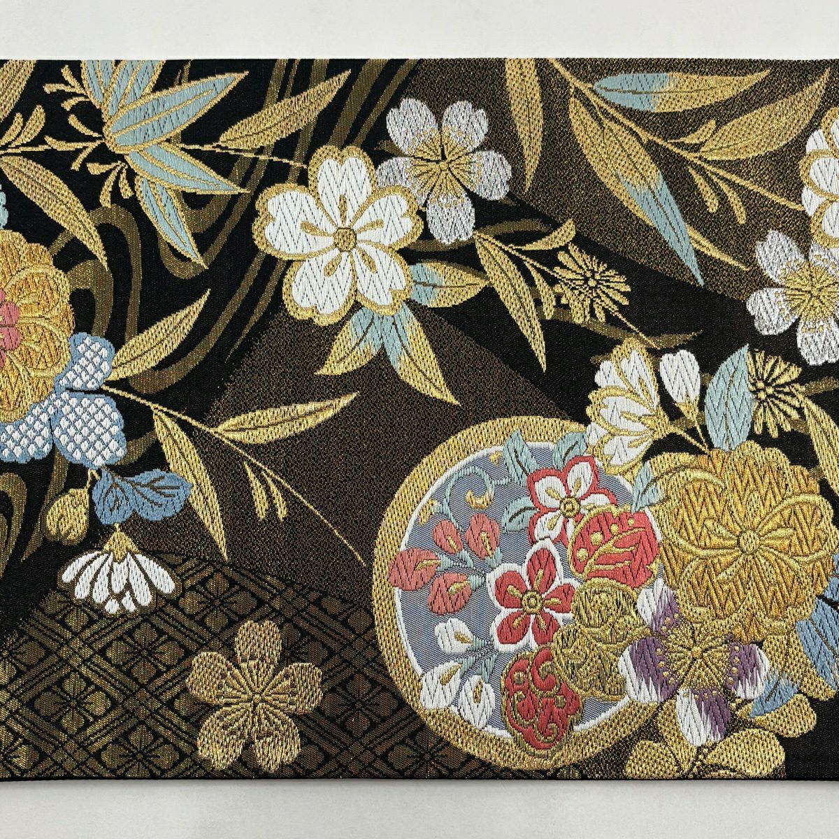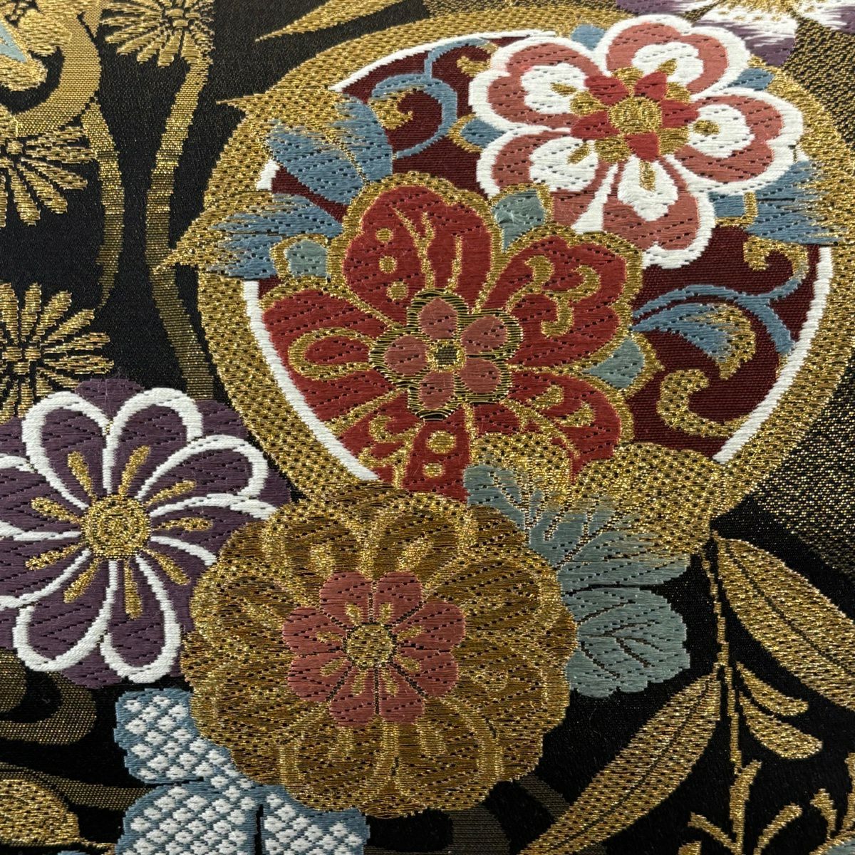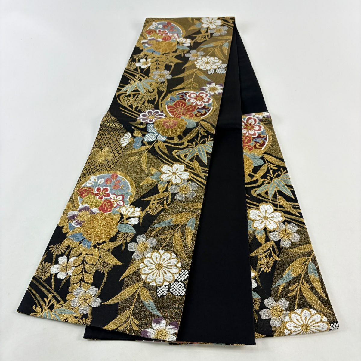【美品】 袋帯 秀品 鈴乃屋 桜 菊 金銀糸 箔 黒 六通 正絹